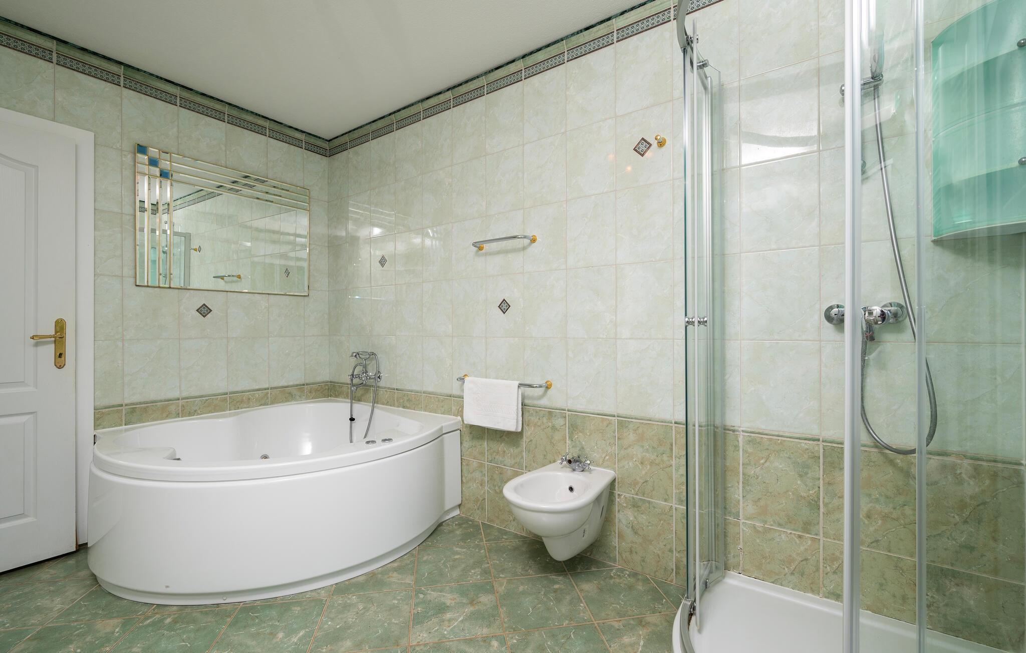 Badeværelse (nr. 1) - WC. Varmt og koldt vand. Bruser og badekar