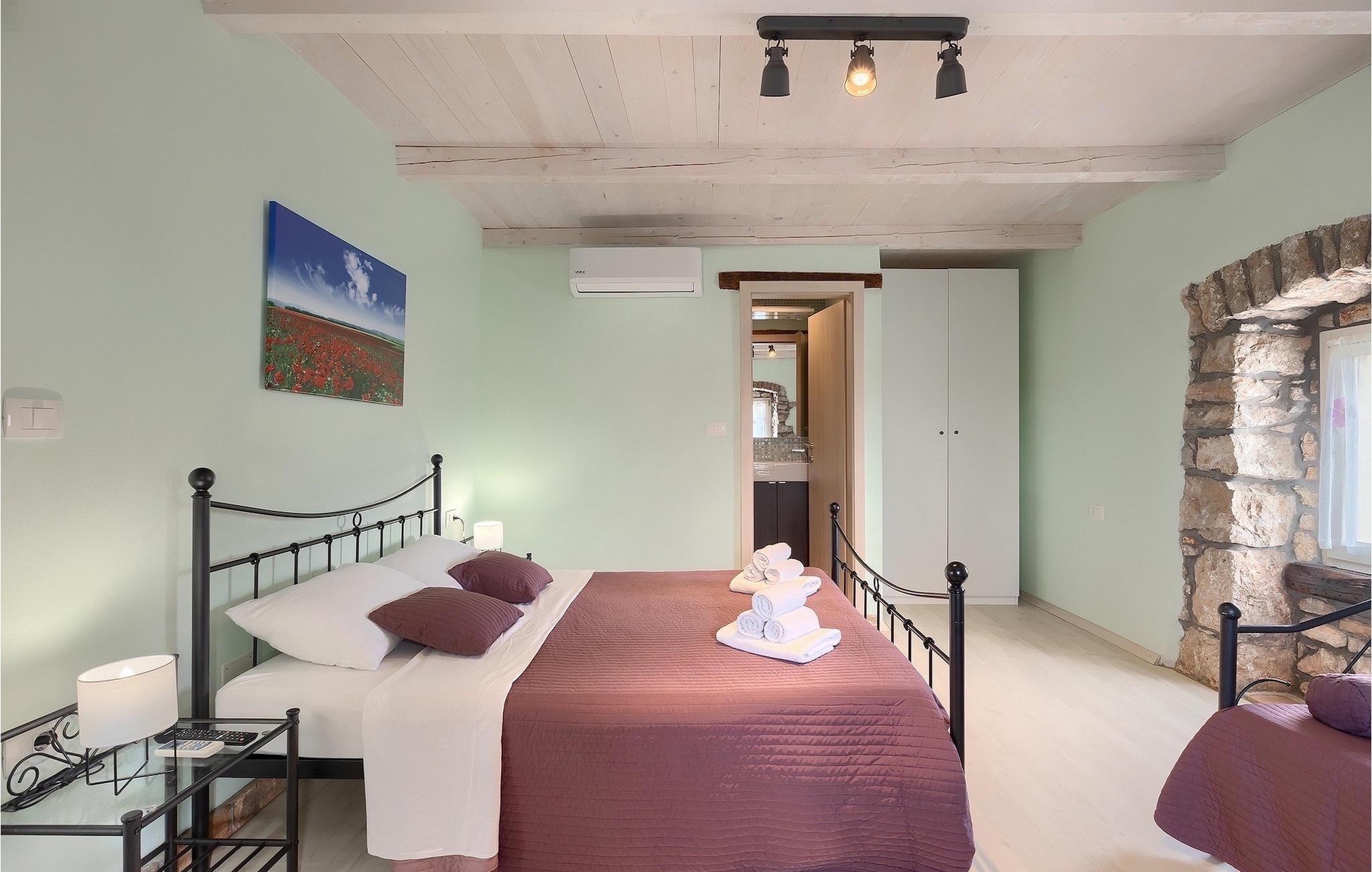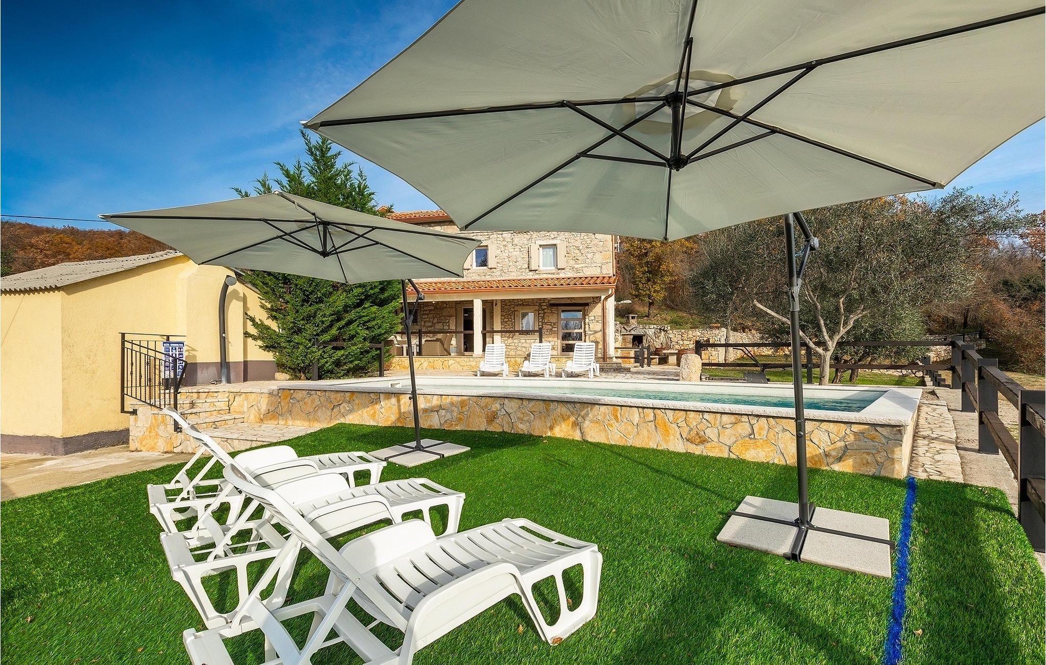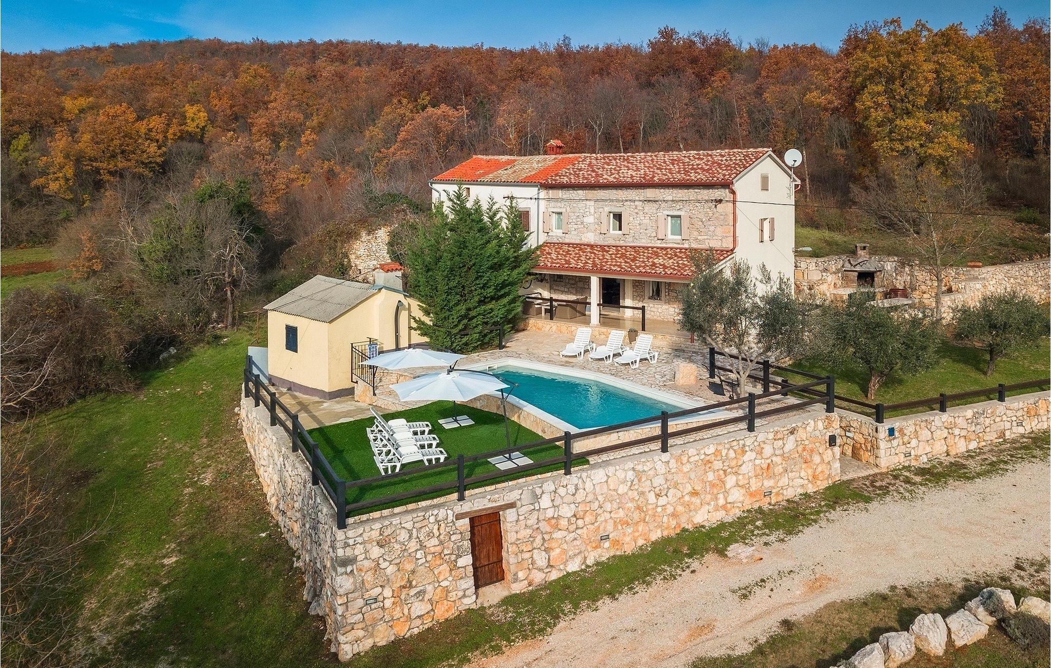 Villa Octingenti er det perfekte valg, hvis du leder efter en malerisk villa omgivet af idyllisk landskab, væk fra folkemængderne. Ferievillaen kan rumme op til 4+2 personer i 2 soveværelser, hvilket gør den ideel til en familie- eller parferie. En swimmingpool og liggestole er til rådighed for en uforglemmelig ferie. Slap af med en drink eller en god bog i den varme istriske sol. Den overdækkede terrasse i umiddelbar nærhed af poolen beskytter dig mod den stærke sol og giver plads til at nyde. Der er også en grill, så du kan forkæle dine kære. Den istriske charme strækker sig gennem hele villaen. I stueetagen er der opholdsstue med udgang til udearealet, fuldt udstyret køkken med spiseplads og separat toilet. På første sal er der 2 soveværelser med hvert sit badeværelse. Book Villa Octingenti til din næste ferie. Vi er sikre på, at du får en afslappende ferie og glemmer hverdagens stress og jag. Villa Octingenti ligger midt i det smukke bakkede landskab i Istrien og tilbyder et godt udgangspunkt for at udforske denne uberørte region. I nærheden ligger byen Labin, kendt som en kunstnerby. Besøg den gamle bydel, som ligger på en bakke, hvorfra du har en fortryllende udsigt over kysten og Kvarner-øerne. Ikke langt fra Labin ligger det populære turistcenter Rabac. En lille fiskerby, der med tiden har udviklet sig til en populær sommerdestination. Smukke strande, klart hav og et fremragende gastronomisk tilbud præger den lille by. For alle naturelskere og aktive feriegæster anbefaler vi at besøge Ucka Naturpark. Hvis du vil udforske det omkringliggende område, så besøg Opatija eller Pula, to smukke turistbyer ved kysten, udsmykket med en rig historie og kulturarv.