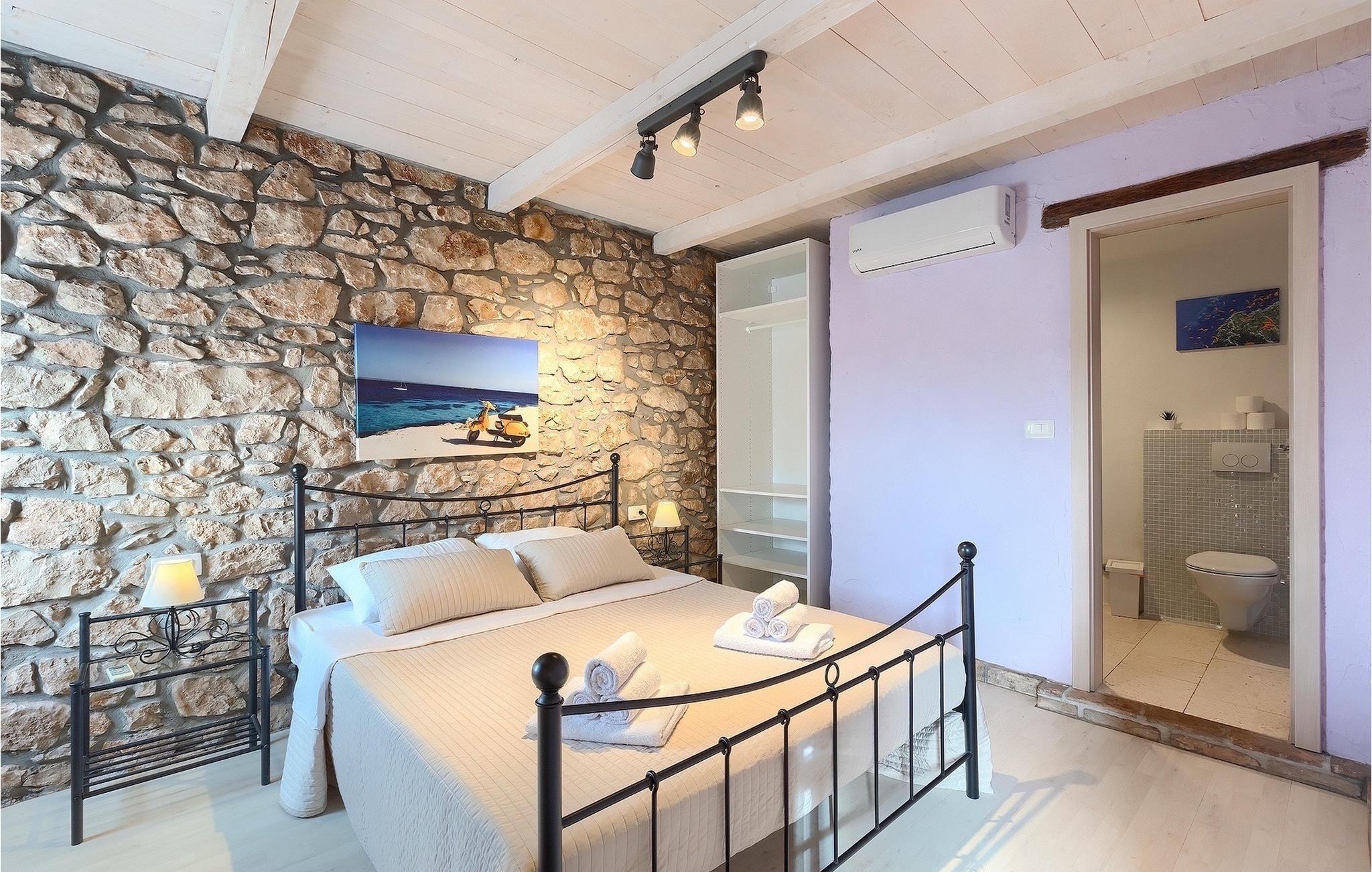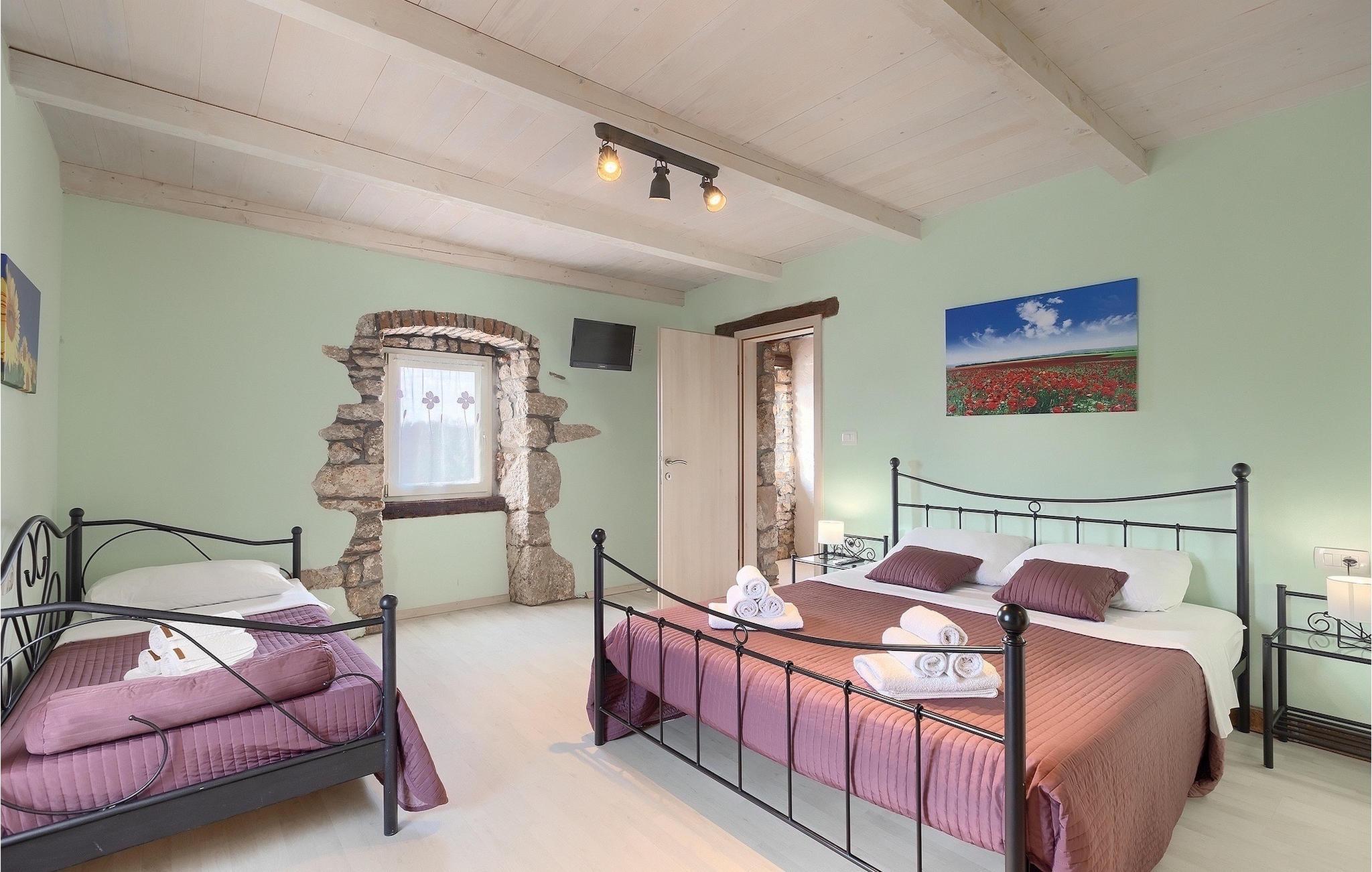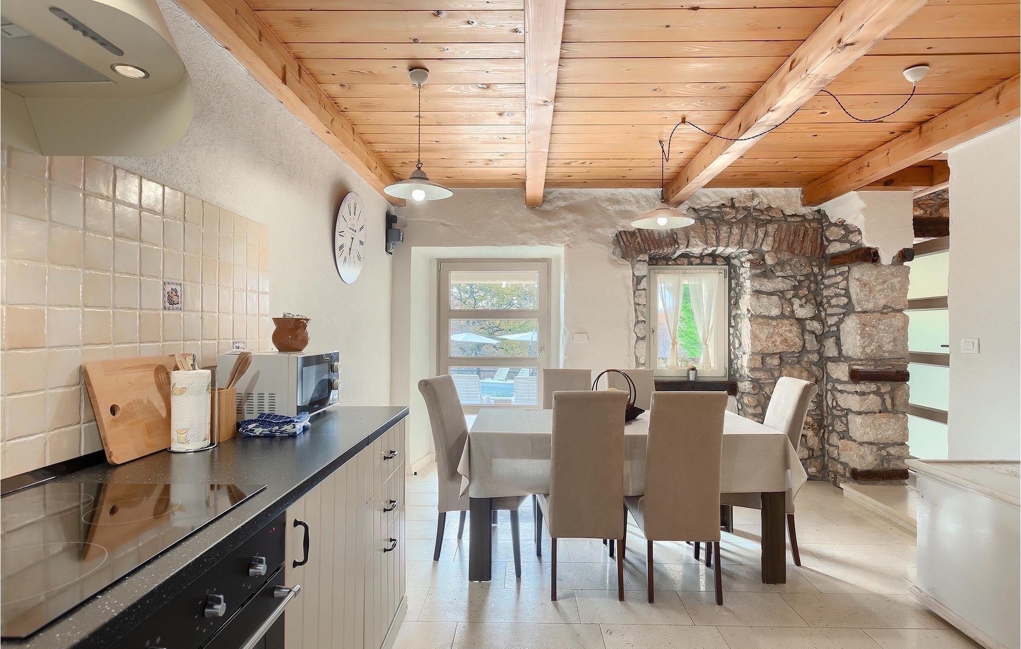 Villa Octingenti er det perfekte valg, hvis du leder efter en malerisk villa omgivet af idyllisk landskab, væk fra folkemængderne. Ferievillaen kan rumme op til 4+2 personer i 2 soveværelser, hvilket gør den ideel til en familie- eller parferie. En swimmingpool og liggestole er til rådighed for en uforglemmelig ferie. Slap af med en drink eller en god bog i den varme istriske sol. Den overdækkede terrasse i umiddelbar nærhed af poolen beskytter dig mod den stærke sol og giver plads til at nyde. Der er også en grill, så du kan forkæle dine kære. Den istriske charme strækker sig gennem hele villaen. I stueetagen er der opholdsstue med udgang til udearealet, fuldt udstyret køkken med spiseplads og separat toilet. På første sal er der 2 soveværelser med hvert sit badeværelse. Book Villa Octingenti til din næste ferie. Vi er sikre på, at du får en afslappende ferie og glemmer hverdagens stress og jag. Villa Octingenti ligger midt i det smukke bakkede landskab i Istrien og tilbyder et godt udgangspunkt for at udforske denne uberørte region. I nærheden ligger byen Labin, kendt som en kunstnerby. Besøg den gamle bydel, som ligger på en bakke, hvorfra du har en fortryllende udsigt over kysten og Kvarner-øerne. Ikke langt fra Labin ligger det populære turistcenter Rabac. En lille fiskerby, der med tiden har udviklet sig til en populær sommerdestination. Smukke strande, klart hav og et fremragende gastronomisk tilbud præger den lille by. For alle naturelskere og aktive feriegæster anbefaler vi at besøge Ucka Naturpark. Hvis du vil udforske det omkringliggende område, så besøg Opatija eller Pula, to smukke turistbyer ved kysten, udsmykket med en rig historie og kulturarv.