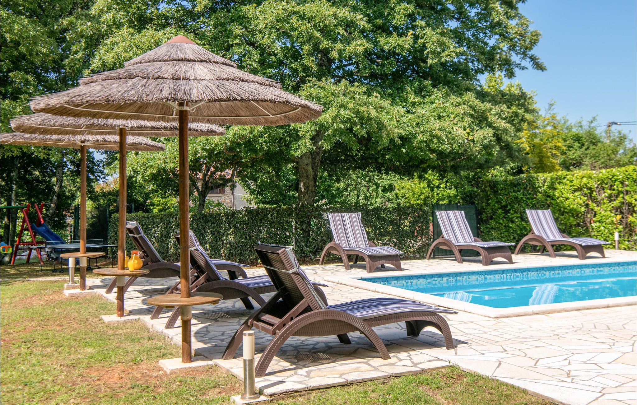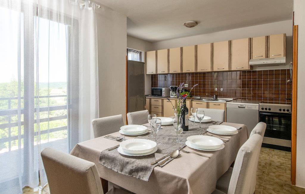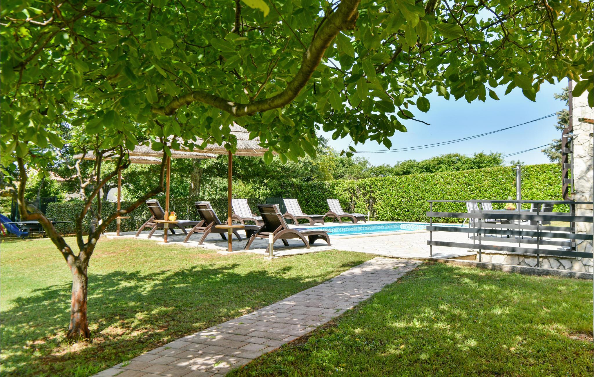 Dette store hus med pool ligger kun få minutter i bil, fra den dejlige ferieby Rabac, hvor nogle af de skønneste strande ved istriens kyst ligger. Det ligger på en stor grund ved siden af en lille lokal landevej. Huset rummer to komfortable lejligheder med altaner og er forbundet med en udendørs trappe. Den historiske lille by Labin, med sine kulturelle og historiske seværdigheder, ligger ganske tæt på. I byens smukke venetianske kirke afholdes der mange klassiske koncerter om sommeren, de mange gallerier og det spændende bjergværksmuseum gør også byen attraktiv at besøge. Flere dejlige strande findes ved Prtlog, Sv. Marina og Ravni. Besøg også byen Pula med mange seværdigheder, f.eks. det smukke amfiteater og oplev nationalparken Brijunis skønne verden af flora og fauna.