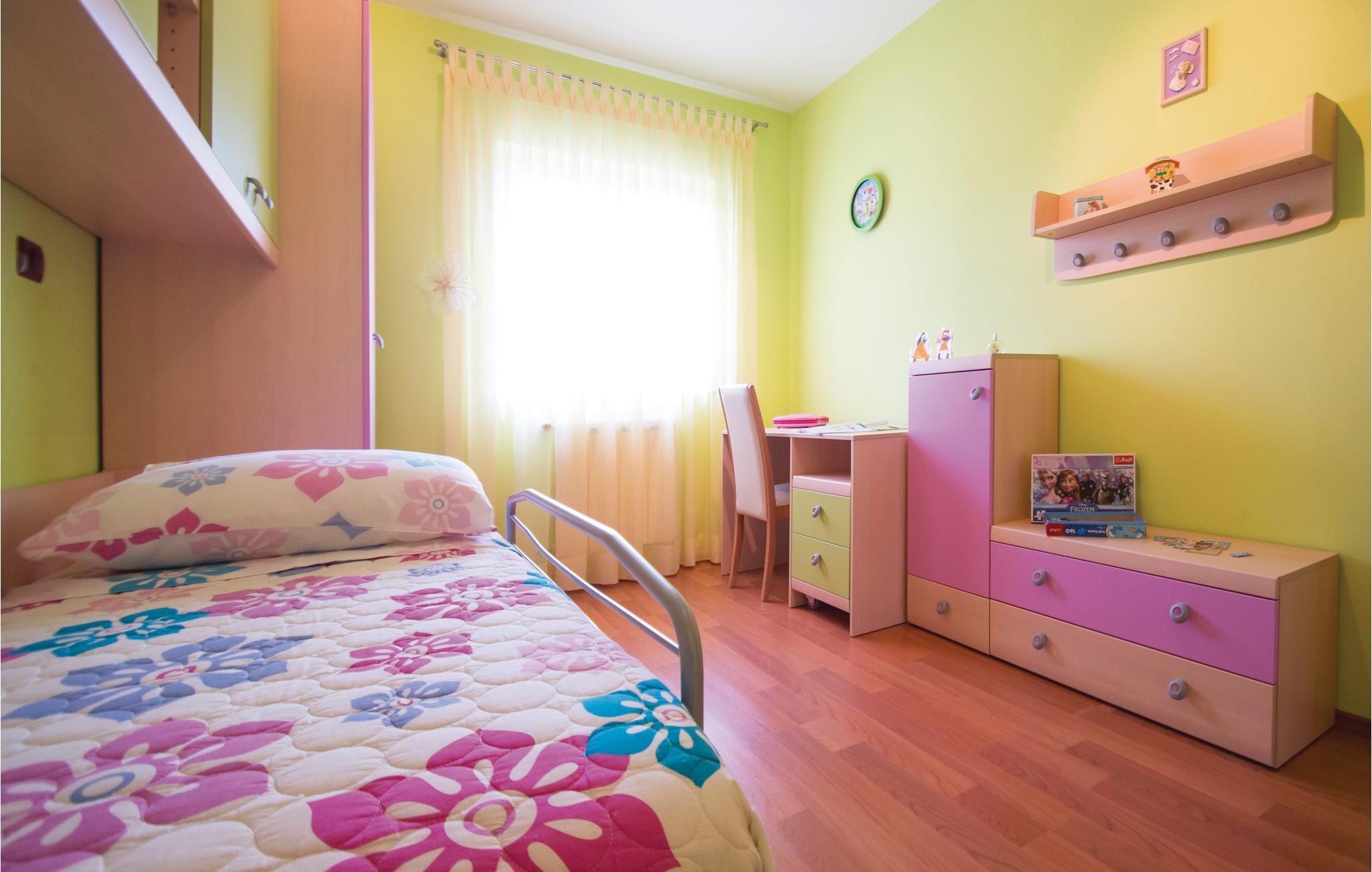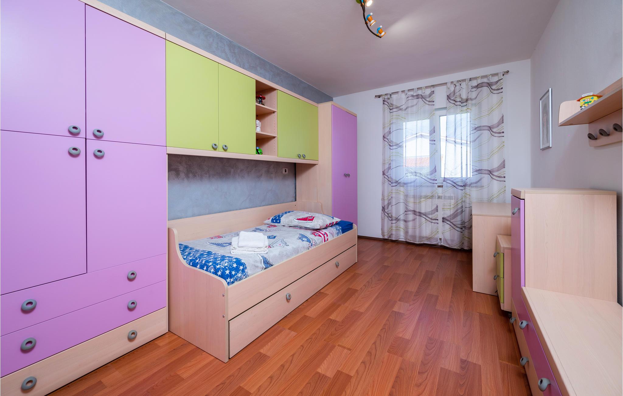 Værelserne er moderne indrettet og rummer to soveværelser med dobbeltseng og et barneværelse med enkeltseng (udtrækningsseng) samt et generøst køkken med spiseområde og stue.