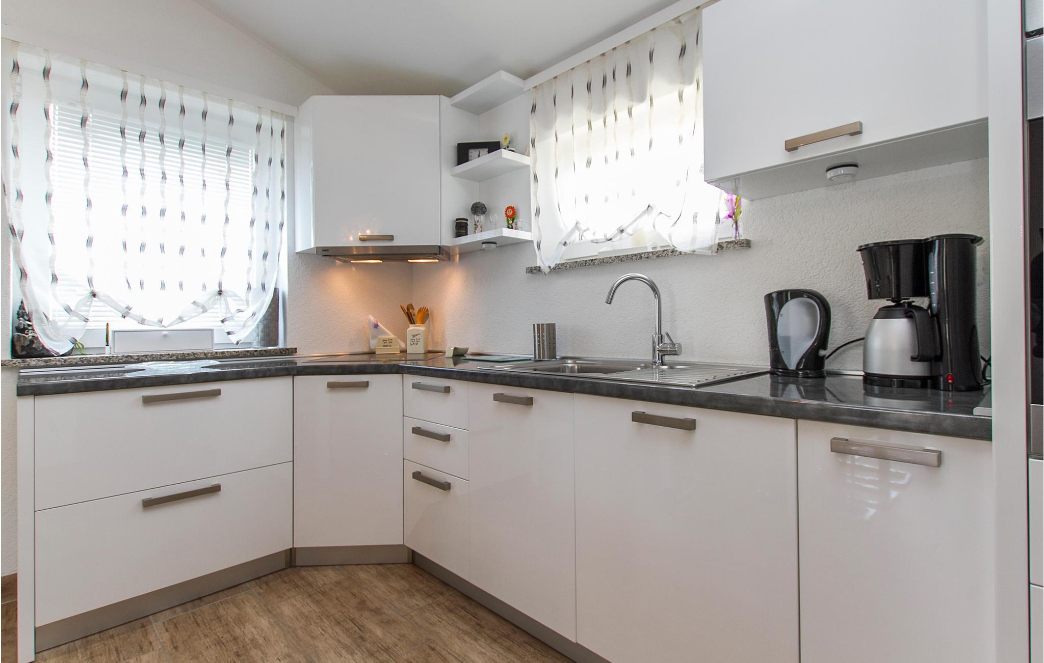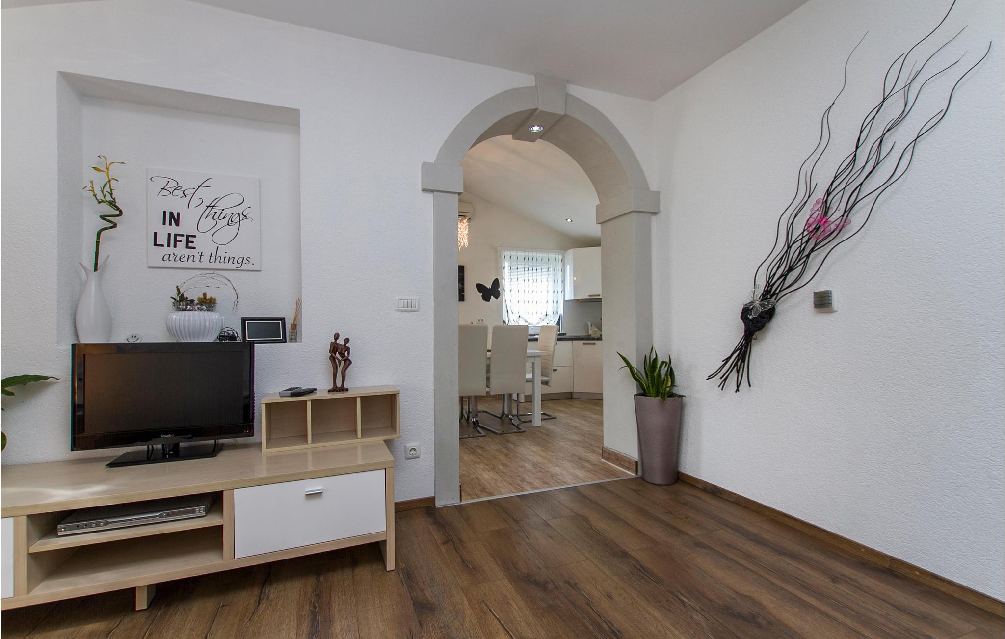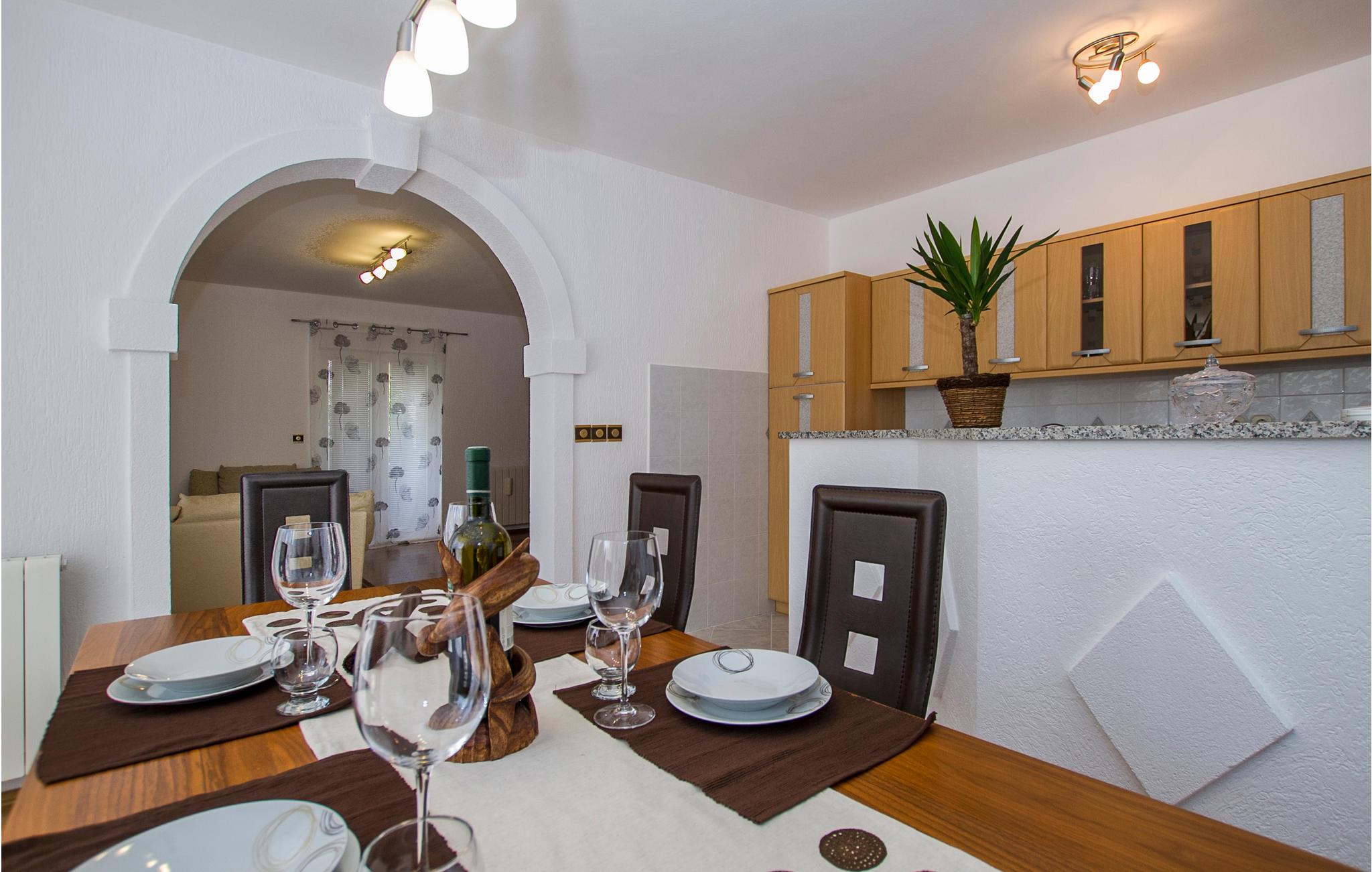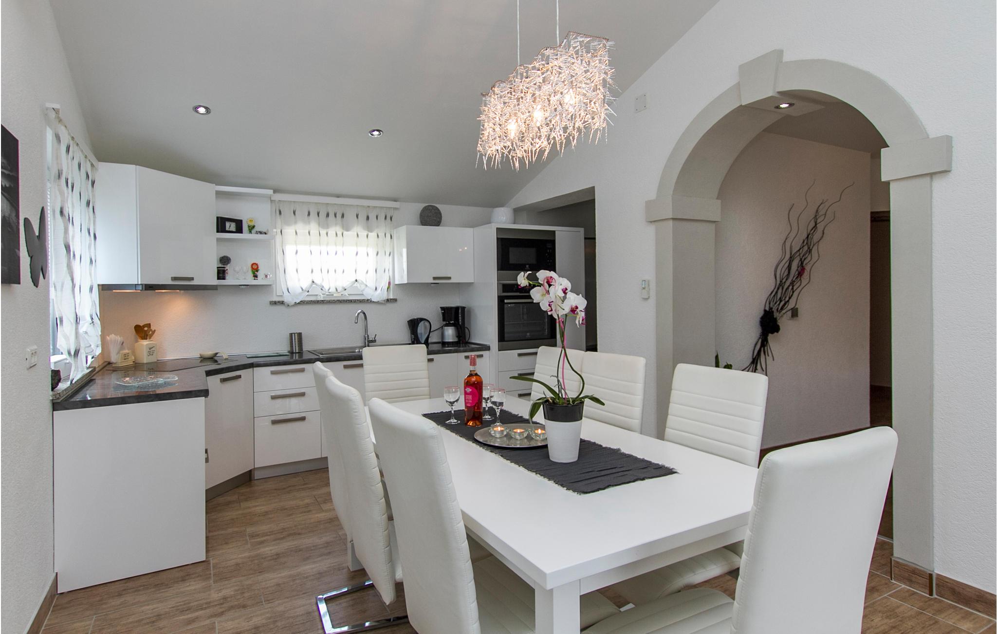 Tilbring en afslappet og uforglemmelig ferie i dette moderne indrettede og rummelige feriehus. På den helt indhegnede grund er der også en swimmingpool. På ca. 20 minutter i bil, kommer I til Istriens skønneste badestrande. Feriehuset egner sig fint til ferie for to familier, da det rummer to separate lejligheder, med hver sin separate indgang udefra. Fra lejligheden i stueplan er der udgang til en dejlig overdækket terrasse med træbord og bænke og to soveværelser. Ferielejligheden på øverste etage rummer tre soveværelser. Huset ligger i et fredeligt område omgivet af moderne huse og vinbjerge.