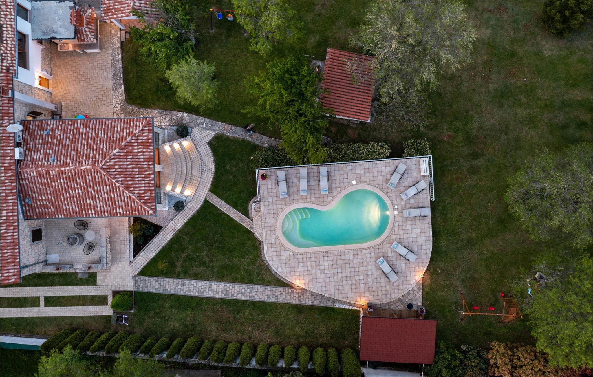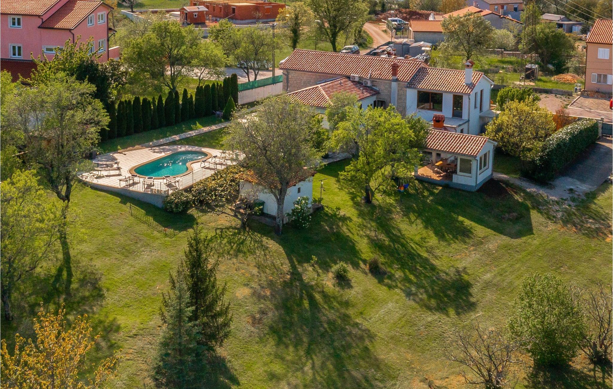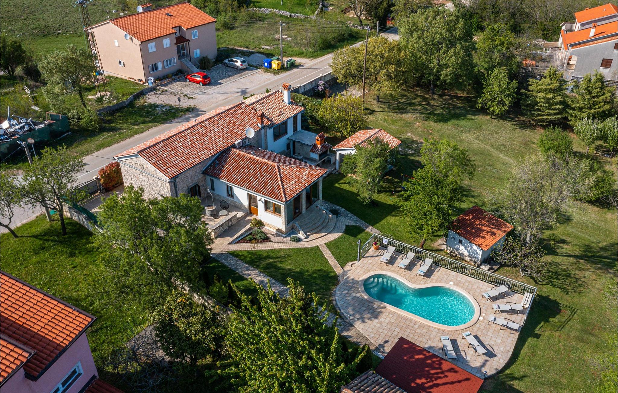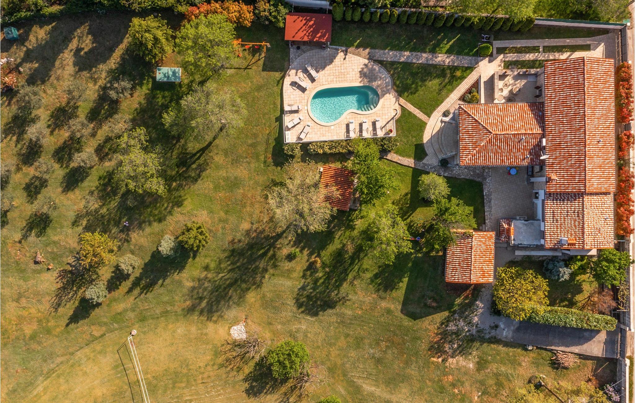 Smukke Villa Isotta ligger i bygden Nedešcina i Istrien. Det er en smukt møbleret villa i rustik stil fra 1920'erne, som blev renoveret i 2006 og vil tilbyde dig den tiltrængte hvile og luksuriøse drømmeferie, du altid har drømt om. Indkvarteringskapaciteten i denne smukke villa er maksimalt 8 personer. I stueetagen er der 2 soveværelser med dobbeltsenge med ensuite badeværelser med bruser og 1 ekstra badeværelse også med bruser. Ovenpå er der yderligere 2 soveværelser, hver med 2 enkeltsenge. Der er også 1 fælles badeværelse med bruser på første sal. Villaen har fuldt aircondition og har køkken med komfur, ovn, køkkenredskaber og køleskab i stueetagen. Derudover er det forbundet med en spisestue med spisebord til 8 personer. Stuen, som ligger tæt på spisestuen, har tv, sovesofa, lænestol og sofabord. På den udendørs terrasse er der en 24 m² stor swimmingpool, ved siden af er der 8 liggestole og 2 mere er under lysthuset ved siden af poolen. Uden for villaen er der også en udendørs kul- eller brænde-grill. I selve villaen er der et værtshus med en indendørs pejs og et køkken samt et bord og bænke, så du kan nyde at tilberede traditionelle lækre retter, smage dem i selskab med kære venner eller familie. Ligeledes er der udover den udendørs grill også et udendørs spisebord til 10 personer, som er overdækket og omgivet af en smukt anlagt have og gårdhave, hvor der er plads nok til socialt samvær eller leg med børn. Andre faciliteter, der vil være til stor nytte for dig, inkluderer et separat udendørs toilet med vaskemaskine, tørretumbler, strygebræt og strygejern. Hvis du medbringer din yngste, er et fodertrug og en tremme til rådighed. Villa Isotta er helt indhegnet og tilbyder 4 parkeringspladser i egen have. Underholdningsmuligheder til rådighed for dig, da Villa Isotta har en stor og smukt anlagt have omfatter bordtennis, gynger til børn, badminton, dart og en volleyballbane. Andre attraktioner og lokale aktiviteter omfatter vandsport, besøg af historiske monumenter og smukke byer, cykling og svømning ved stranden. Villa Isotta er omgivet af en skov og tilbyder plads nok til, at børn kan lege eller gå en hyggelig gåtur. Du har bestemt også plads til en eftermiddag, hvor du kan nyde din yndlingsbog eller tage betagende billeder af den uspolerede natur. Istrien er kendt for at have noget at tilbyde enhver gæst, uanset om du er fan af lækre gourmettilbud, interessante kulturelle tilbud eller simpelthen elsker at udforske nye steder og tage en håndfuld glade minder med dig undervejs! Velkommen til Villa Isotta, hvor du altid vil vende tilbage! *To personer er mulige i villaen: 2 børn op til 14 år på en ekstra udtræksseng.
