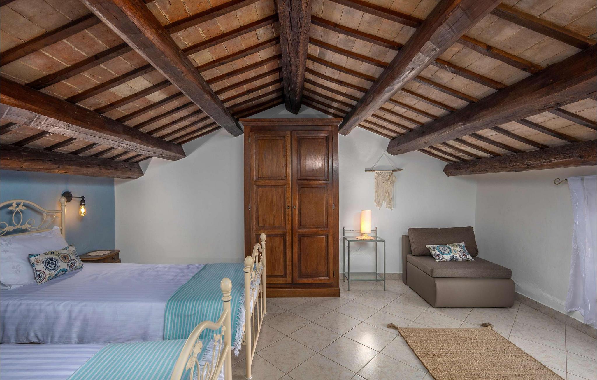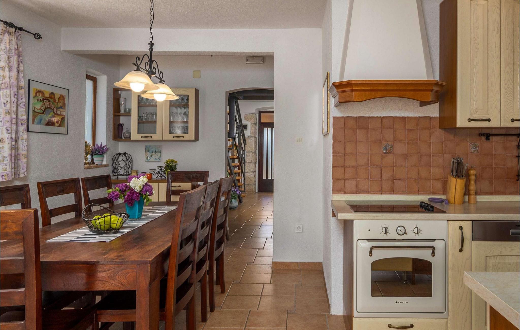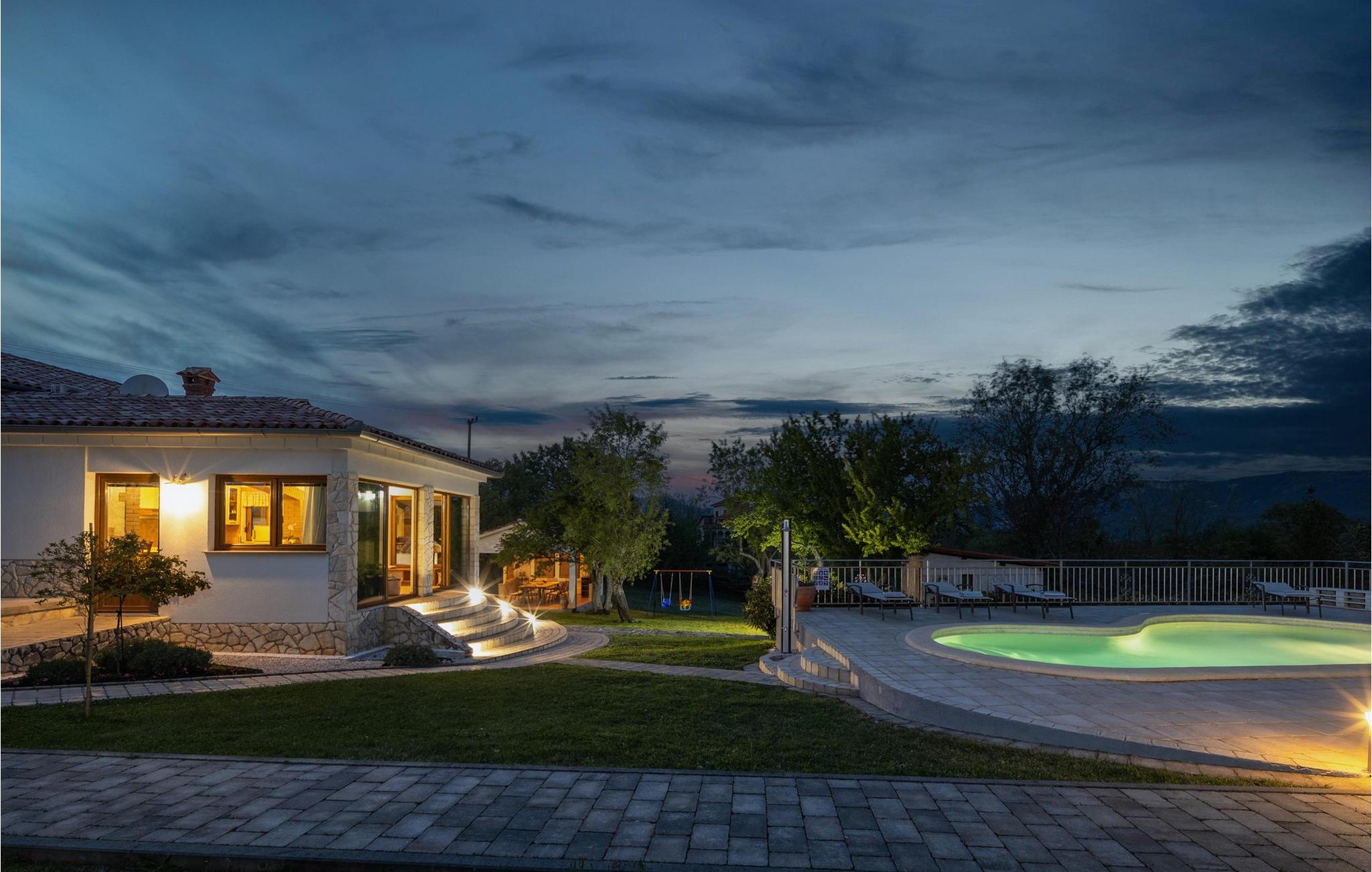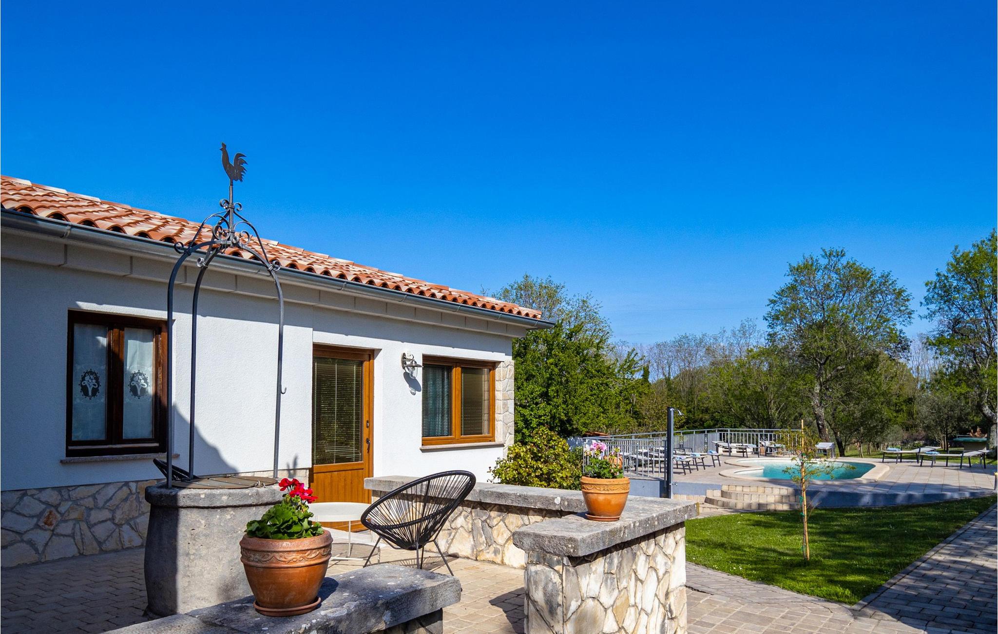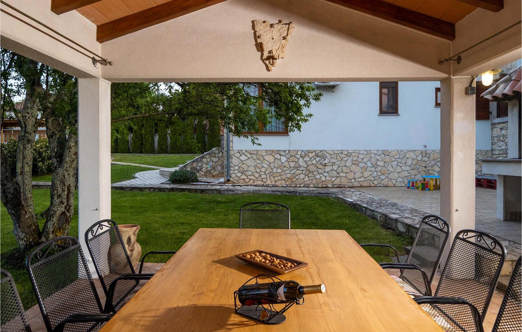 Smukke Villa Isotta ligger i bygden Nedešcina i Istrien. Det er en smukt møbleret villa i rustik stil fra 1920'erne, som blev renoveret i 2006 og vil tilbyde dig den tiltrængte hvile og luksuriøse drømmeferie, du altid har drømt om. Indkvarteringskapaciteten i denne smukke villa er maksimalt 8 personer. I stueetagen er der 2 soveværelser med dobbeltsenge med ensuite badeværelser med bruser og 1 ekstra badeværelse også med bruser. Ovenpå er der yderligere 2 soveværelser, hver med 2 enkeltsenge. Der er også 1 fælles badeværelse med bruser på første sal. Villaen har fuldt aircondition og har køkken med komfur, ovn, køkkenredskaber og køleskab i stueetagen. Derudover er det forbundet med en spisestue med spisebord til 8 personer. Stuen, som ligger tæt på spisestuen, har tv, sovesofa, lænestol og sofabord. På den udendørs terrasse er der en 24 m² stor swimmingpool, ved siden af er der 8 liggestole og 2 mere er under lysthuset ved siden af poolen. Uden for villaen er der også en udendørs kul- eller brænde-grill. I selve villaen er der et værtshus med en indendørs pejs og et køkken samt et bord og bænke, så du kan nyde at tilberede traditionelle lækre retter, smage dem i selskab med kære venner eller familie. Ligeledes er der udover den udendørs grill også et udendørs spisebord til 10 personer, som er overdækket og omgivet af en smukt anlagt have og gårdhave, hvor der er plads nok til socialt samvær eller leg med børn. Andre faciliteter, der vil være til stor nytte for dig, inkluderer et separat udendørs toilet med vaskemaskine, tørretumbler, strygebræt og strygejern. Hvis du medbringer din yngste, er et fodertrug og en tremme til rådighed. Villa Isotta er helt indhegnet og tilbyder 4 parkeringspladser i egen have. Underholdningsmuligheder til rådighed for dig, da Villa Isotta har en stor og smukt anlagt have omfatter bordtennis, gynger til børn, badminton, dart og en volleyballbane. Andre attraktioner og lokale aktiviteter omfatter vandsport, besøg af historiske monumenter og smukke byer, cykling og svømning ved stranden. Villa Isotta er omgivet af en skov og tilbyder plads nok til, at børn kan lege eller gå en hyggelig gåtur. Du har bestemt også plads til en eftermiddag, hvor du kan nyde din yndlingsbog eller tage betagende billeder af den uspolerede natur. Istrien er kendt for at have noget at tilbyde enhver gæst, uanset om du er fan af lækre gourmettilbud, interessante kulturelle tilbud eller simpelthen elsker at udforske nye steder og tage en håndfuld glade minder med dig undervejs! Velkommen til Villa Isotta, hvor du altid vil vende tilbage! *To personer er mulige i villaen: 2 børn op til 14 år på en ekstra udtræksseng.