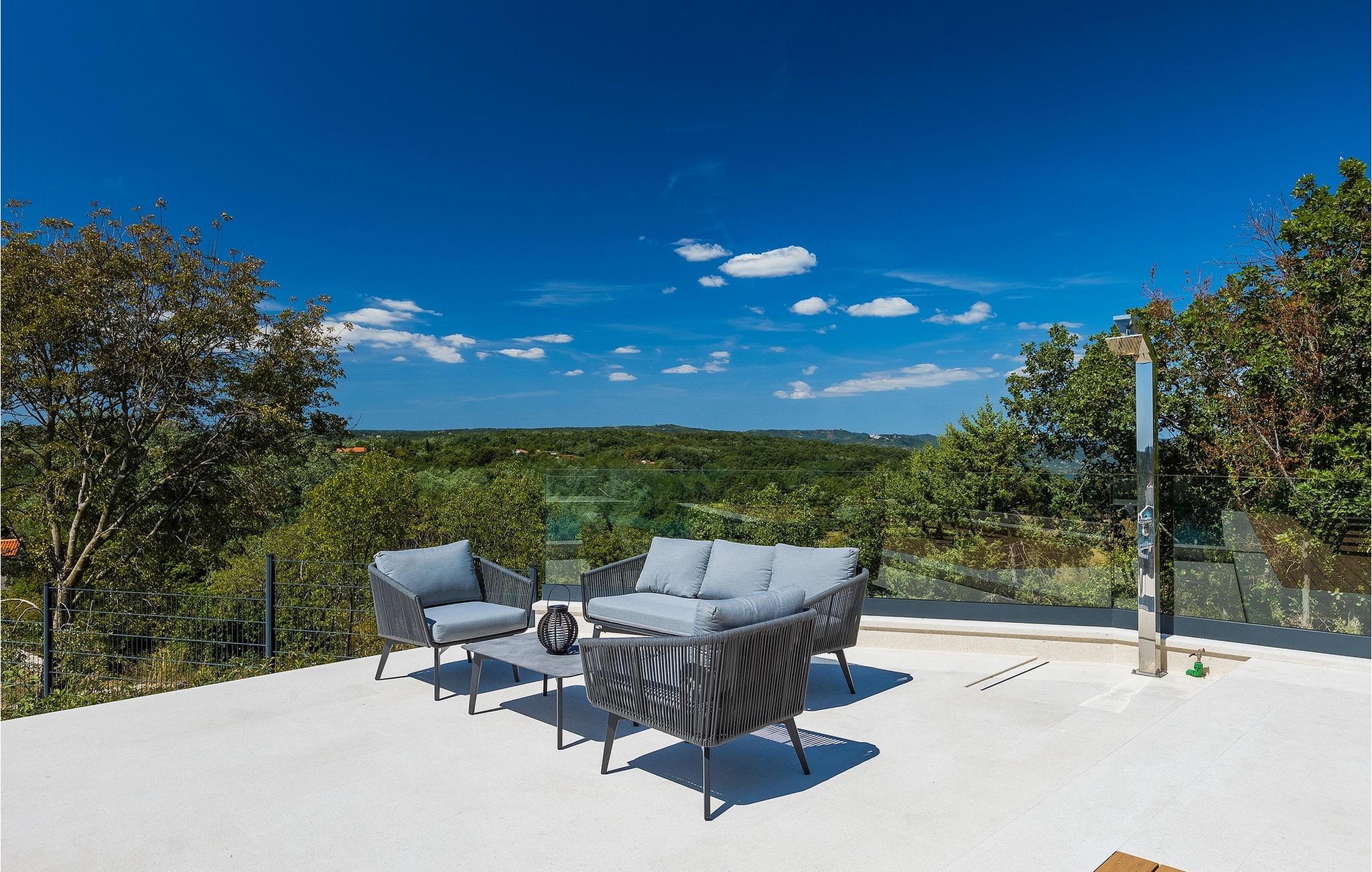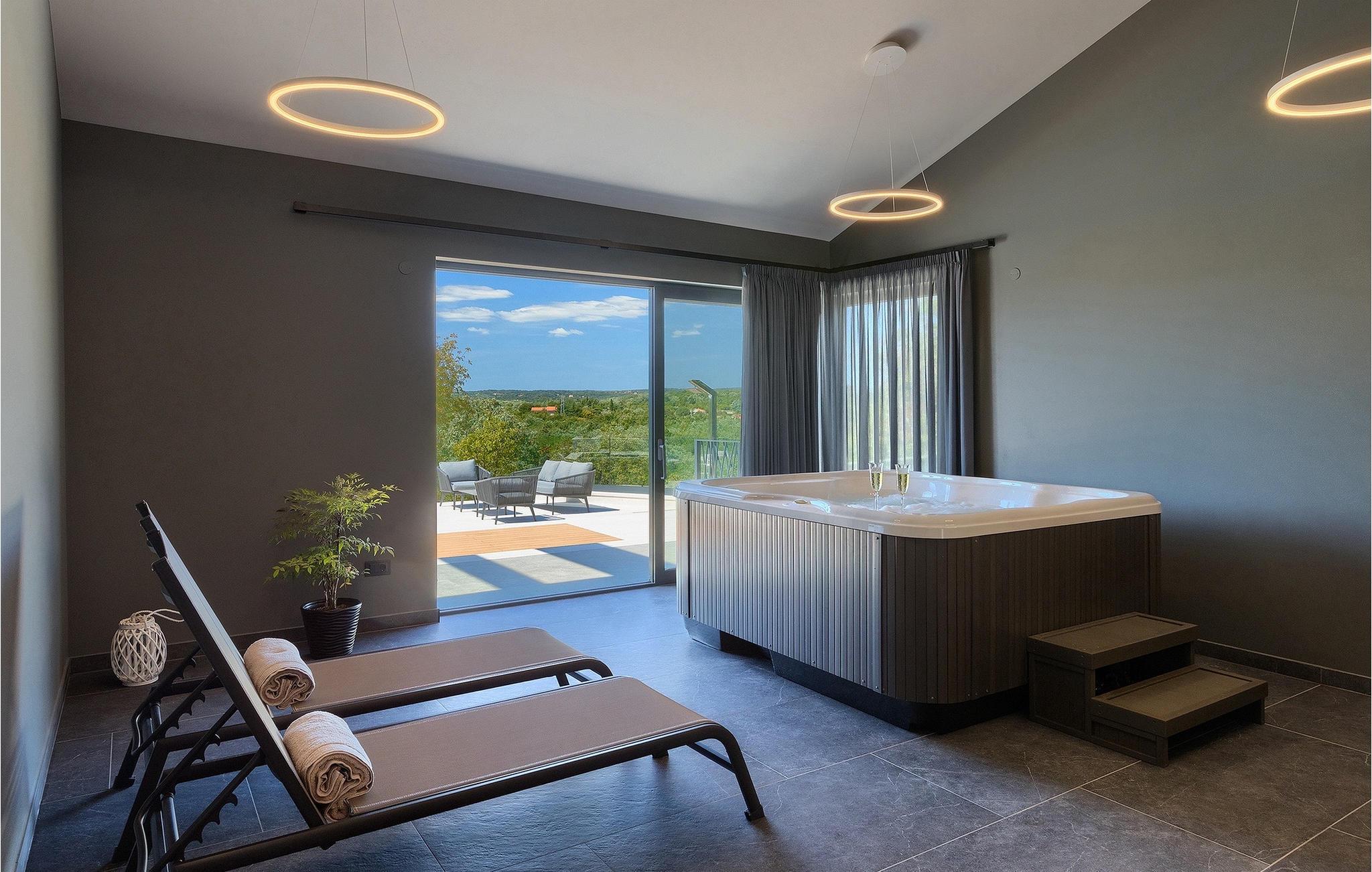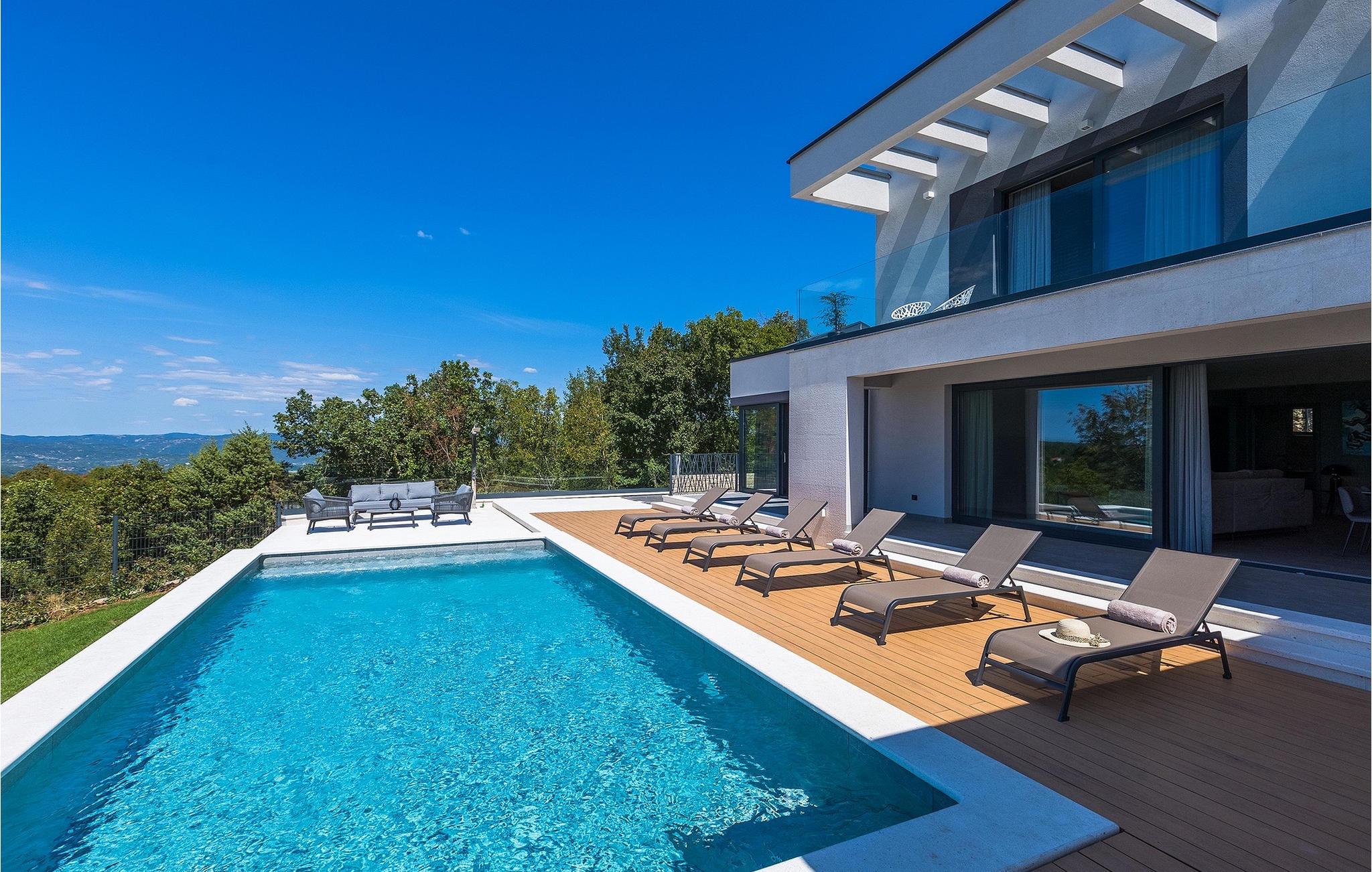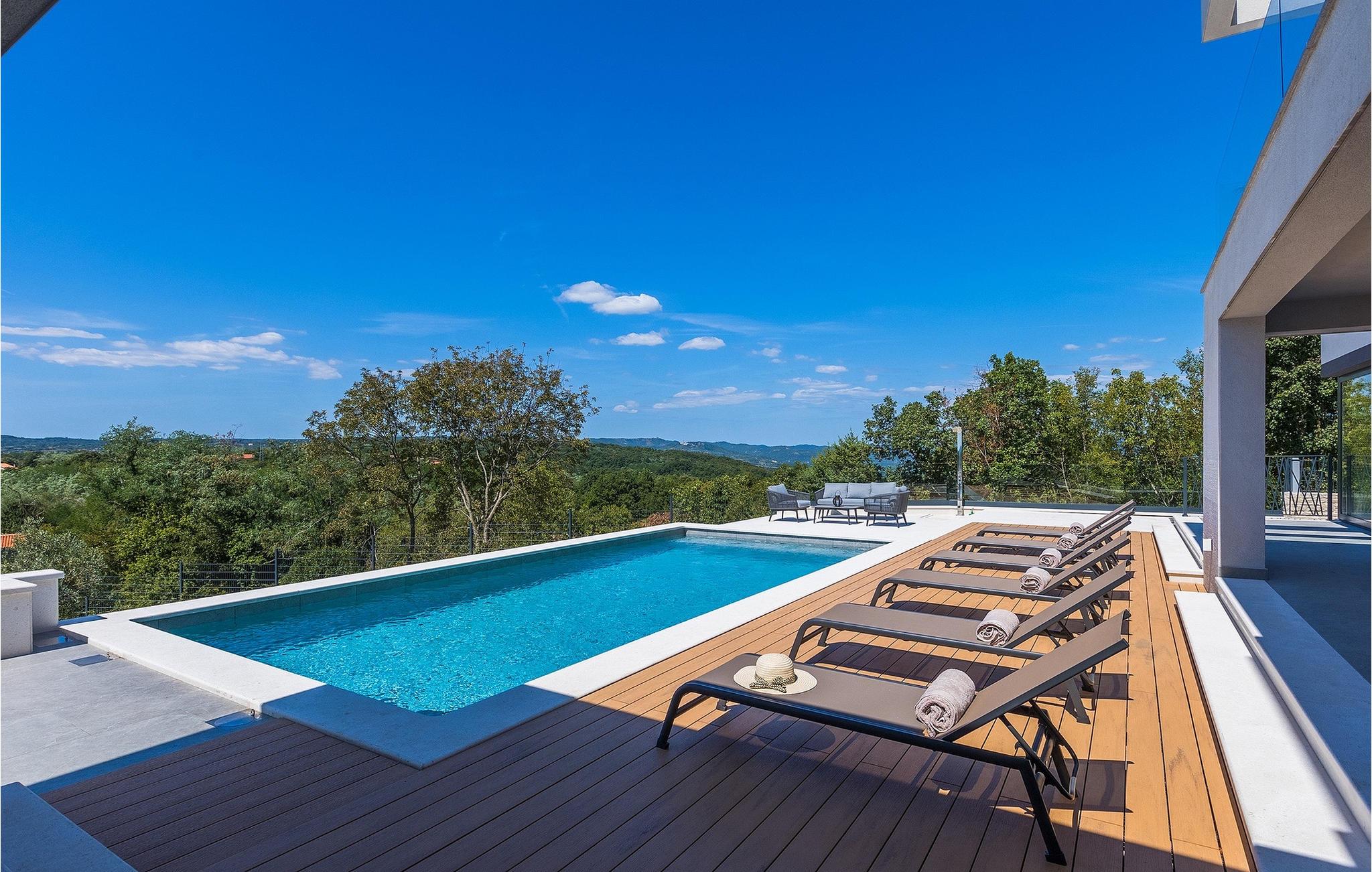 Forkæl dig selv med lidt luksus og tilbring din drømmeferie i den elegante Villa La Guardia. Beliggende i et roligt, grønt område nær Labin-Rabac, tilbyder denne villa dig den afslapning, du længes efter. Den betagende panoramaudsigt over det grønne landskab vil fange dit hjerte. Dit andet kig vil være på den smukke private pool med hydromassage, som ligger ved husets fødder. Slap af på en af ??liggestolene ved poolen eller i wellness-området i Villa La Guardia - med sauna og spabad. En stor overdækket terrasse med et lille sommerkøkken og kulgrill er det ideelle sted at nyde lækre måltider med familie og venner og afslutte lange sommeraftener. Det indre af villaen er elegant og smagfuldt indrettet. Den store vinduesfront i det åbne opholdsrum gør stuen lys og luftig. Stueetagen består af denne skønne stue med pejs, et fuldt udstyret moderne køkken, spisepladsen med plads til op til 8 gæster, et komfortabelt soveværelse med eget stilfuldt badeværelse og en wellness-oase med sauna, jacuzzi og badeværelse. . På første sal er der tre komfortable soveværelser, hver med eget badeværelse og et hyggeligt læsehjørne. De klimatiserede soveværelser har alle store, komfortable dobbeltsenge, der lover en god nats søvn. Nyd den fantastiske udsigt fra balkonen med din første kop kaffe om morgenen eller se på stjernerne om aftenen. Villa La Guardia er stedet, du leder efter, for at tilbringe en fantastisk ferie med dine kære. Tøv ikke, forkæl dig selv med et strejf af luksus og bestil Villa La Guardia.Villa La Guardia er beliggende i Šumber, et roligt område nær Labin-Rabac, kun 15 km fra den nærmeste strand i Rabac. Omgivet af grønne bakker og marker finder du her den ro, du leder efter. Alt hvad du behøver til det daglige liv er omkring 4-7 km væk. Den næste restaurant ligger kun 2 km væk. Oplev denne smukke region på cykel, udforsk strandene og bugterne ved Istriens østkyst eller besøg de mange omkringliggende små byer, der udstråler deres helt egen charme, og hvor du byder velkommen til gæstfrie lokale. Tag en tur til Pazin med dets berømte slot, som ligger på kanten af ??en dyb kløft, eller til Ucka naturparken og nyd en betagende udsigt fra toppen. Gå ikke glip af det mangfoldige gastronomiske tilbud og smag Istriens smag.