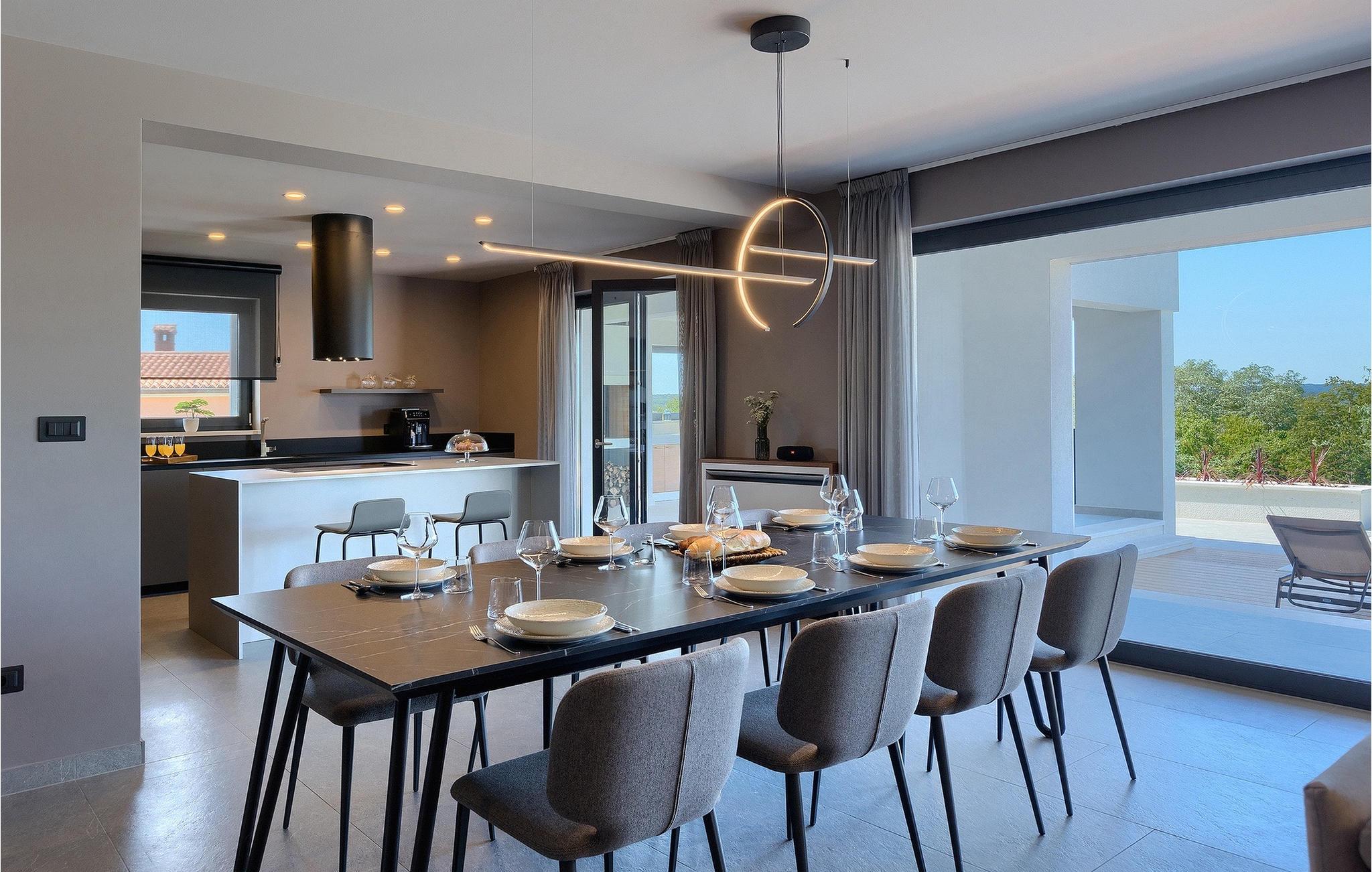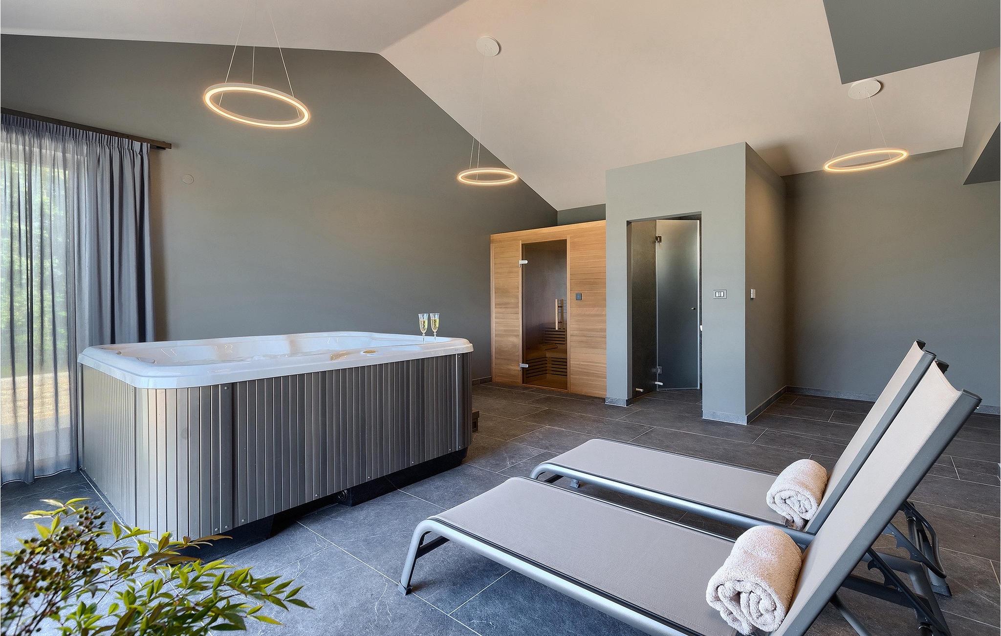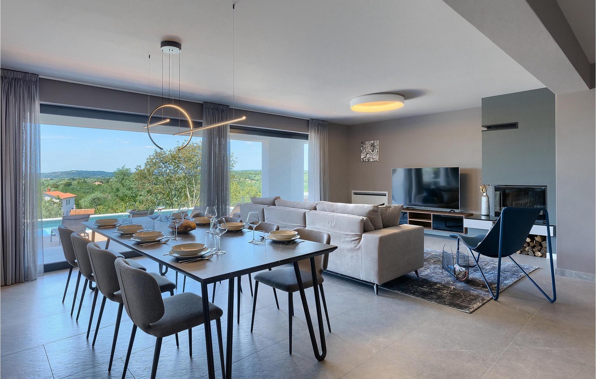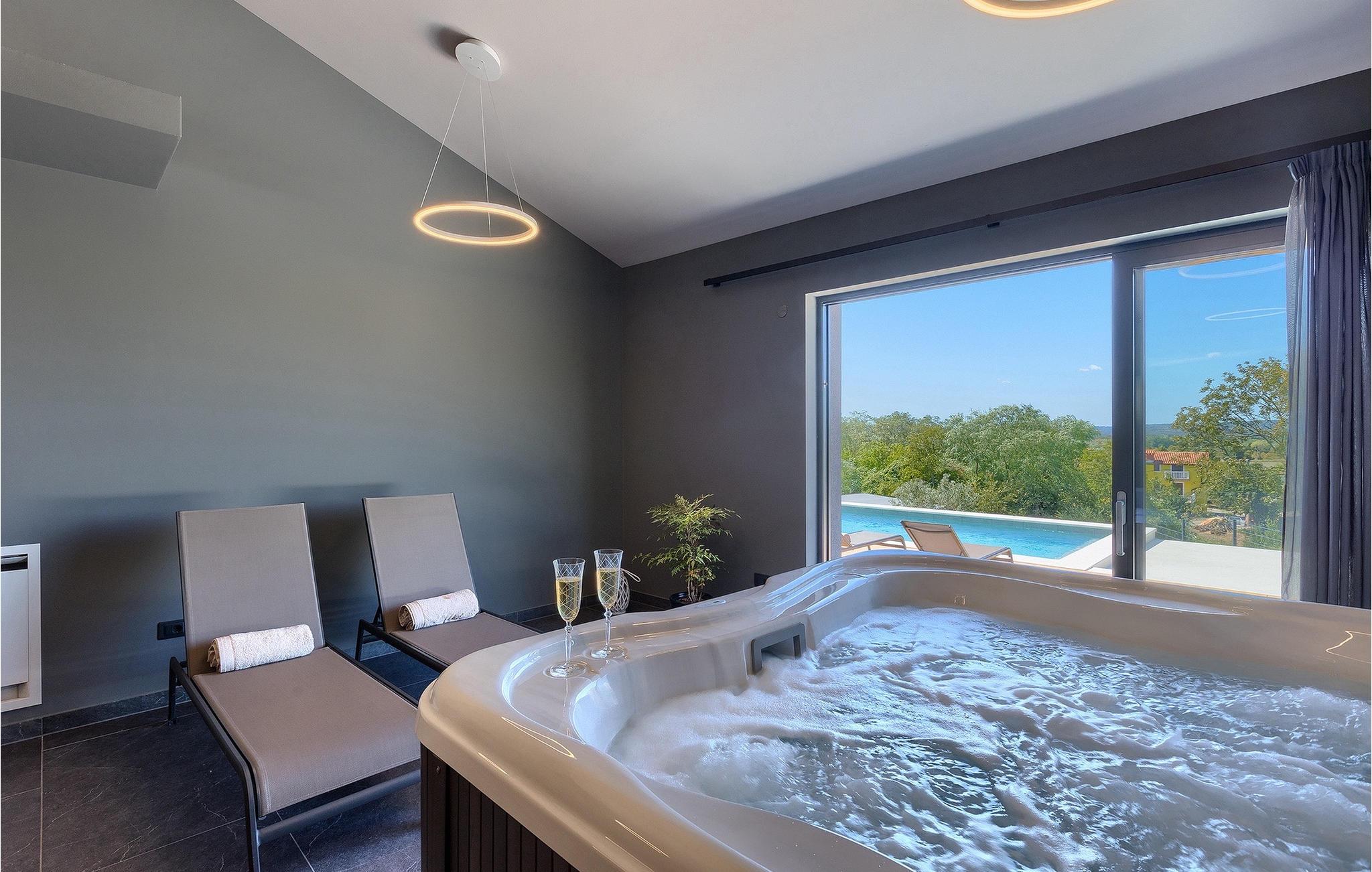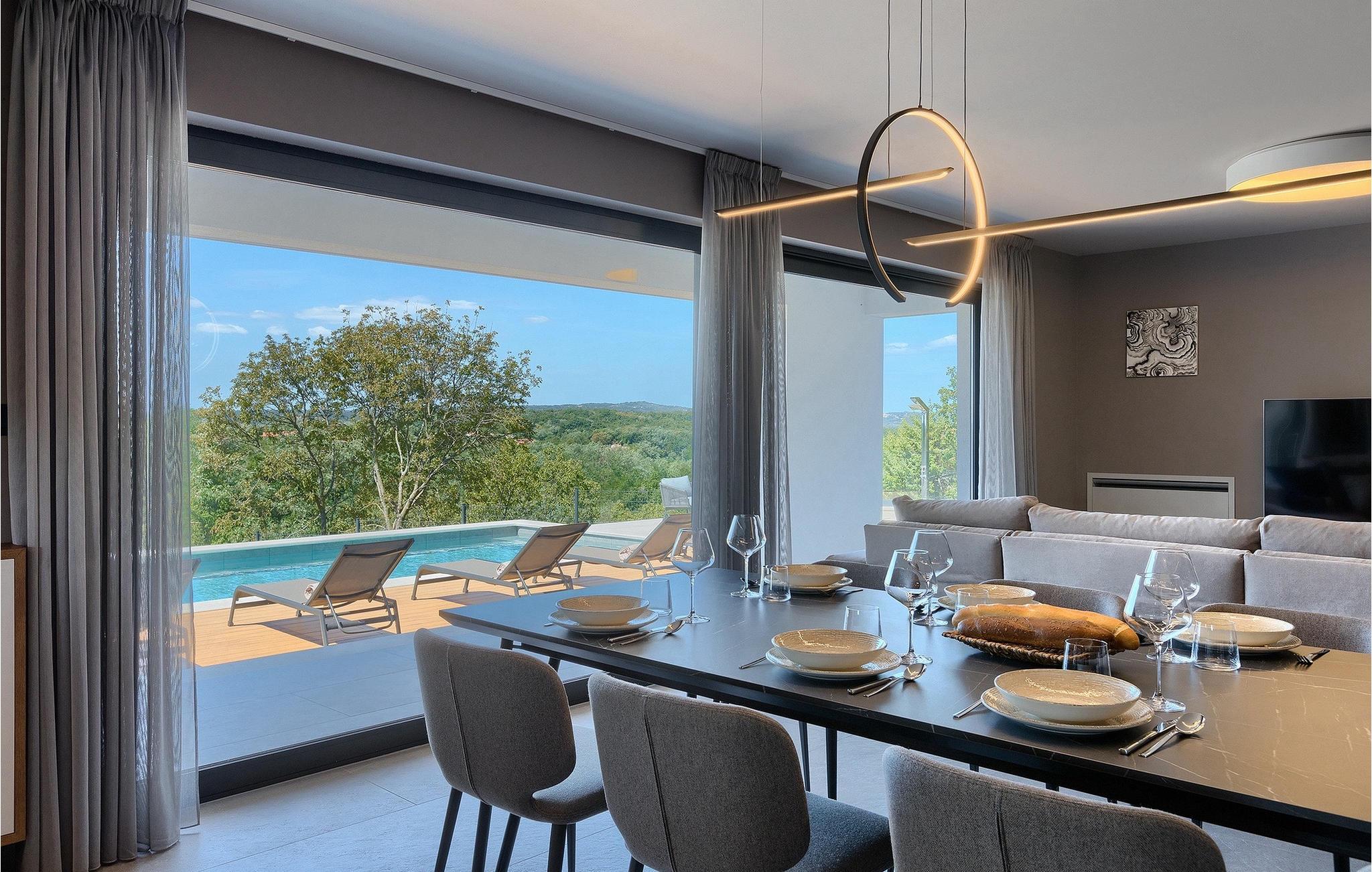 Forkæl dig selv med lidt luksus og tilbring din drømmeferie i den elegante Villa La Guardia. Beliggende i et roligt, grønt område nær Labin-Rabac, tilbyder denne villa dig den afslapning, du længes efter. Den betagende panoramaudsigt over det grønne landskab vil fange dit hjerte. Dit andet kig vil være på den smukke private pool med hydromassage, som ligger ved husets fødder. Slap af på en af ??liggestolene ved poolen eller i wellness-området i Villa La Guardia - med sauna og spabad. En stor overdækket terrasse med et lille sommerkøkken og kulgrill er det ideelle sted at nyde lækre måltider med familie og venner og afslutte lange sommeraftener. Det indre af villaen er elegant og smagfuldt indrettet. Den store vinduesfront i det åbne opholdsrum gør stuen lys og luftig. Stueetagen består af denne skønne stue med pejs, et fuldt udstyret moderne køkken, spisepladsen med plads til op til 8 gæster, et komfortabelt soveværelse med eget stilfuldt badeværelse og en wellness-oase med sauna, jacuzzi og badeværelse. . På første sal er der tre komfortable soveværelser, hver med eget badeværelse og et hyggeligt læsehjørne. De klimatiserede soveværelser har alle store, komfortable dobbeltsenge, der lover en god nats søvn. Nyd den fantastiske udsigt fra balkonen med din første kop kaffe om morgenen eller se på stjernerne om aftenen. Villa La Guardia er stedet, du leder efter, for at tilbringe en fantastisk ferie med dine kære. Tøv ikke, forkæl dig selv med et strejf af luksus og bestil Villa La Guardia.Villa La Guardia er beliggende i Šumber, et roligt område nær Labin-Rabac, kun 15 km fra den nærmeste strand i Rabac. Omgivet af grønne bakker og marker finder du her den ro, du leder efter. Alt hvad du behøver til det daglige liv er omkring 4-7 km væk. Den næste restaurant ligger kun 2 km væk. Oplev denne smukke region på cykel, udforsk strandene og bugterne ved Istriens østkyst eller besøg de mange omkringliggende små byer, der udstråler deres helt egen charme, og hvor du byder velkommen til gæstfrie lokale. Tag en tur til Pazin med dets berømte slot, som ligger på kanten af ??en dyb kløft, eller til Ucka naturparken og nyd en betagende udsigt fra toppen. Gå ikke glip af det mangfoldige gastronomiske tilbud og smag Istriens smag.