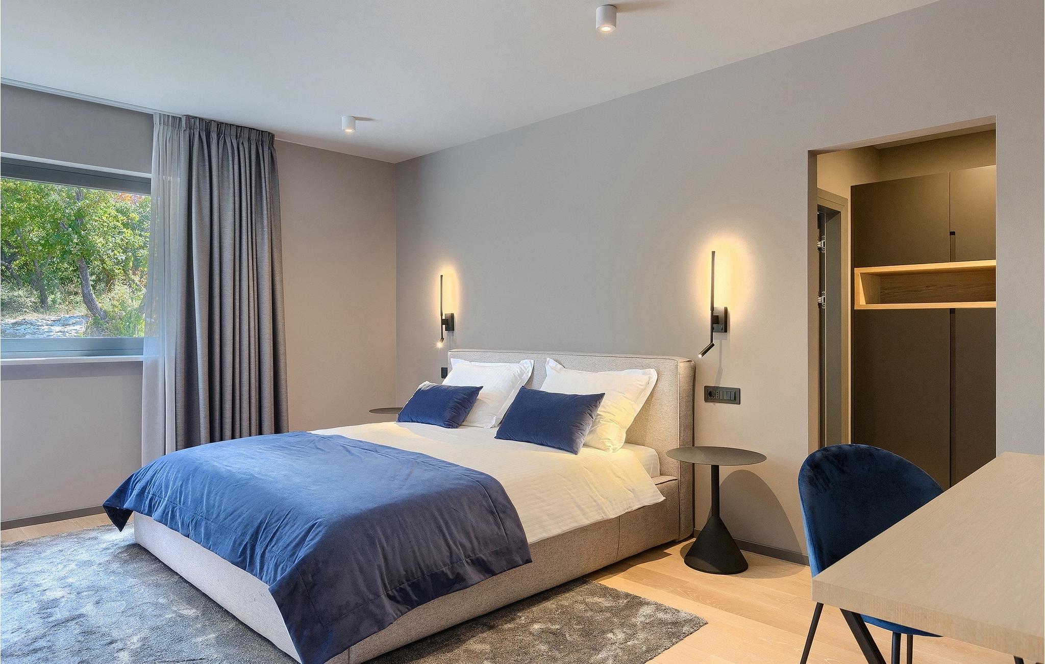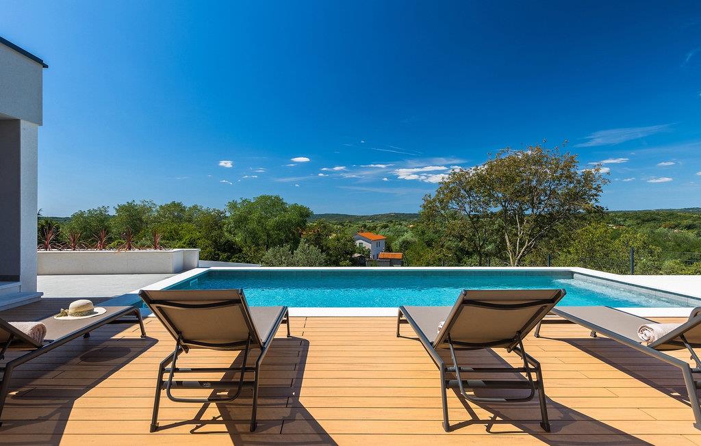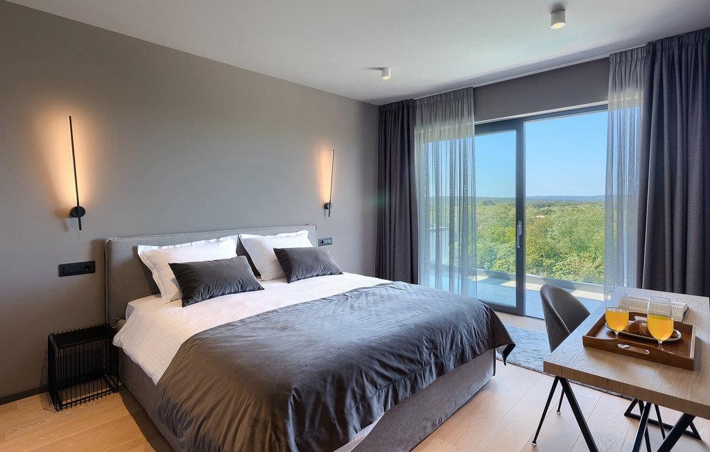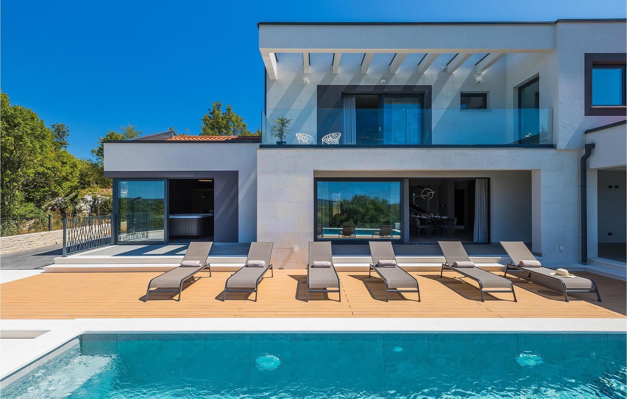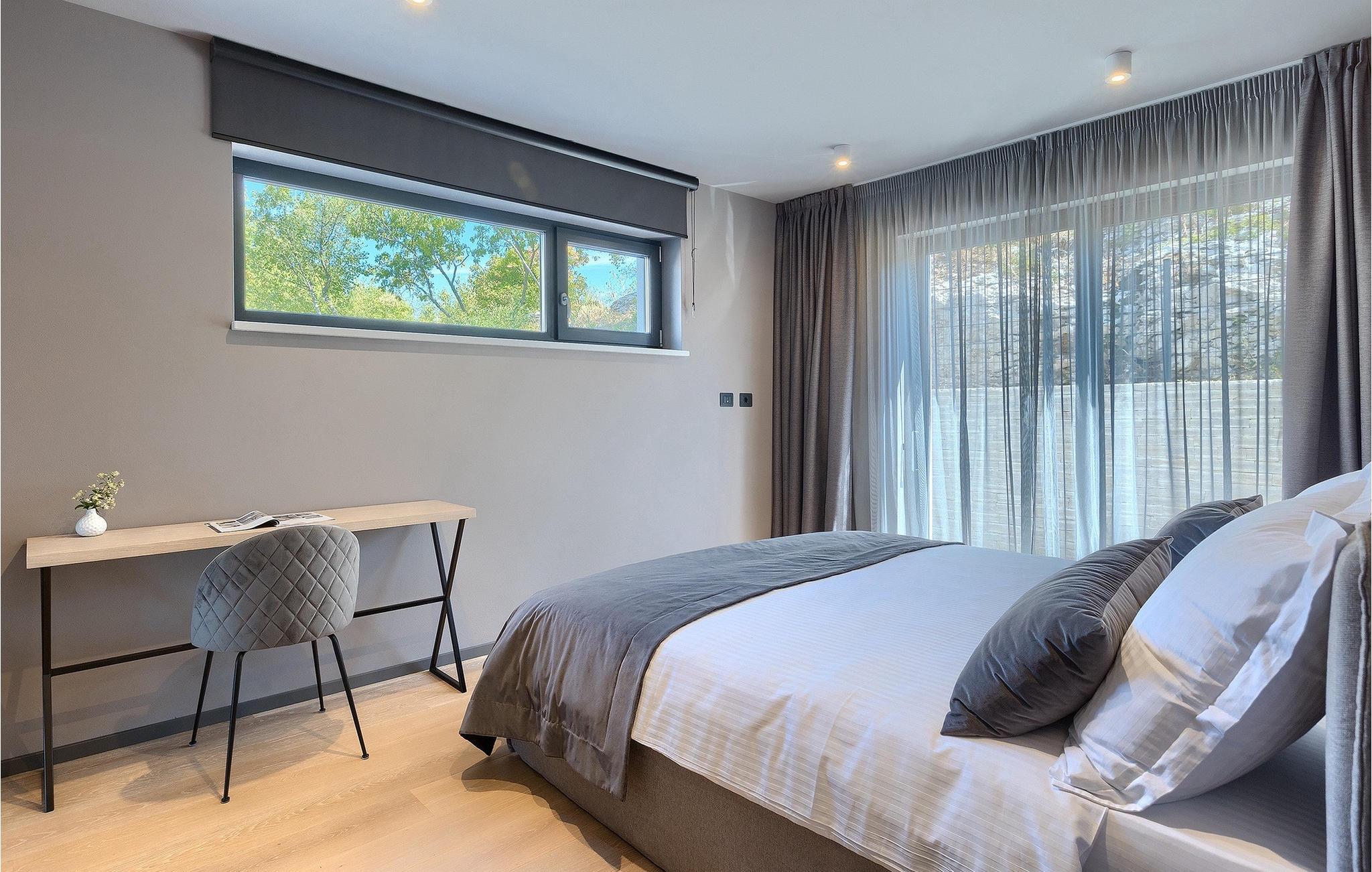 Forkæl dig selv med lidt luksus og tilbring din drømmeferie i den elegante Villa La Guardia. Beliggende i et roligt, grønt område nær Labin-Rabac, tilbyder denne villa dig den afslapning, du længes efter. Den betagende panoramaudsigt over det grønne landskab vil fange dit hjerte. Dit andet kig vil være på den smukke private pool med hydromassage, som ligger ved husets fødder. Slap af på en af ??liggestolene ved poolen eller i wellness-området i Villa La Guardia - med sauna og spabad. En stor overdækket terrasse med et lille sommerkøkken og kulgrill er det ideelle sted at nyde lækre måltider med familie og venner og afslutte lange sommeraftener. Det indre af villaen er elegant og smagfuldt indrettet. Den store vinduesfront i det åbne opholdsrum gør stuen lys og luftig. Stueetagen består af denne skønne stue med pejs, et fuldt udstyret moderne køkken, spisepladsen med plads til op til 8 gæster, et komfortabelt soveværelse med eget stilfuldt badeværelse og en wellness-oase med sauna, jacuzzi og badeværelse. . På første sal er der tre komfortable soveværelser, hver med eget badeværelse og et hyggeligt læsehjørne. De klimatiserede soveværelser har alle store, komfortable dobbeltsenge, der lover en god nats søvn. Nyd den fantastiske udsigt fra balkonen med din første kop kaffe om morgenen eller se på stjernerne om aftenen. Villa La Guardia er stedet, du leder efter, for at tilbringe en fantastisk ferie med dine kære. Tøv ikke, forkæl dig selv med et strejf af luksus og bestil Villa La Guardia.Villa La Guardia er beliggende i Šumber, et roligt område nær Labin-Rabac, kun 15 km fra den nærmeste strand i Rabac. Omgivet af grønne bakker og marker finder du her den ro, du leder efter. Alt hvad du behøver til det daglige liv er omkring 4-7 km væk. Den næste restaurant ligger kun 2 km væk. Oplev denne smukke region på cykel, udforsk strandene og bugterne ved Istriens østkyst eller besøg de mange omkringliggende små byer, der udstråler deres helt egen charme, og hvor du byder velkommen til gæstfrie lokale. Tag en tur til Pazin med dets berømte slot, som ligger på kanten af ??en dyb kløft, eller til Ucka naturparken og nyd en betagende udsigt fra toppen. Gå ikke glip af det mangfoldige gastronomiske tilbud og smag Istriens smag.
