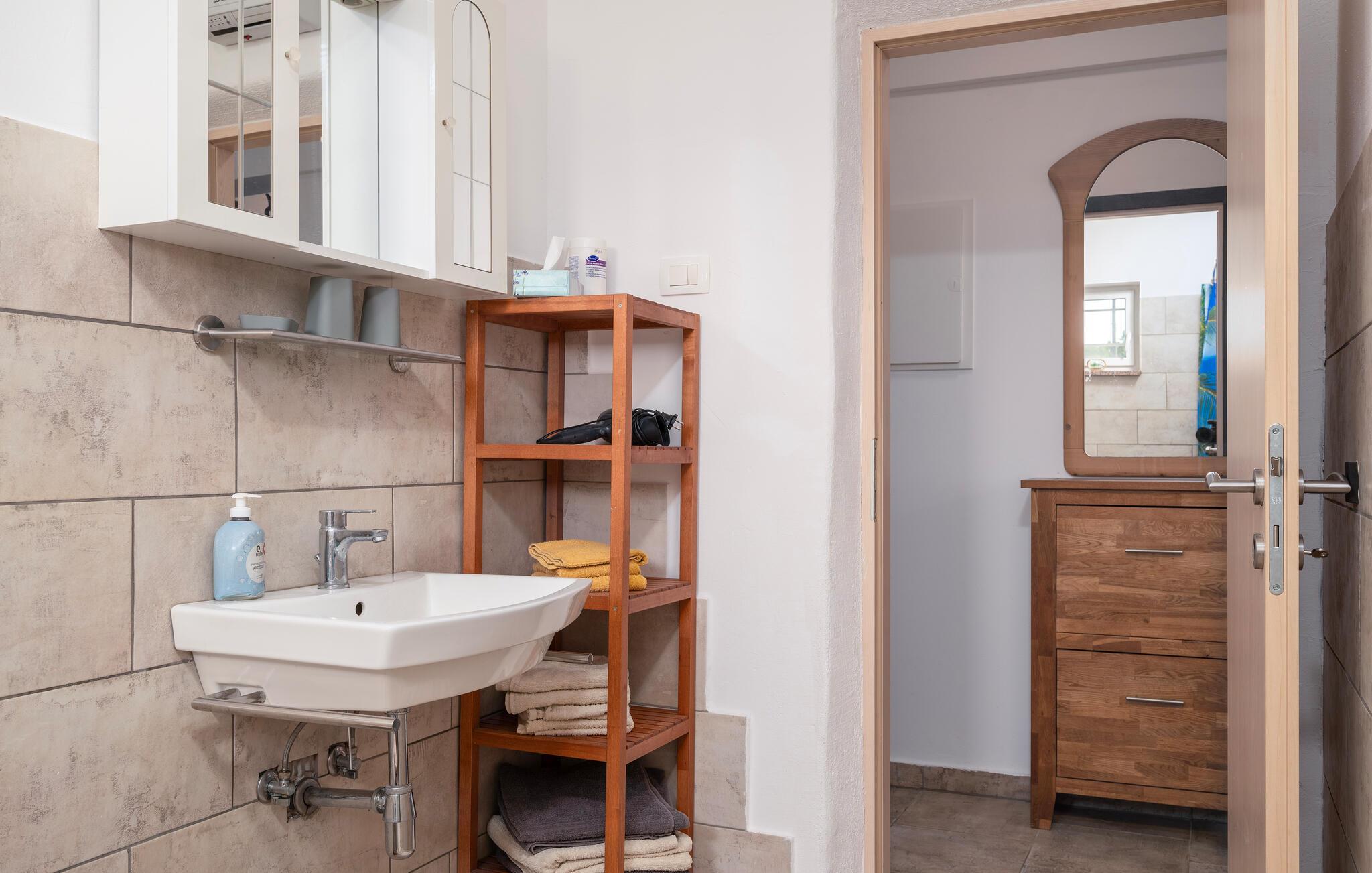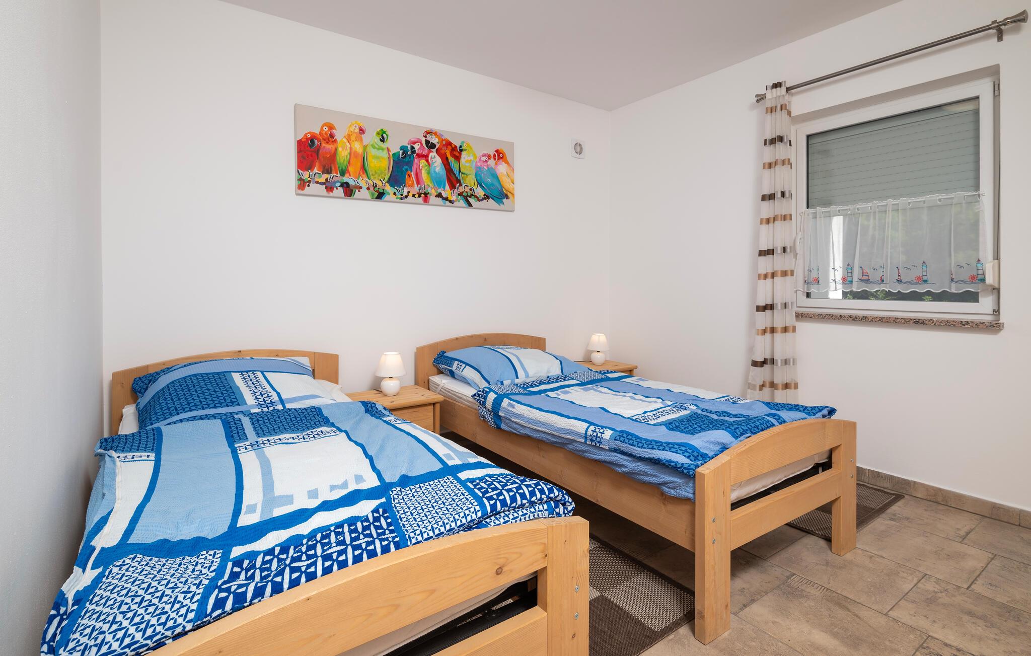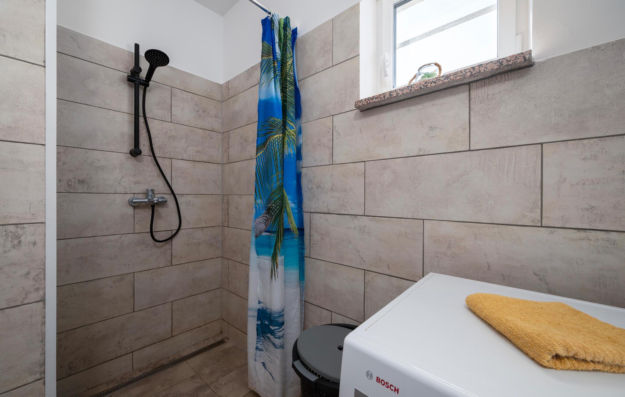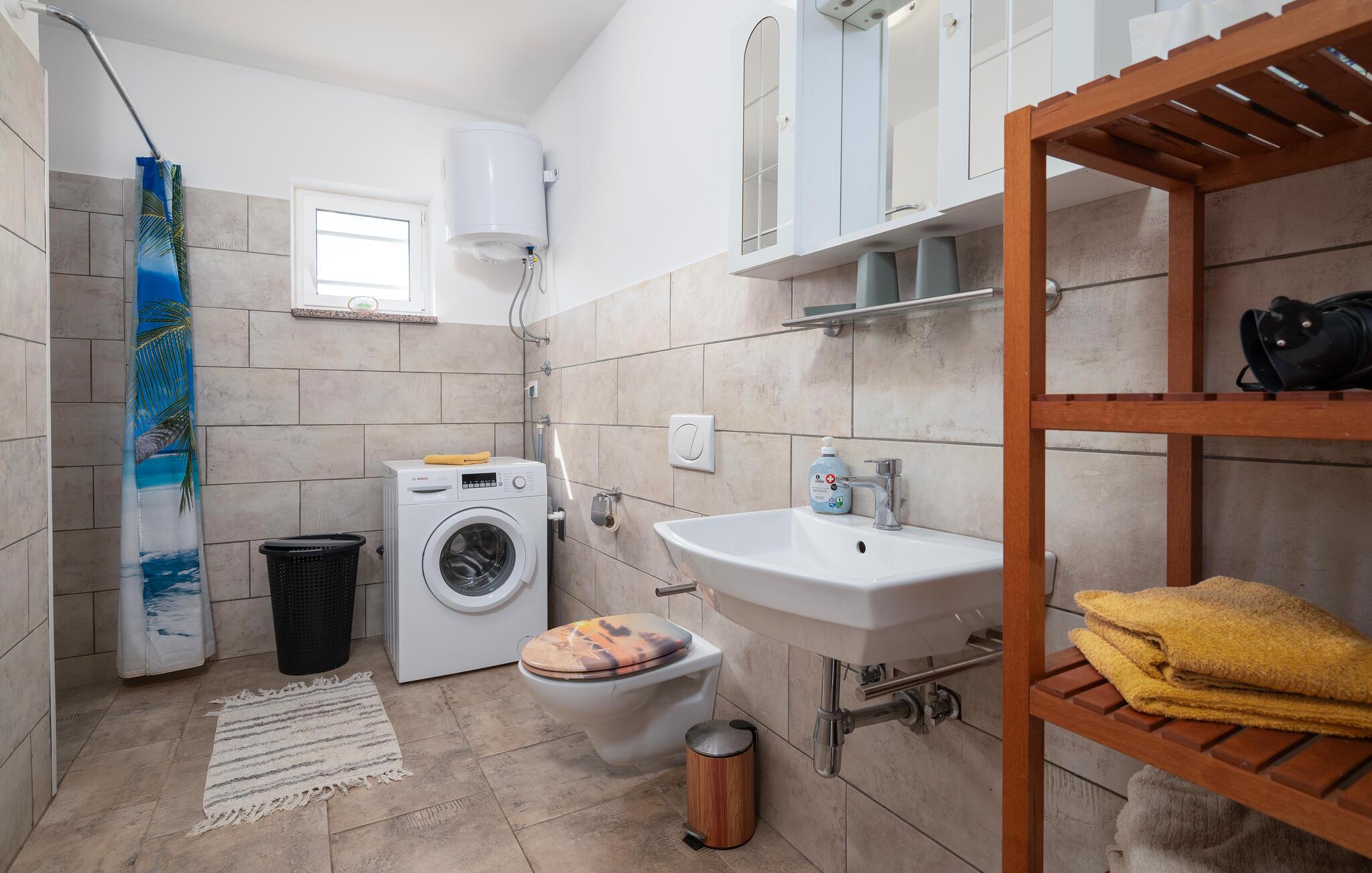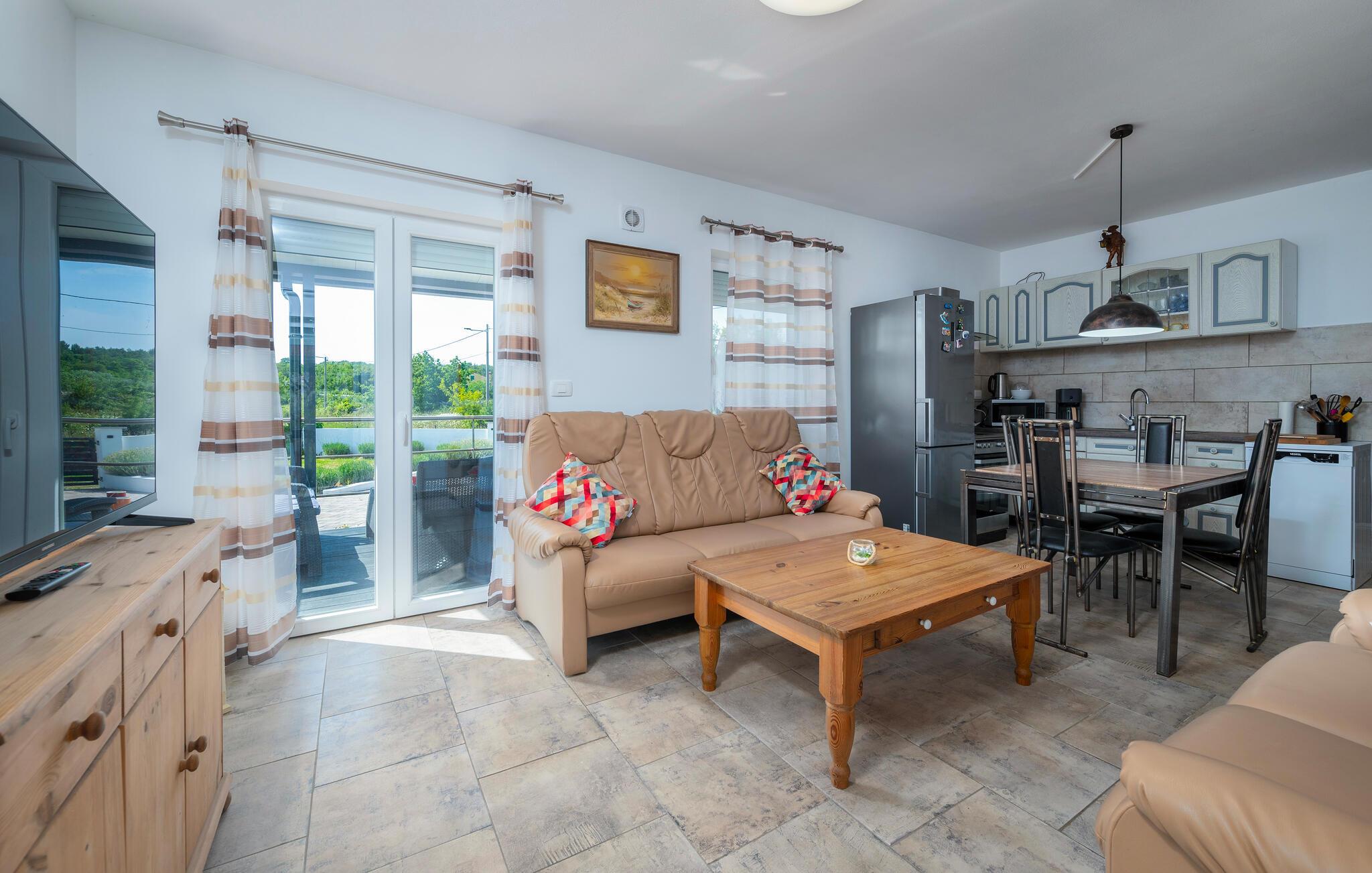Det smukke hus ligger i landsbyen Percici, nær den lille fiskerlandsby Trget, og tilbyder jer en behagelig og afslappende ferie. Huset er fuldt udstyret og tilbyder alt hvad I behøver for et ubekymret ophold. Fra stuen er der udgang til en overdækket terrasse på den ene side og en åben terrasse på den anden side, hvor I kan slappe af med jeres yndlingsbog eller et glas vin. Her har I også en grill til jeres rådighed for at tilberede jeres yndlingsretter og nyde måltider sammen i den friske luft. Til sjov og leg i haven kan I bruge et net og ketchere til badmintonspil.
