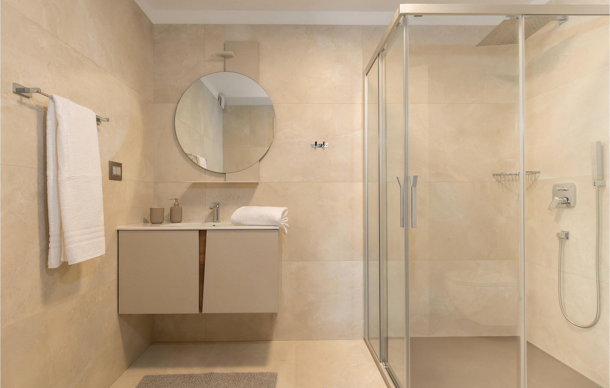 Men kom venligst ind! Interiøret i den to-etagers villa er meget smagfuldt og moderne indrettet. Naturfarver samt træ- og stenelementer skaber en fantastisk sammenhæng til miljøet og giver dig en hjemlig følelse. Den åbne stue med køkken og spiseplads udgør villaens fokus, men to komfortable soveværelser og 2 moderne badeværelser med bruser er også placeret i stueetagen, samt fitnessrummet. På øverste etage er der yderligere 3 soveværelser med de mest komfortable dobbeltsenge du kan forestille dig og et fælles badeværelse. Forestil dig at drikke din første morgenkaffe på balkonen med en af de betagende solopgange ...