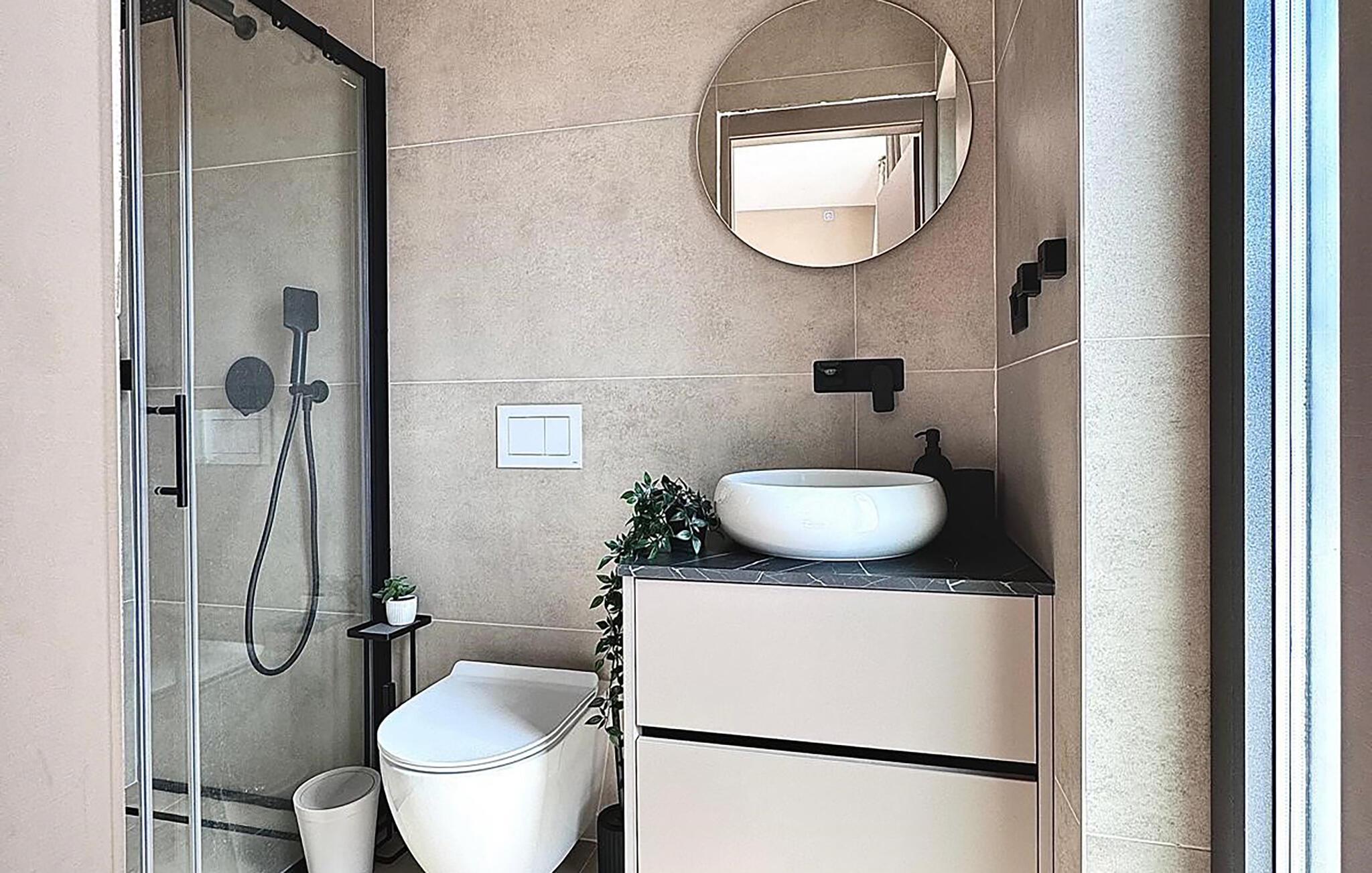 - WC. Varmt og koldt vand, Bruser