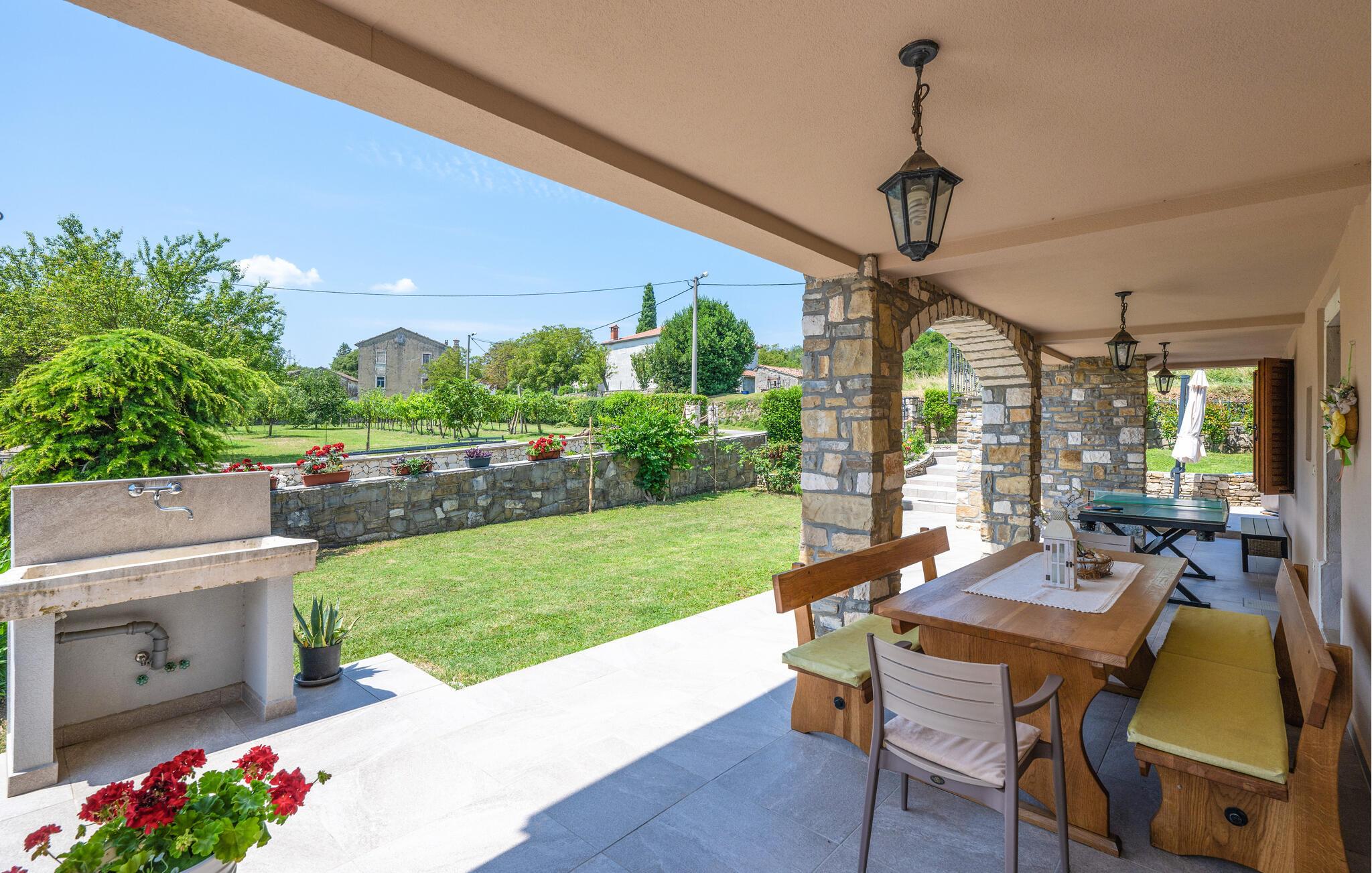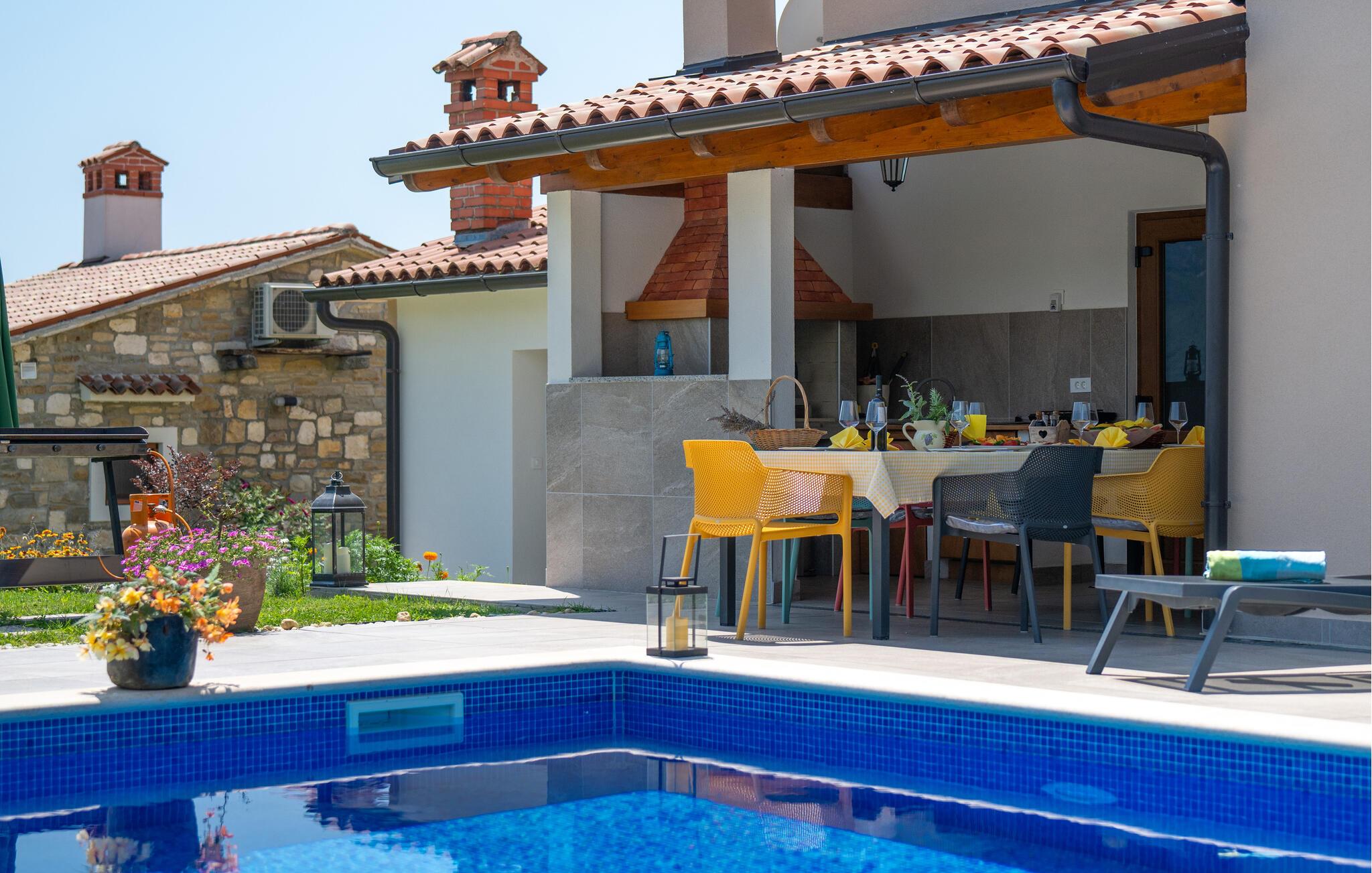 I det maleriske landskab, omgivet af Ucka-bjergene og de grønne enge af den tidligere Cepic-sø, venter Villa Milena. Det indre af huset kombinerer traditionelle istriske elementer som stenvægge og pejs med moderne kvalitetsmøbler. Villaen er rummelig og består af tre næsten uafhængige etager, alle forbundet med indvendige trapper. Udefra er stueetagen forbundet med 1. sal og har hver sin indgangsdør. De rummelige etager, hvoraf den ene også er udstyret med badekar og et hyggeligt børnehjørne byder på plads nok til alle gæster, mens sommerkøkkenet og gasgrillen runder ferien perfekt af. De aktive kan holde formen ved lige i fitnessrummet.