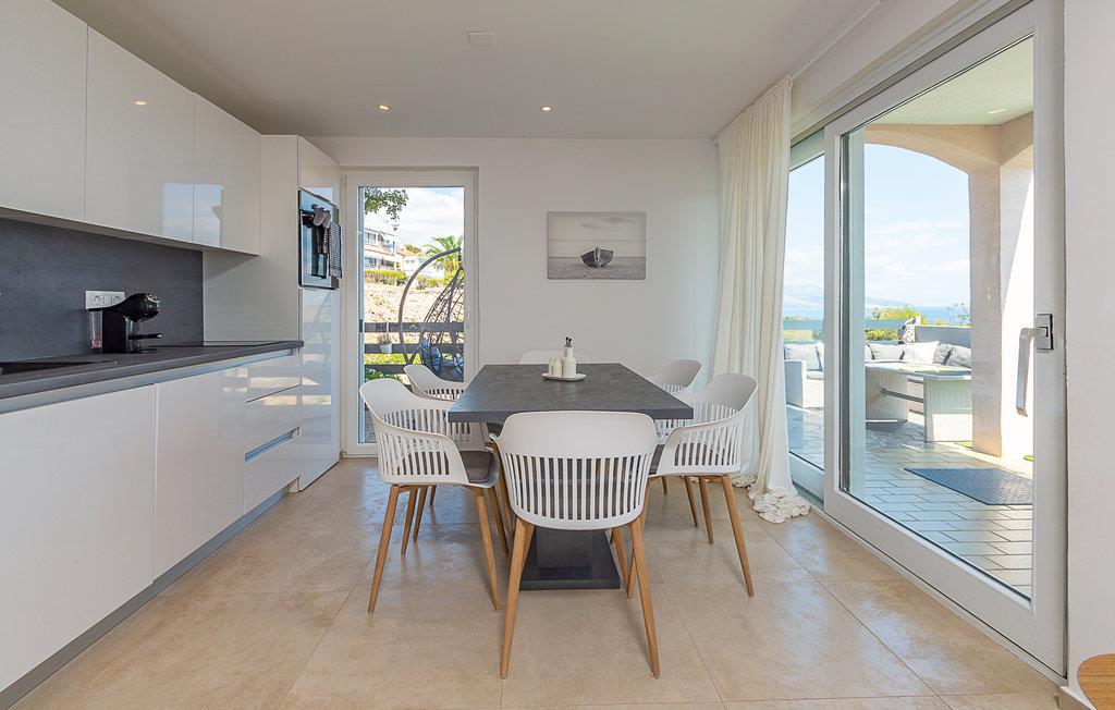 Den tidløse indretning skaber en feel-good atmosfære for jer. Det lyse køkken byder på alt hvad I behøver for at lave lækre måltider. Nyd særligt den rummelige terrasse med panoramaudsigt over havet. Her kan I drikke dagens første kop kaffe om morgenen og solbade på en liggestol om dagen eller tilberede jeres yndlingsretter på grillen om aftenen.