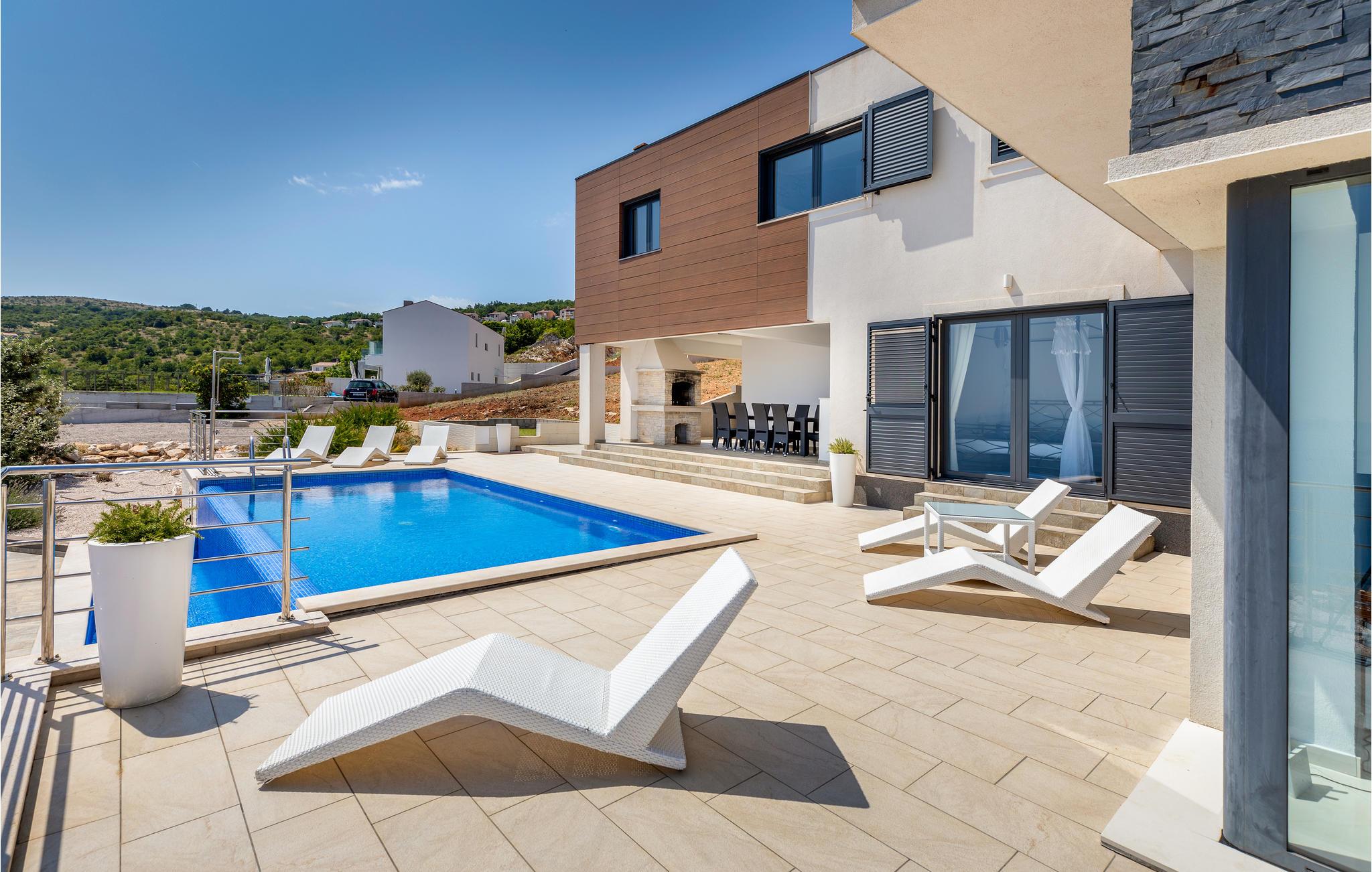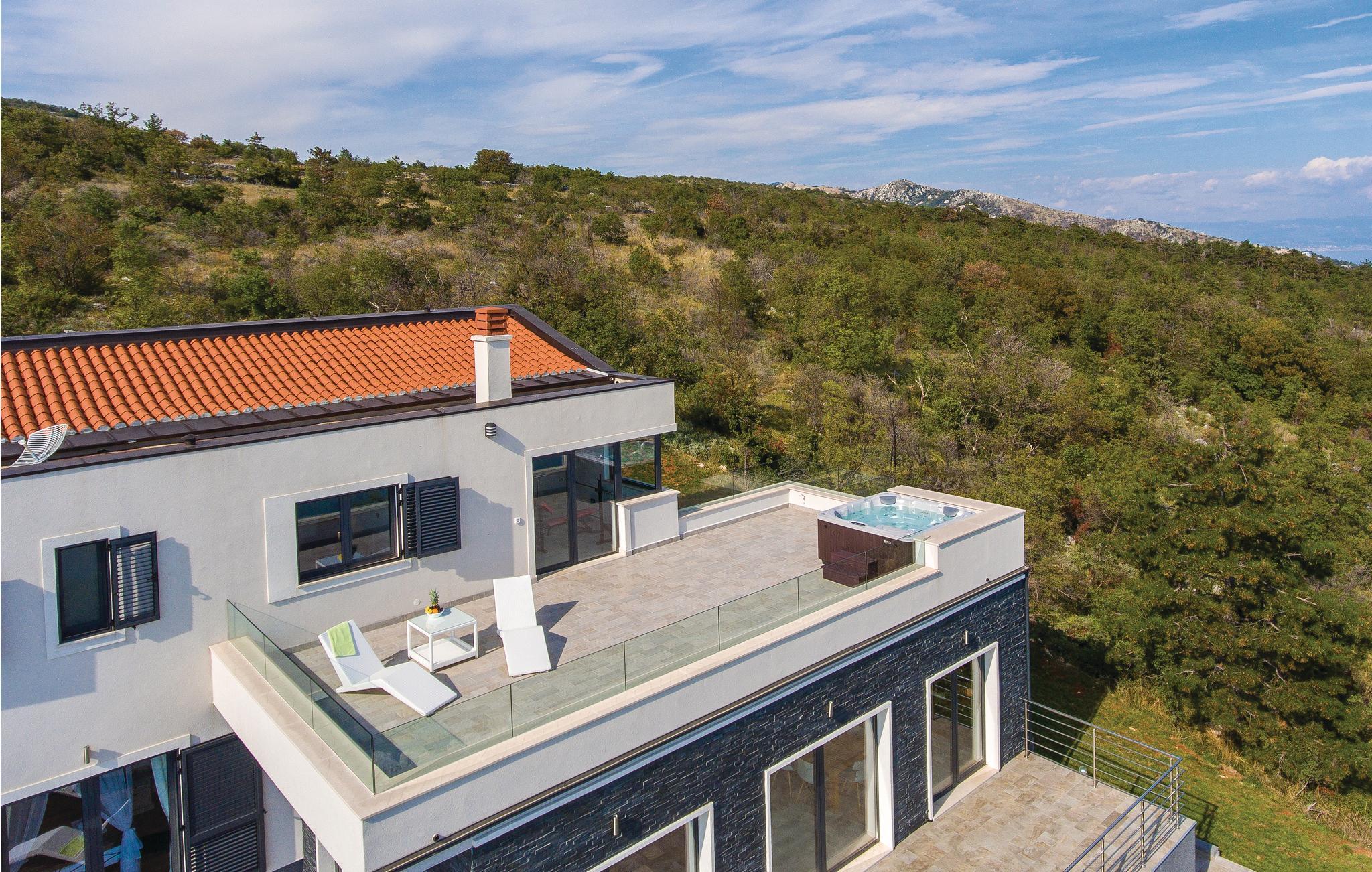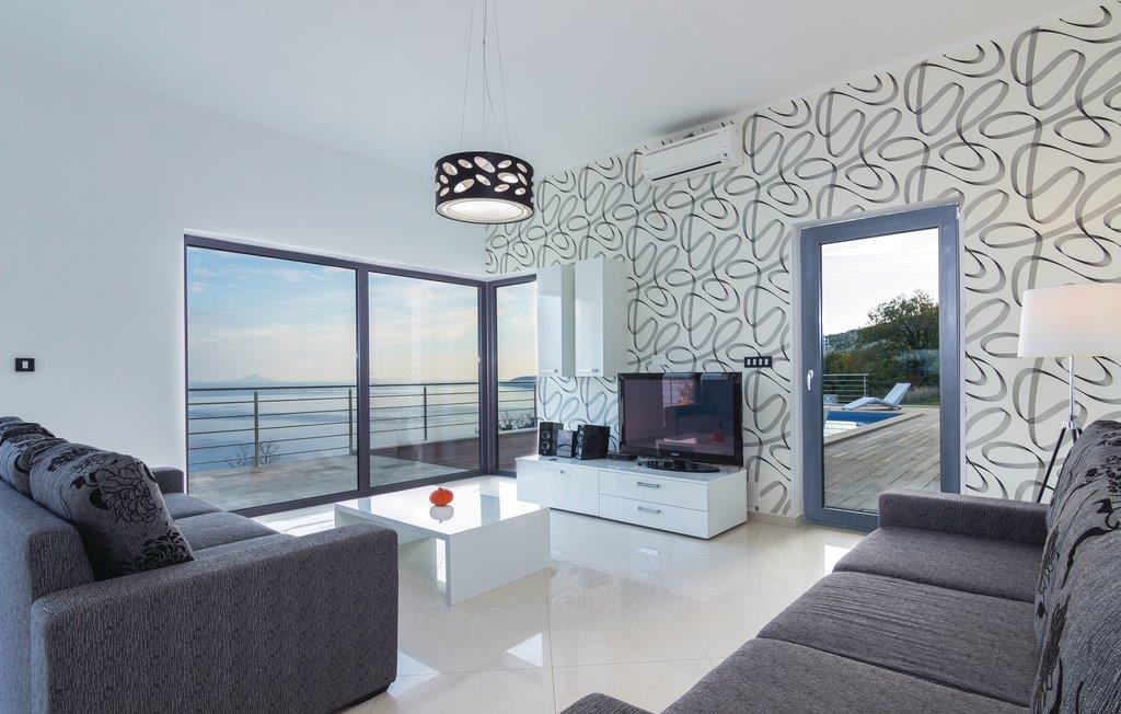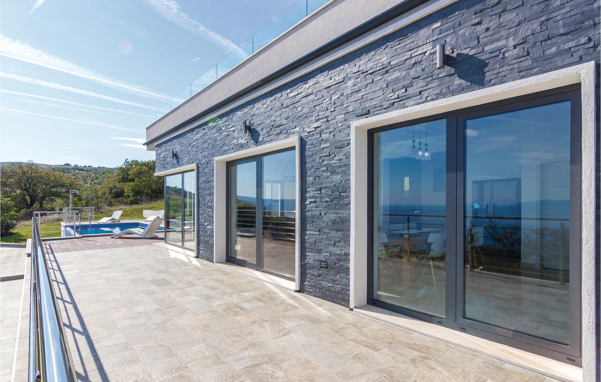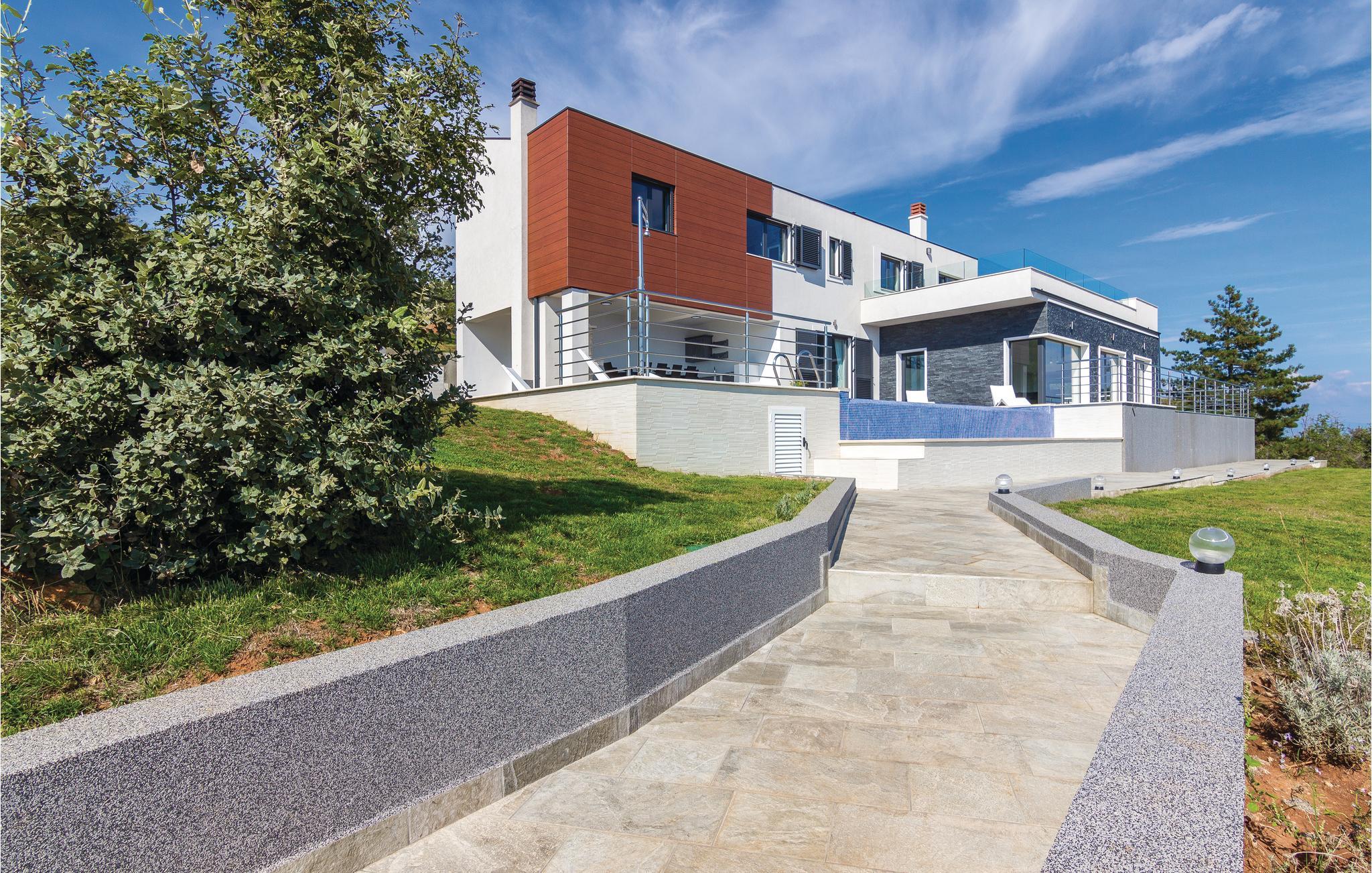 Dette herlige feriehus med pool og en uforglemmelig udsigt til havet og øerne ligger i udkanten af en lille landsby på Istriens østkyst.