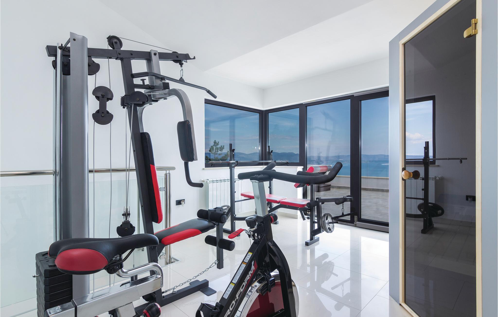 Den moderne arkitektur og den elegante stil sørger for god komfort under jeres ophold. I stueetagen ligger køkkenet med spisestue, dagligstue og soveværelse, det handicapegnede badeværelse, et ekstra wc og et billardrum. På første sal er der tre soveværelser med badeværelser, fitnessrummet og saunaen.