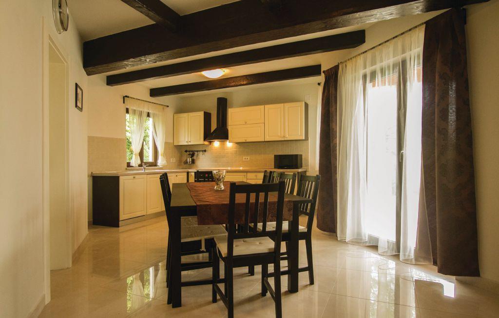 Dette skønne feriehus med pool ligger i en lille istrisk landsby ca. fem minutter i bil fra turistbyen Rabac, der er kendt for sine smukke strande. Huset er behageligt og smagfuldt indrettet med udsøgte møbler. Desuden har det et billard- og spillerum. Dette er det ideelle sted til fælles ferie for to familier, der kan slappe hyggeligt af på den overdækkede terrasse og lave lækker mad i det lille hus med grill. I nærheden er der andre enfamiliehuse med pool. Se også byen Labin, der er kendt som kunstnernes by, med en venetiansk kirke og et museum. I museet er der en model af en mine. Samtidig er byen rig på kulturelle og historiske monumenter, og næsten enhver bygning er et kulturelt mindesmærke om denne bys meget bevægede historie. Også amfiteatret i Pula er en seværdighed for sig selv, hvor der er talrige koncerter med lokale og internationale kunstnere.