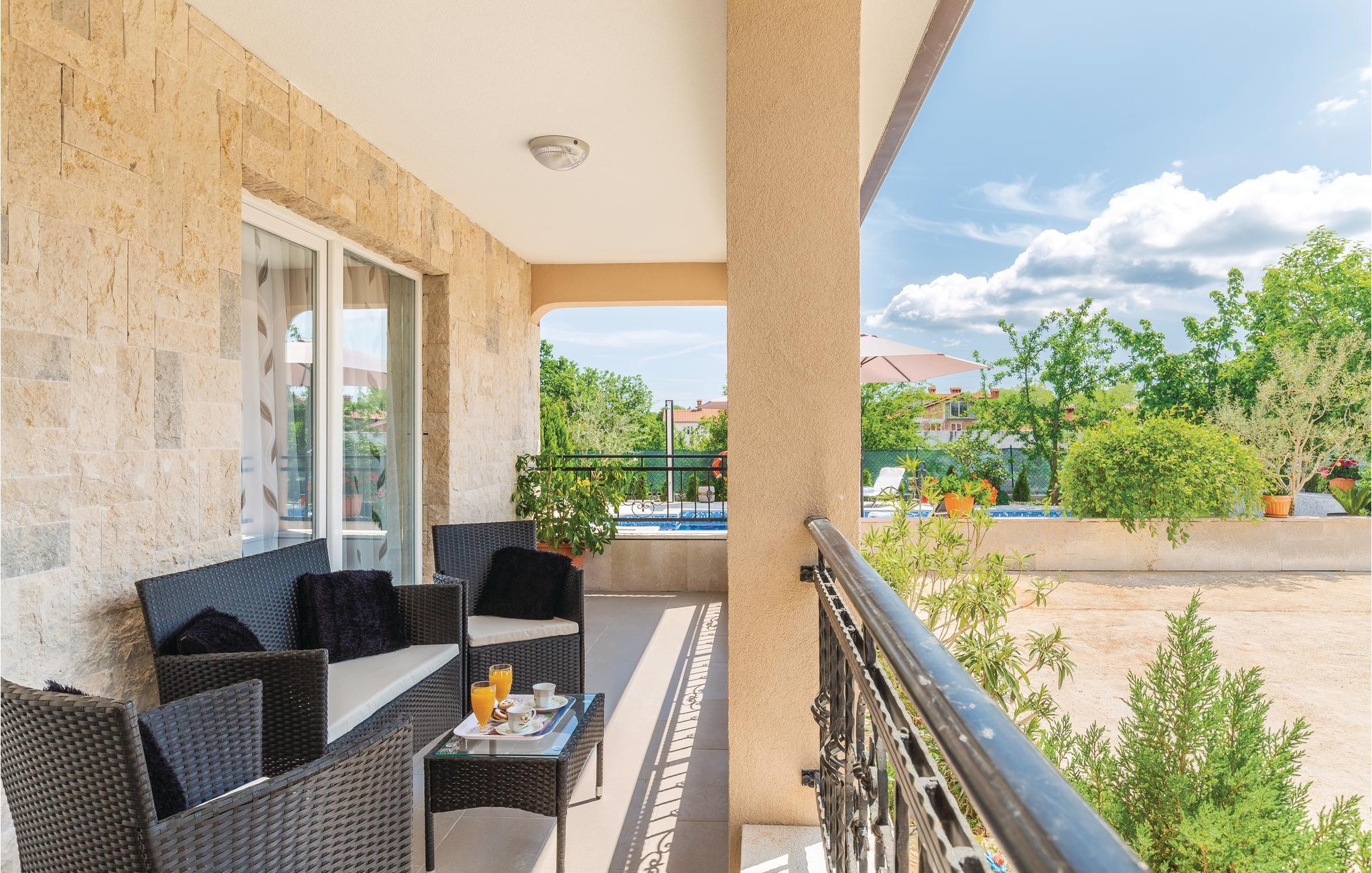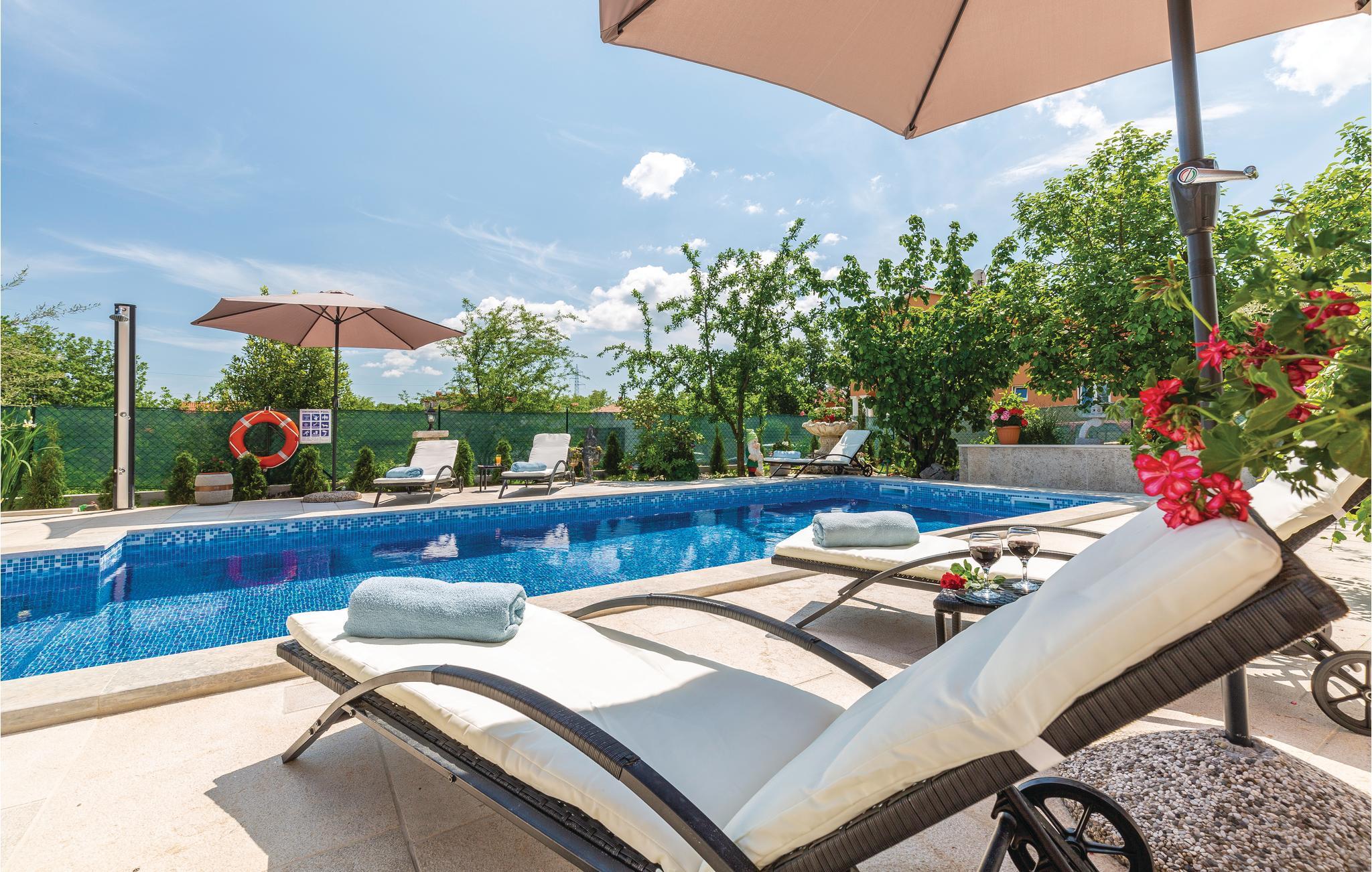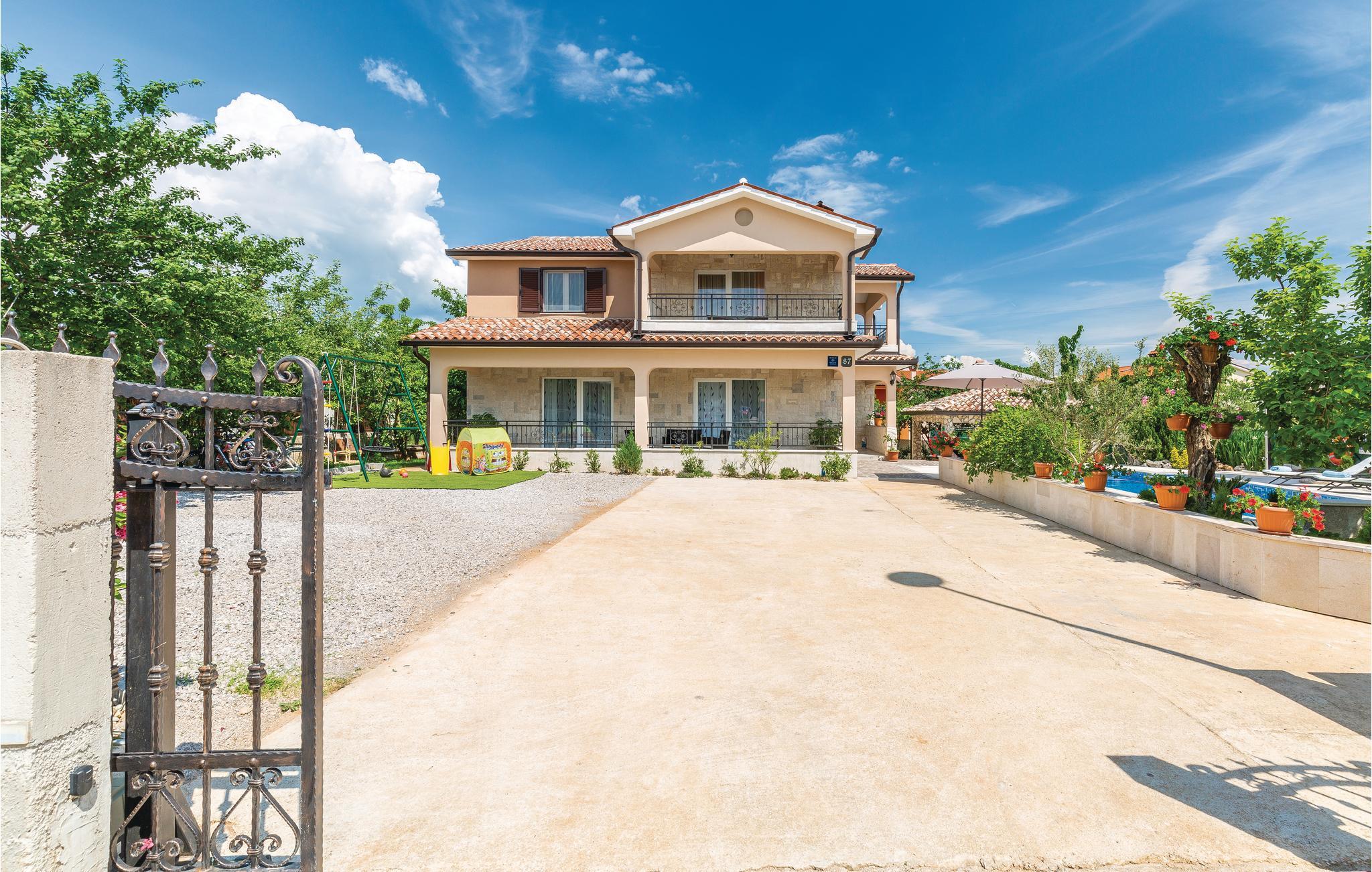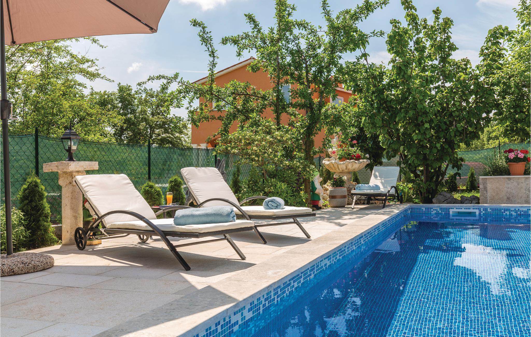 Dette skønne og komfortabelt indrettede feriehus ligger i den lille by Santalezi. I kan hoppe i husets private pool, lige så ofte og lige hvornår I har lyst. I kan også slappe af i den charmerende overdækkede pavillon, der er oplagt til aftener med et godt glas vine i hyggeligt samvær. Besøg den lille ferieby Rabac, med skønne kiesstrande ud til det krystalklare hav, hvor I også kan tage på tur med udflugtsbåd og se kysten fra havsiden. Oplev også de mange former for sommerunderholdning der afholdes i Labin. I bor i et godt udgangspunkt til ture til Pula, Porec og Rovinj.