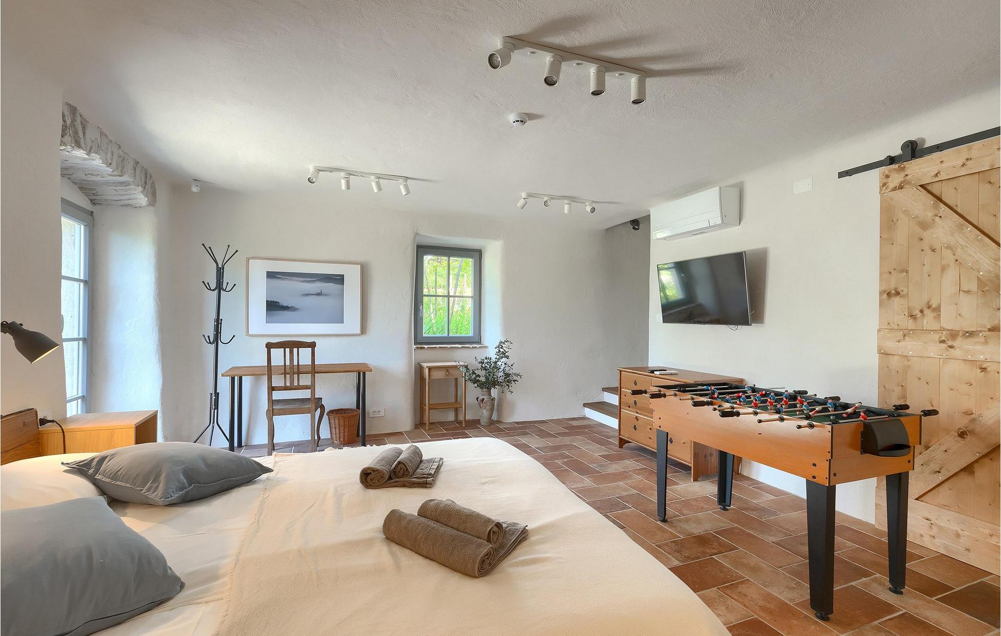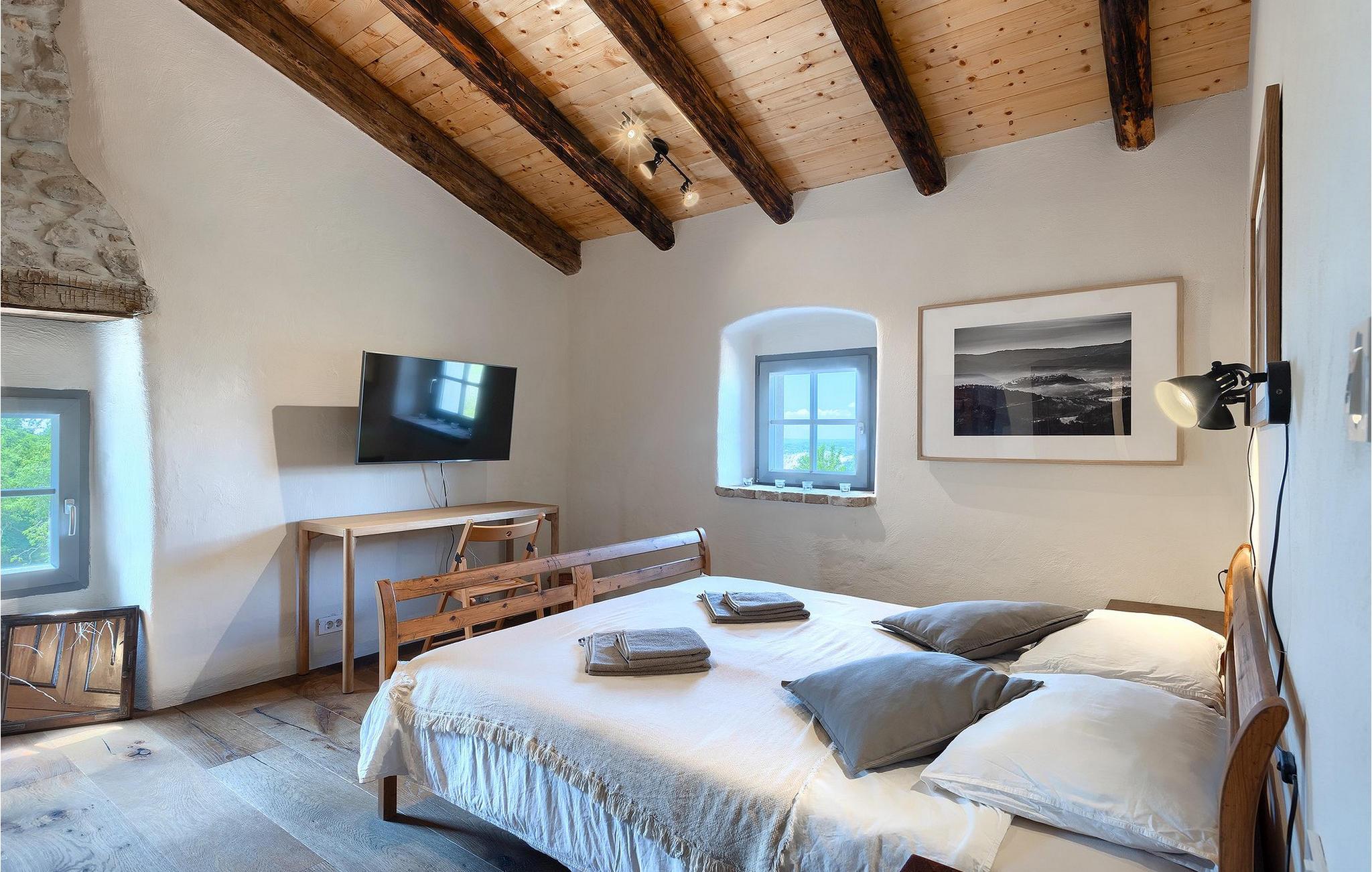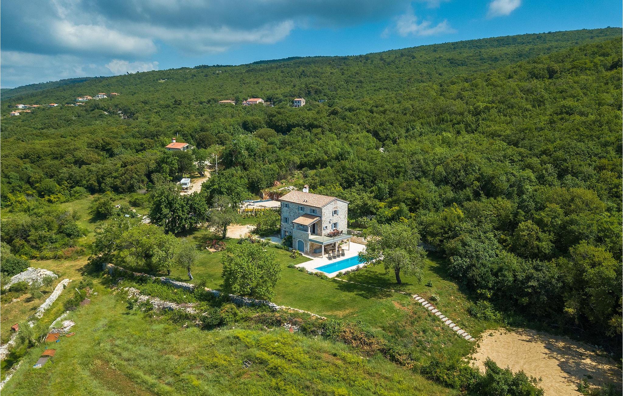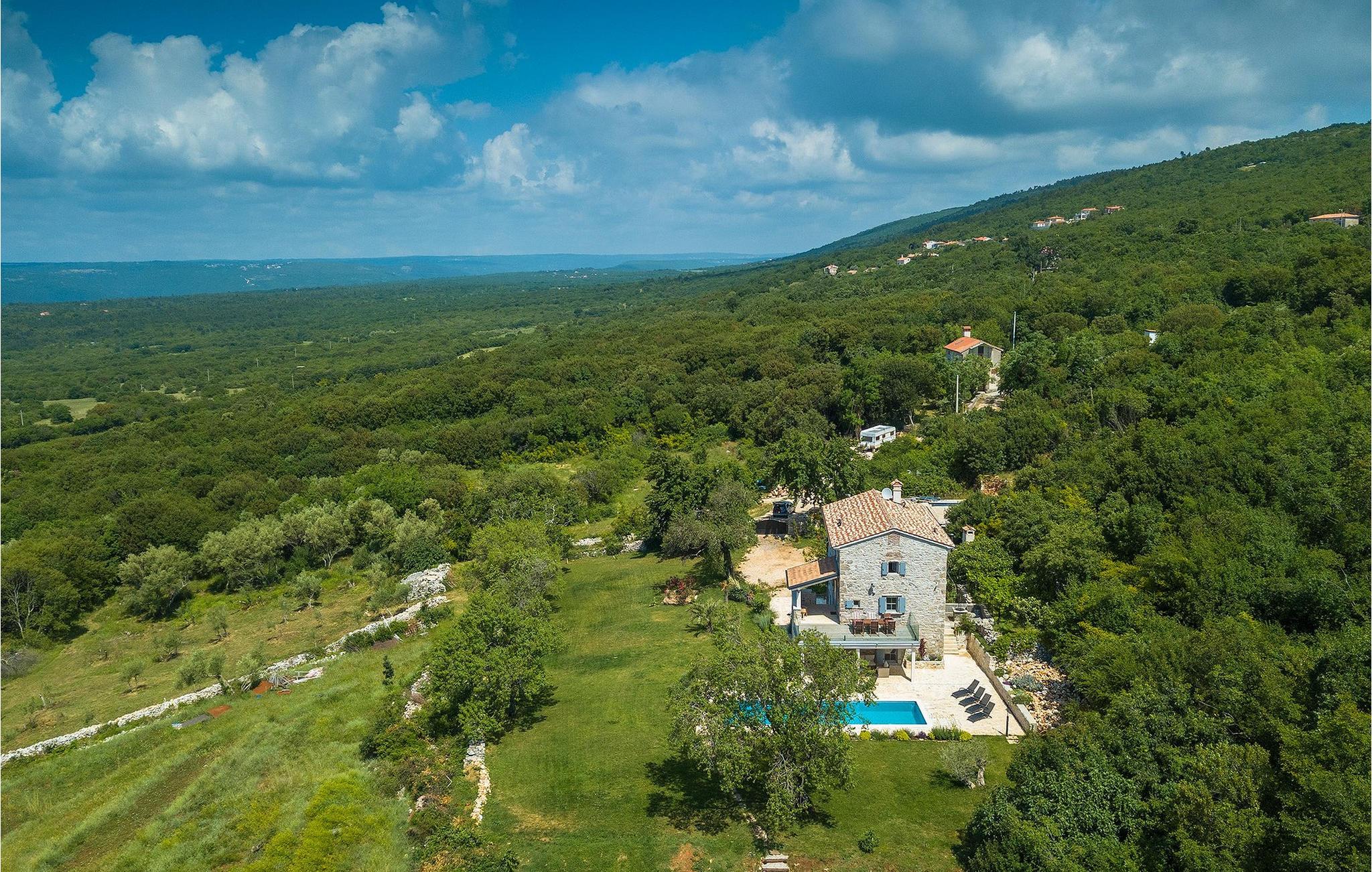 Book Villa Azzurro og tilbring din drømmeferie i den istriske idyl med udsigt over det fantastiske landskab!Villa Azzurro ligger i en lille landsby Stanisovi nær byen Labin i et roligt område omgivet af natur. Kun 5 km fra villaen ligger den nærmeste strand i Koromacno, men du finder også adskillige smukke strande langs Istriens kyst. Istrien byder på mange vandre- og cykelruter. Tag på en kort udflugt og udforsk de skjulte skønheder i dette område. Istrien er kendt for sine delikatesser som trøfler, olivenolie og forskellige fiskespecialiteter. Besøg lokale restauranter og taverner, hvor du kan nyde det brede gastronomiske tilbud i Istrien. Besøg byen Labin og mærk den ægte istriske atmosfære. Skal du til den anden side af halvøen, anbefaler vi at besøge byerne Zminj, Vodnjan eller Fazana. Gå ikke glip af en rundvisning i den historiske by Pula. Besøg det berømte romerske amfiteater Pula, men også andre vigtige seværdigheder. Vi anbefaler klart en tur til Ucka Nature Park eller Brijuni National Park.