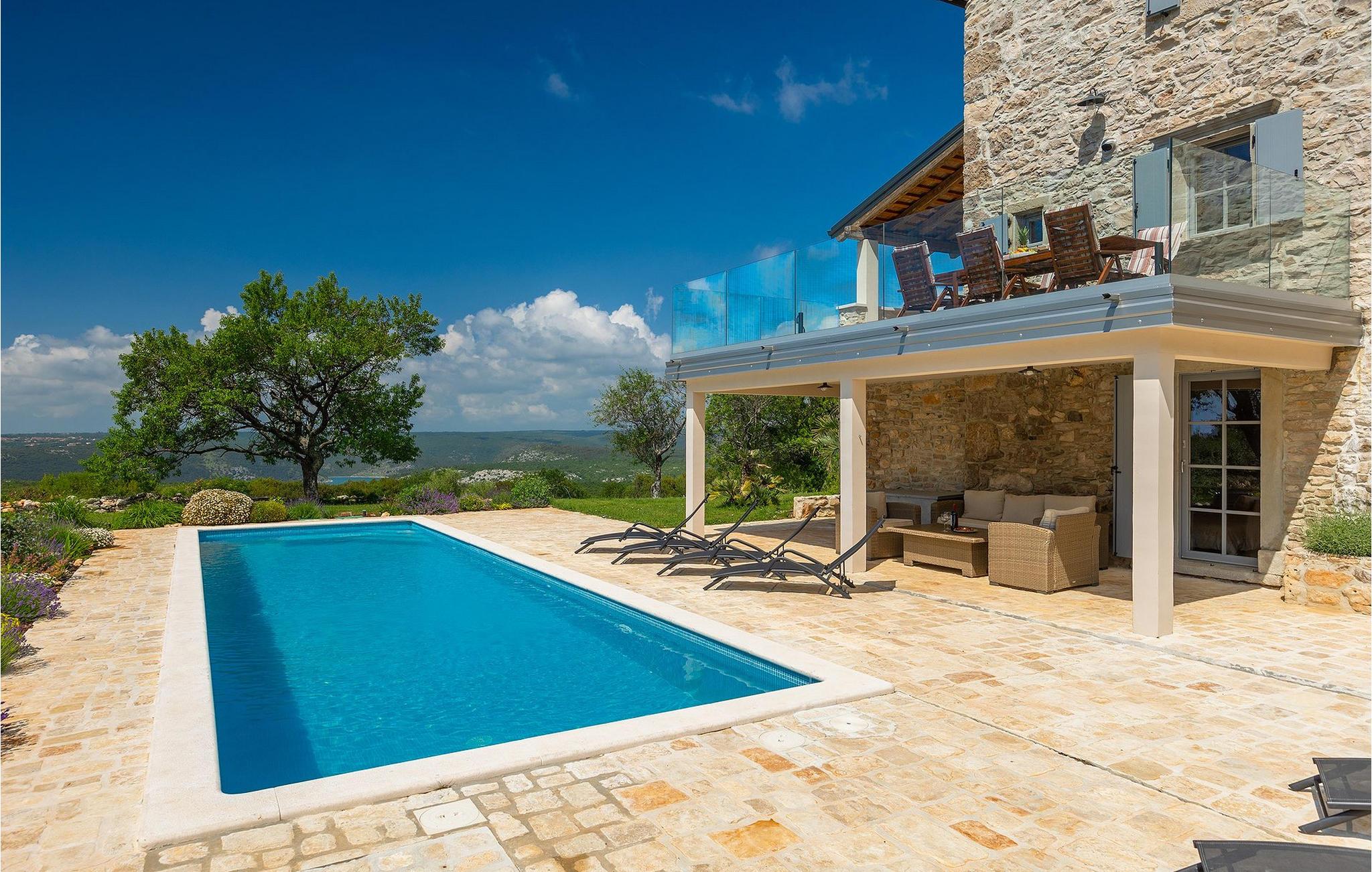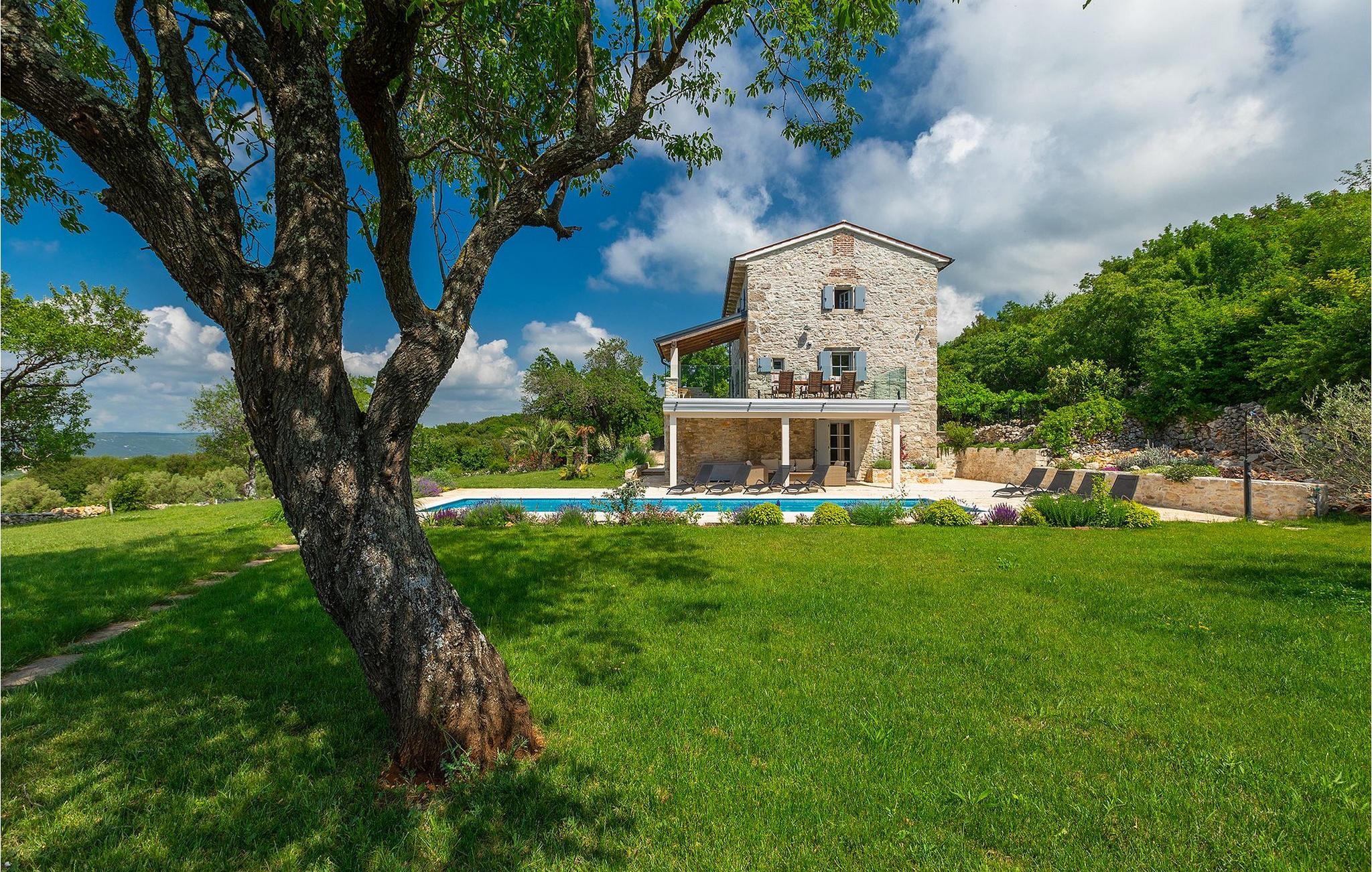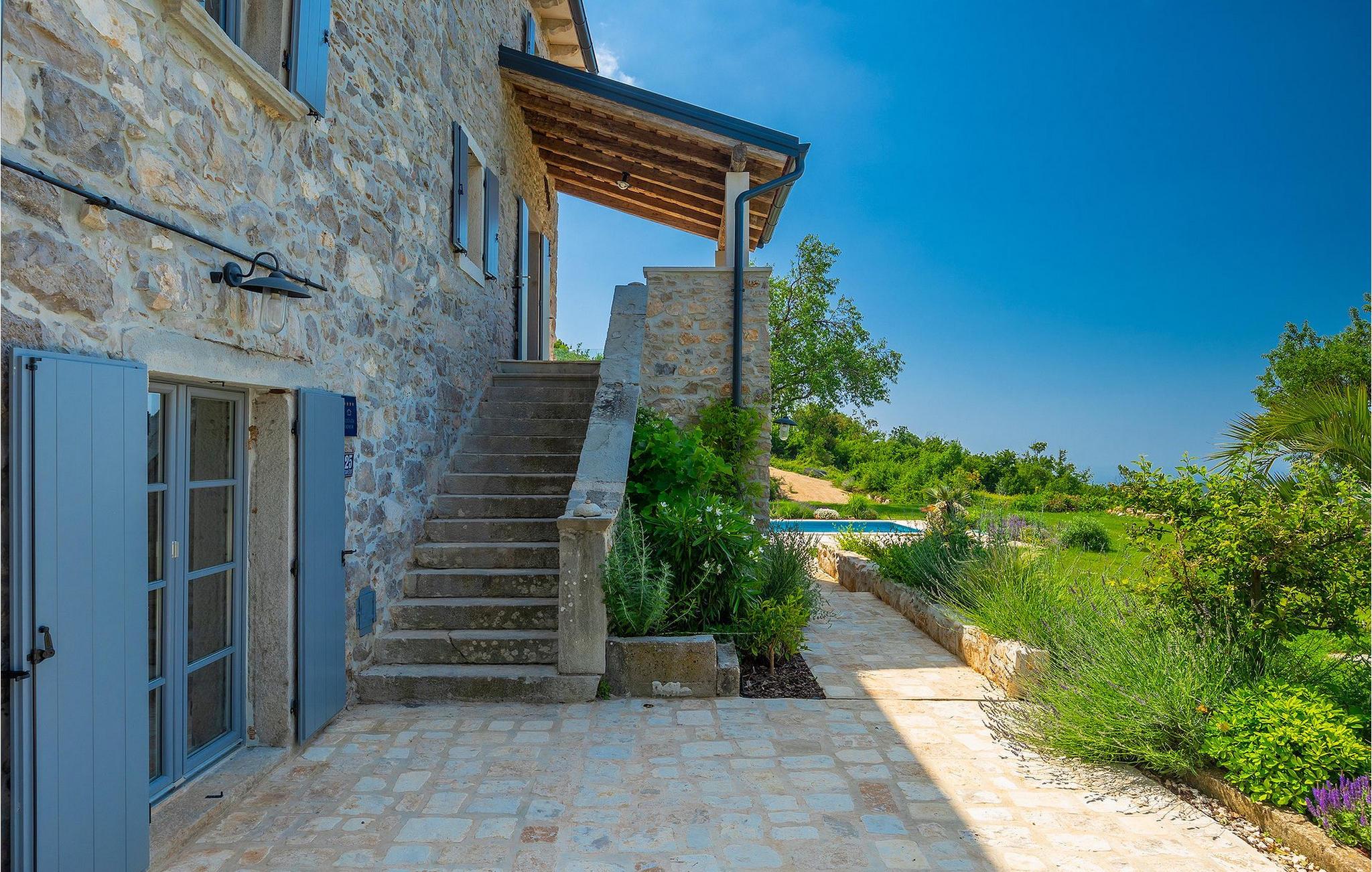 Drømmer du om en afslappende ferie i et traditionelt istrisk hus tæt på havet, vil Villa Azzurro inspirere dig. Villa Azzurro er et 210 år gammelt renoveret hus i Istrien. Denne traditionelle stenvilla er beliggende i et roligt område væk fra befolkede områder. Villaen er beliggende på en rummelig ejendom, der tilbyder dig fred og ro til at tilbringe en uforglemmelig ferie med en fortryllende havudsigt. Foran villaen finder du en skøn pool, hvor du kan køle af på varme sommerdage, mens du nyder en betagende udsigt over det fantastiske landskab og havet. Udenfor er der en overdækket terrasse med spisebord og grill.
