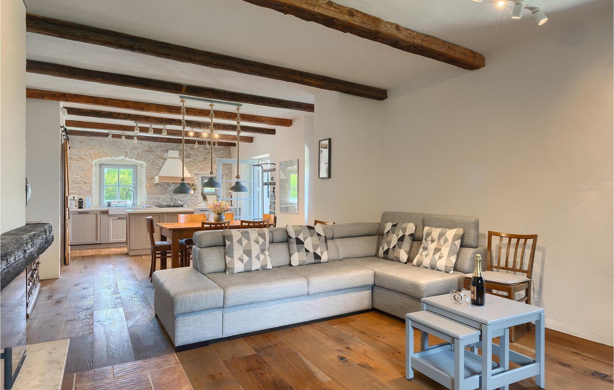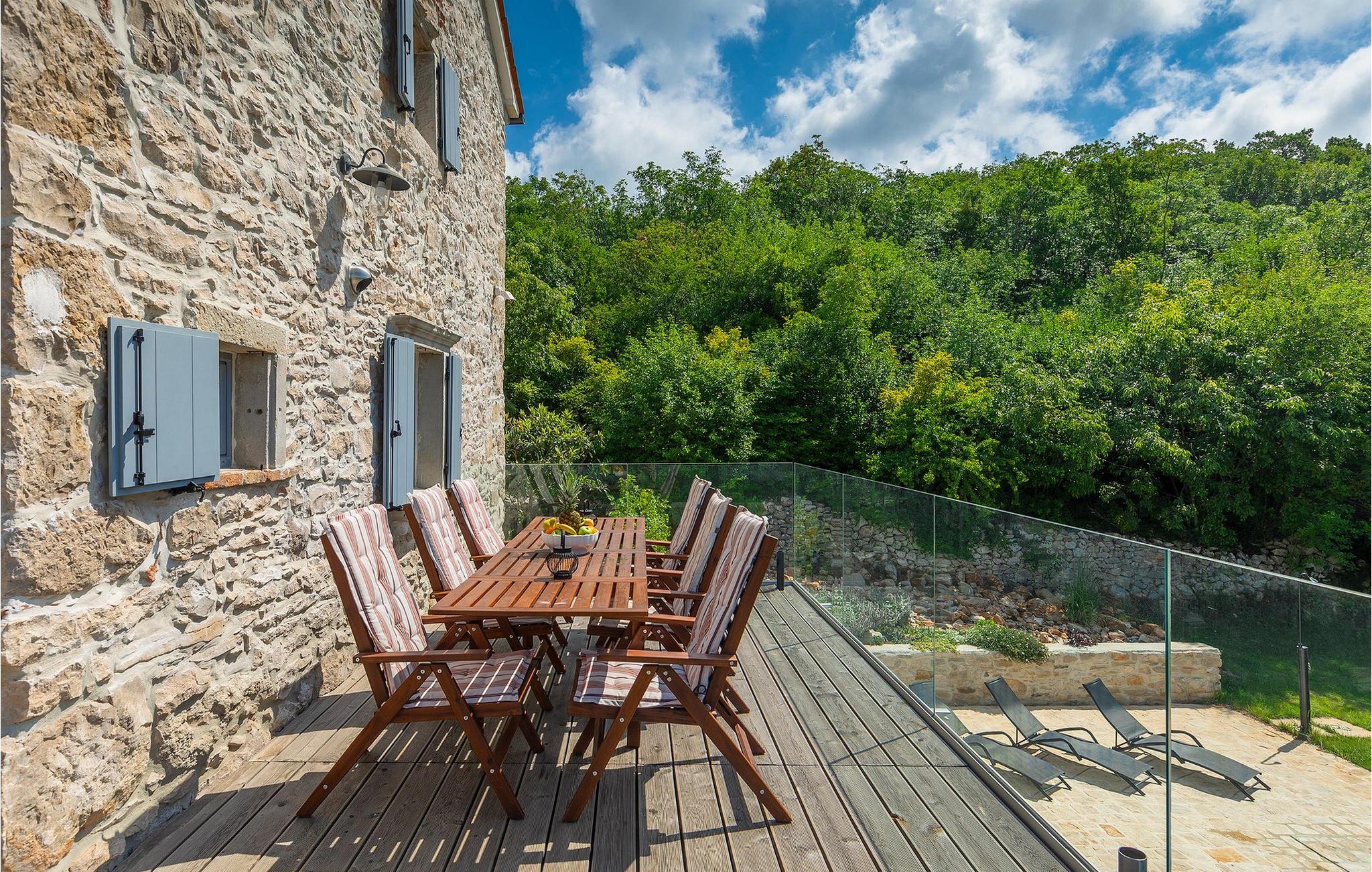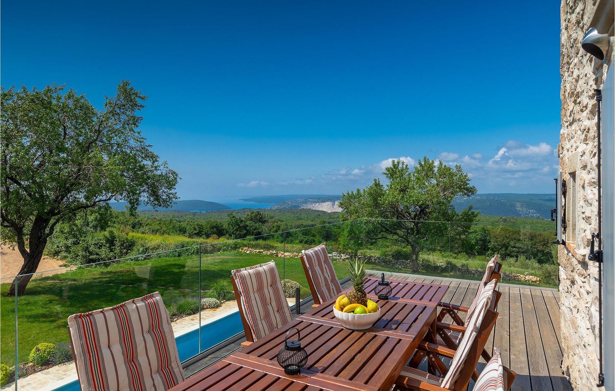Drømmer du om en afslappende ferie i et traditionelt istrisk hus tæt på havet, vil Villa Azzurro inspirere dig. Villa Azzurro er et 210 år gammelt renoveret hus i Istrien. Denne traditionelle stenvilla er beliggende i et roligt område væk fra befolkede områder. Villaen er beliggende på en rummelig ejendom, der tilbyder dig fred og ro til at tilbringe en uforglemmelig ferie med en fortryllende havudsigt. Foran villaen finder du en skøn pool, hvor du kan køle af på varme sommerdage, mens du nyder en betagende udsigt over det fantastiske landskab og havet. Udenfor er der en overdækket terrasse med spisebord og grill.