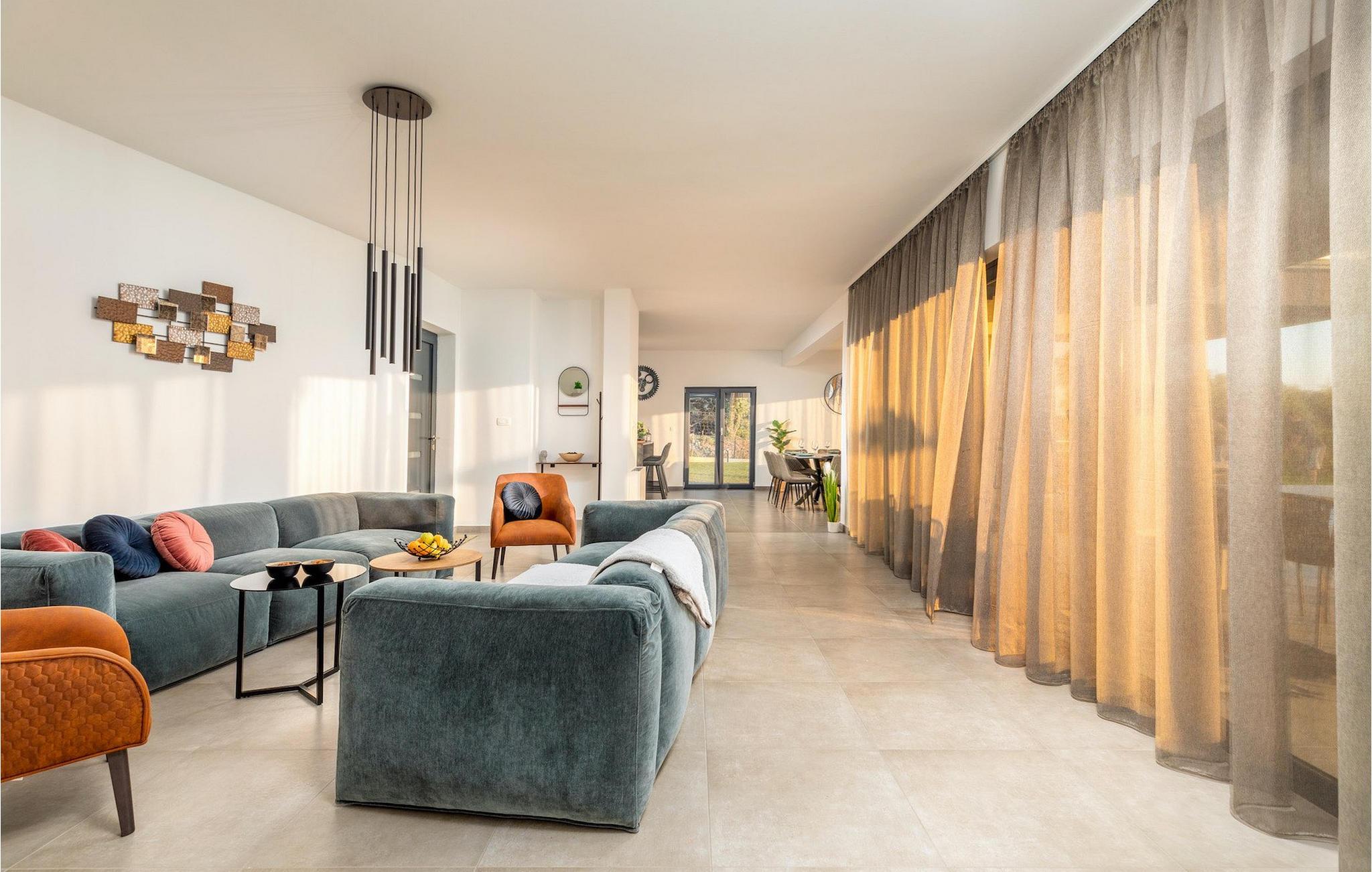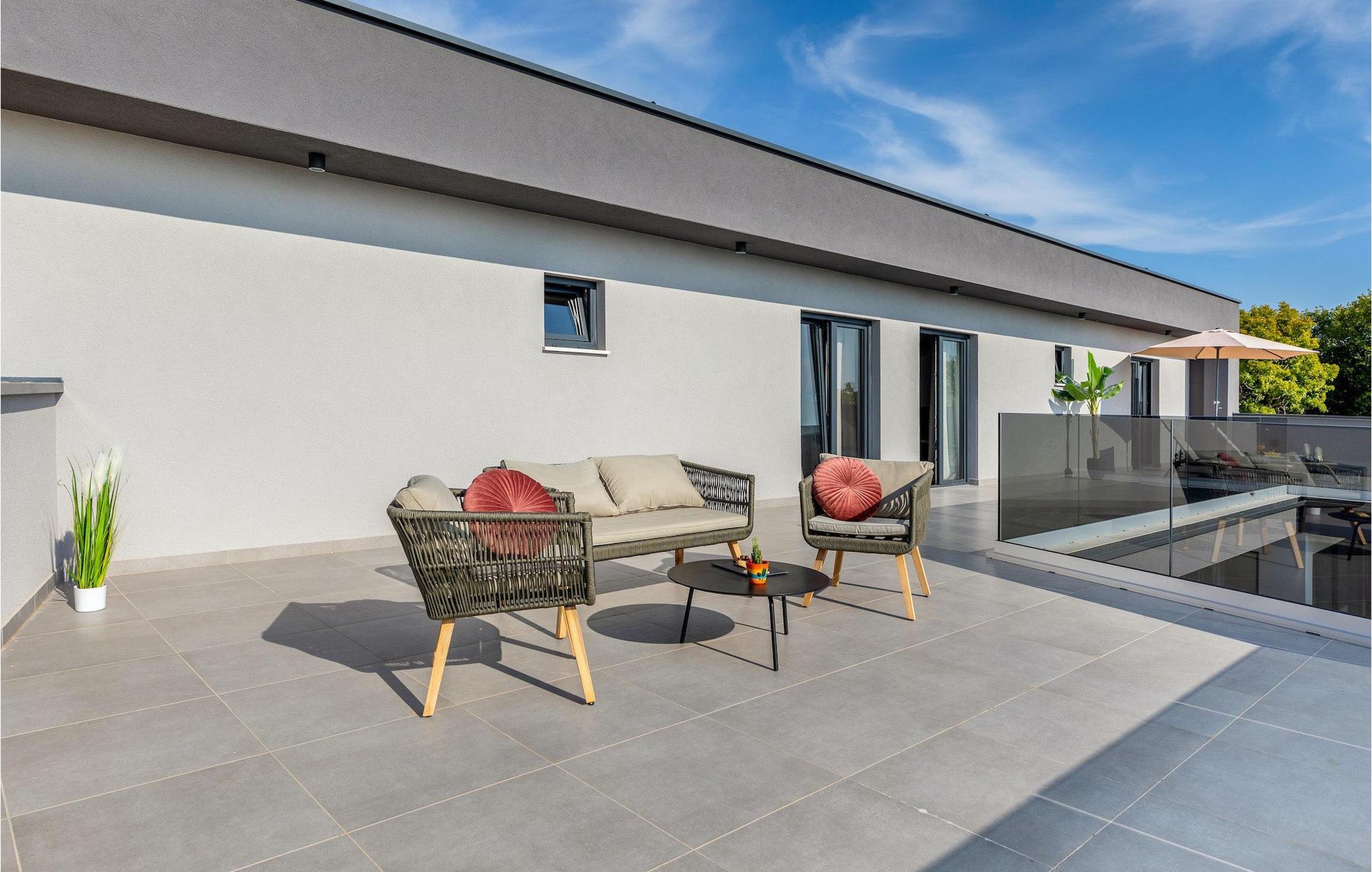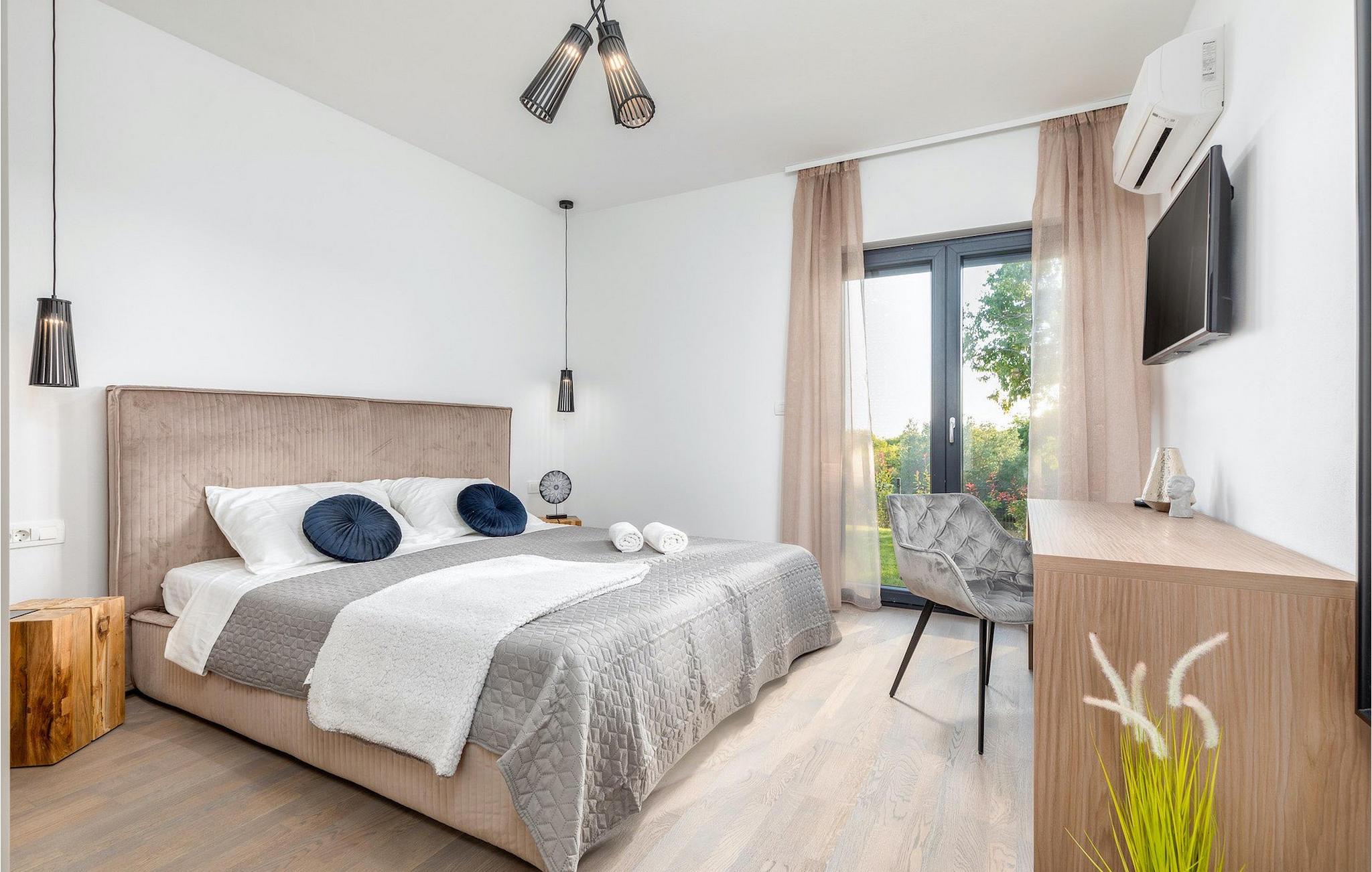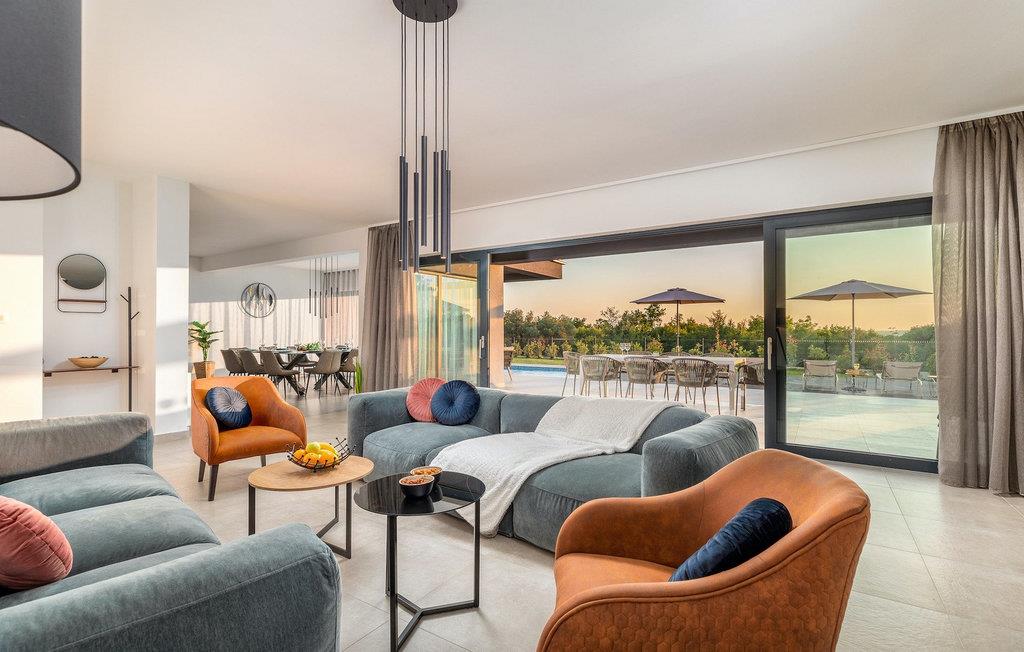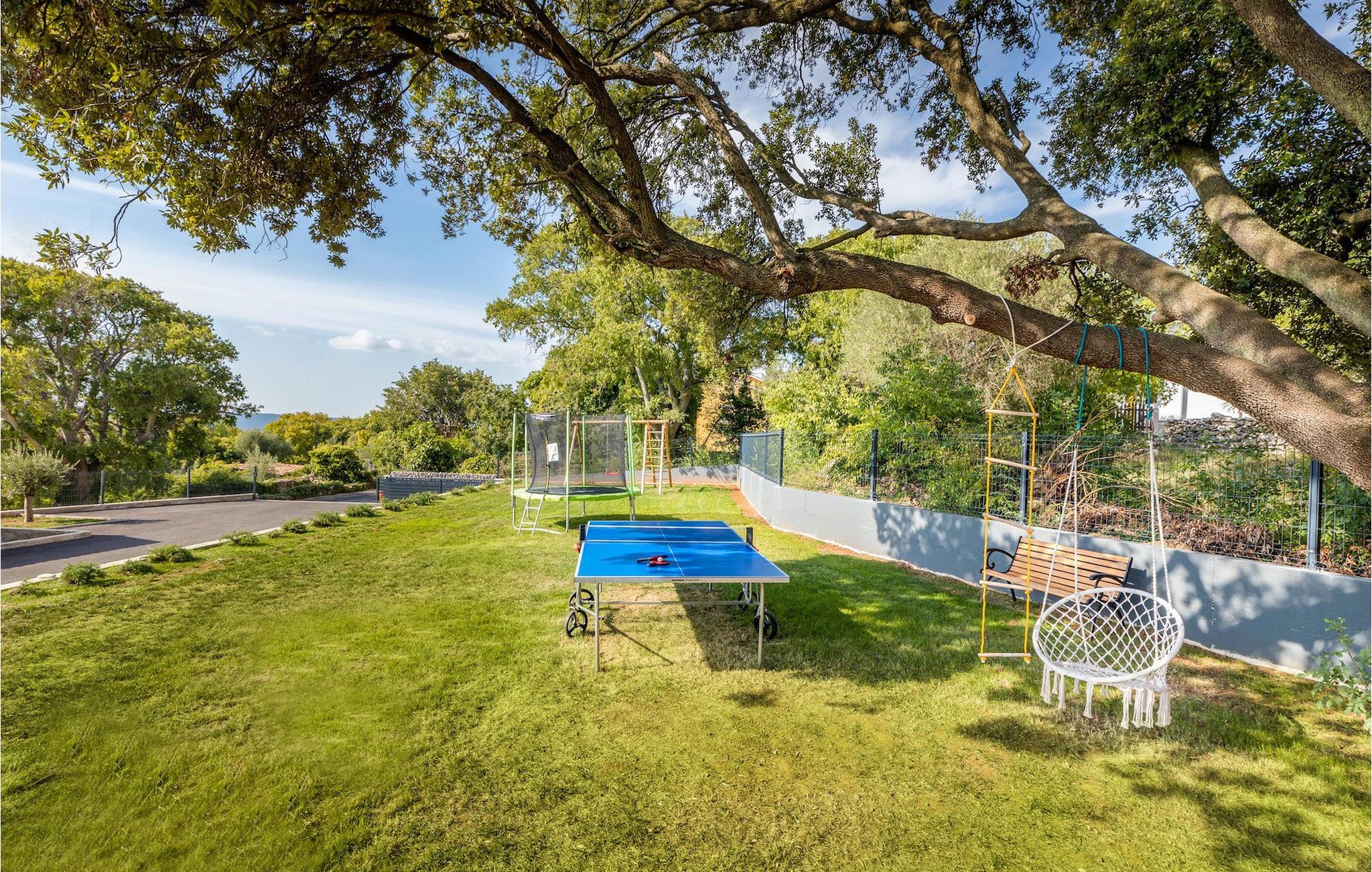 Villa Borealis ligger i en lille landsby i Istrien tæt på havet og tilbyder en afslappende ferie for hele familien. I den velholdte, helt indhegnede ejendom er der en stor privat udendørs pool. Slap af på liggestolene og nyd den vidunderlige udsigt over naturen. En volleyballbane, en legeplads, en trampolin og badminton er til rådighed. Den yderligere 35 m2 store ejendom, som også ligger på ejendommen, byder på en kulgrill og en spiseplads. Den 317 m2 store villa kan rumme op til 12 personer. Interiøret er indrettet med stil og smukke detaljer. I stueetagen er der et opholdsområde med åbent koncept med spise- og kogeplads. Fra stuen er der udgang til terrassen, som er udstyret med havemøbler. Dette er det perfekte sted at nyde din morgenkaffe. I stueetagen er der 3 komfortable soveværelser. På første sal er der yderligere 3 soveværelser og en stor terrasse. Alle værelser har aircondition og har dobbeltseng, tv og eget badeværelse. Der er heller ingen grund til at bekymre sig om yderligere indhold, for for sportsentusiaster er der to stationære cykler, samt bordtennis til gruppeaktiviteter.