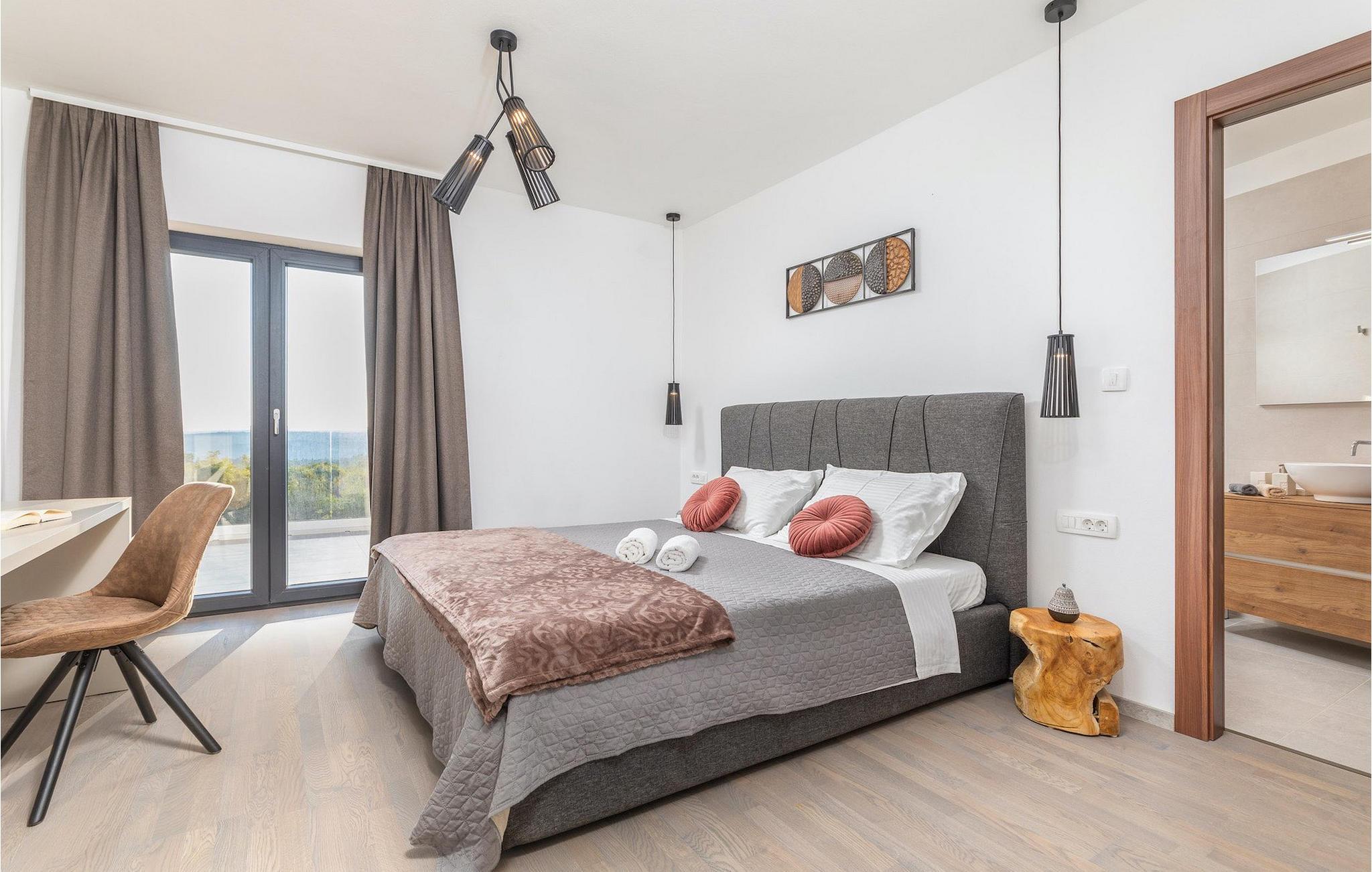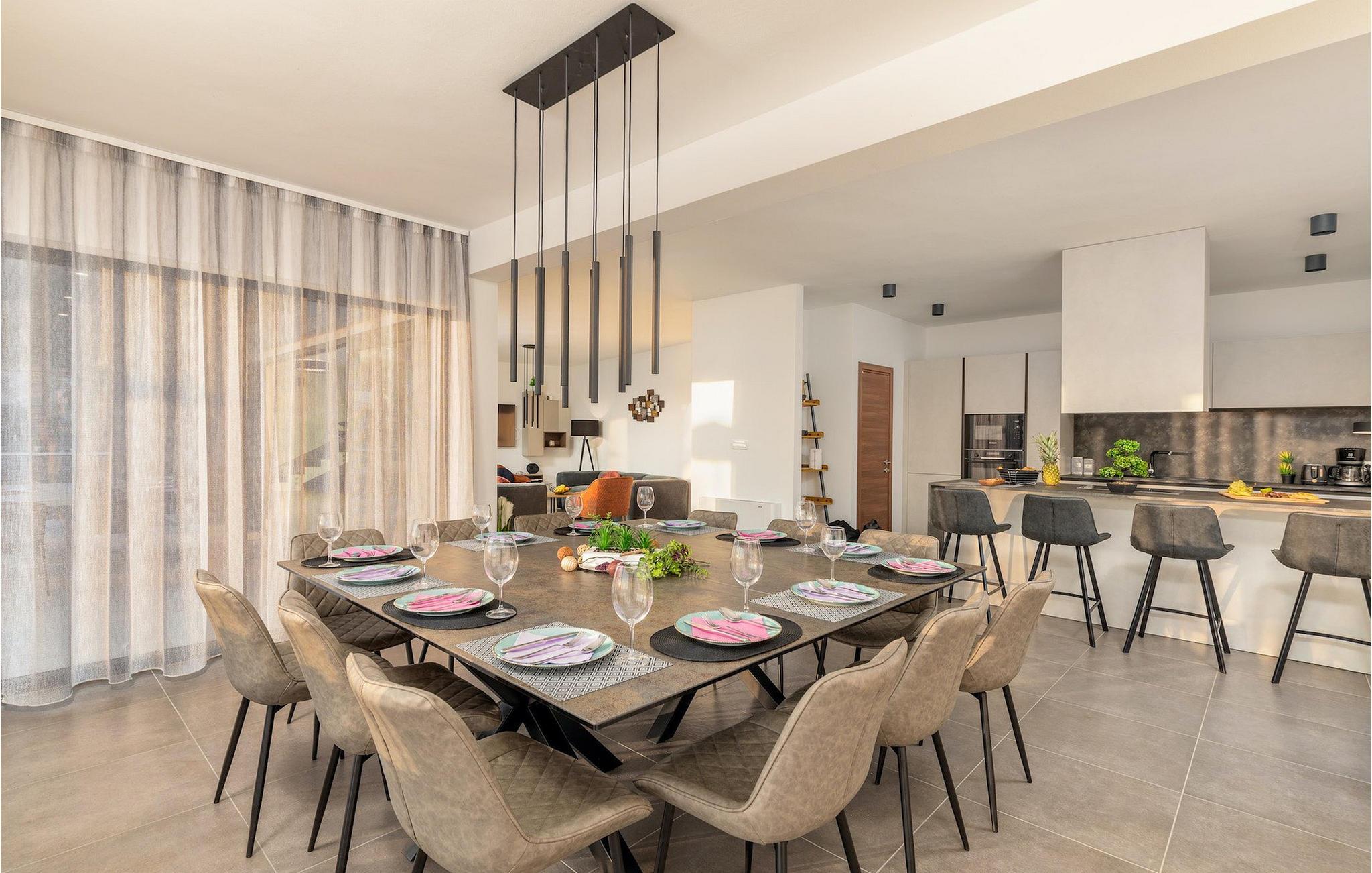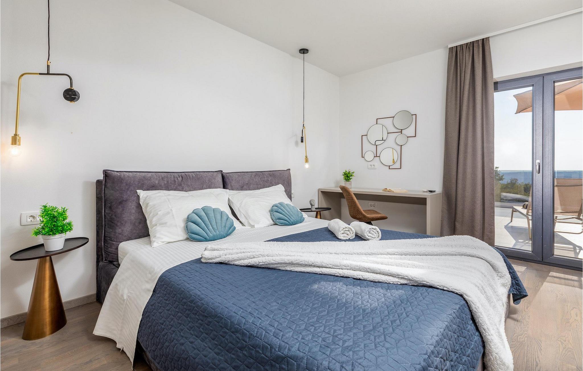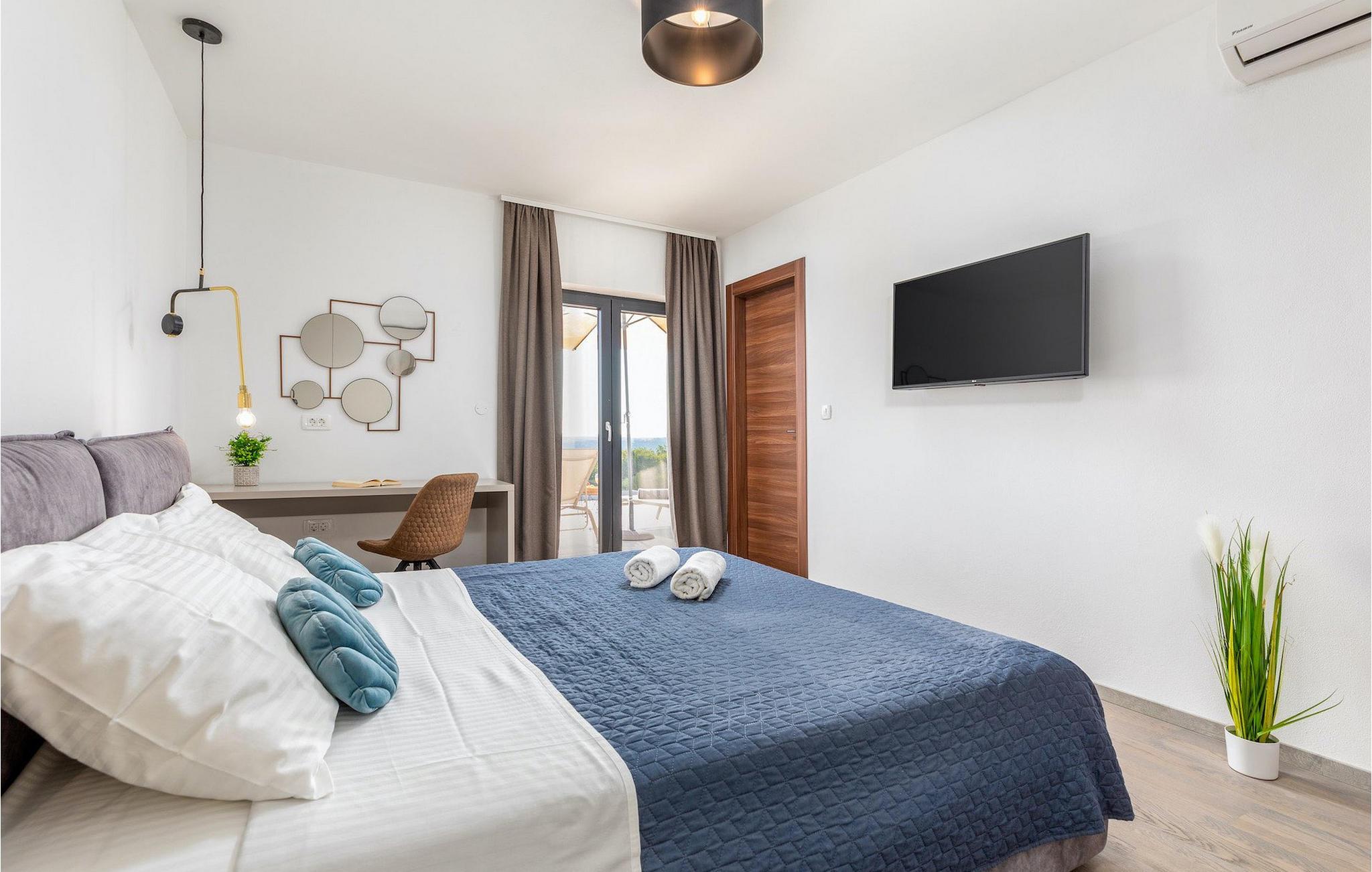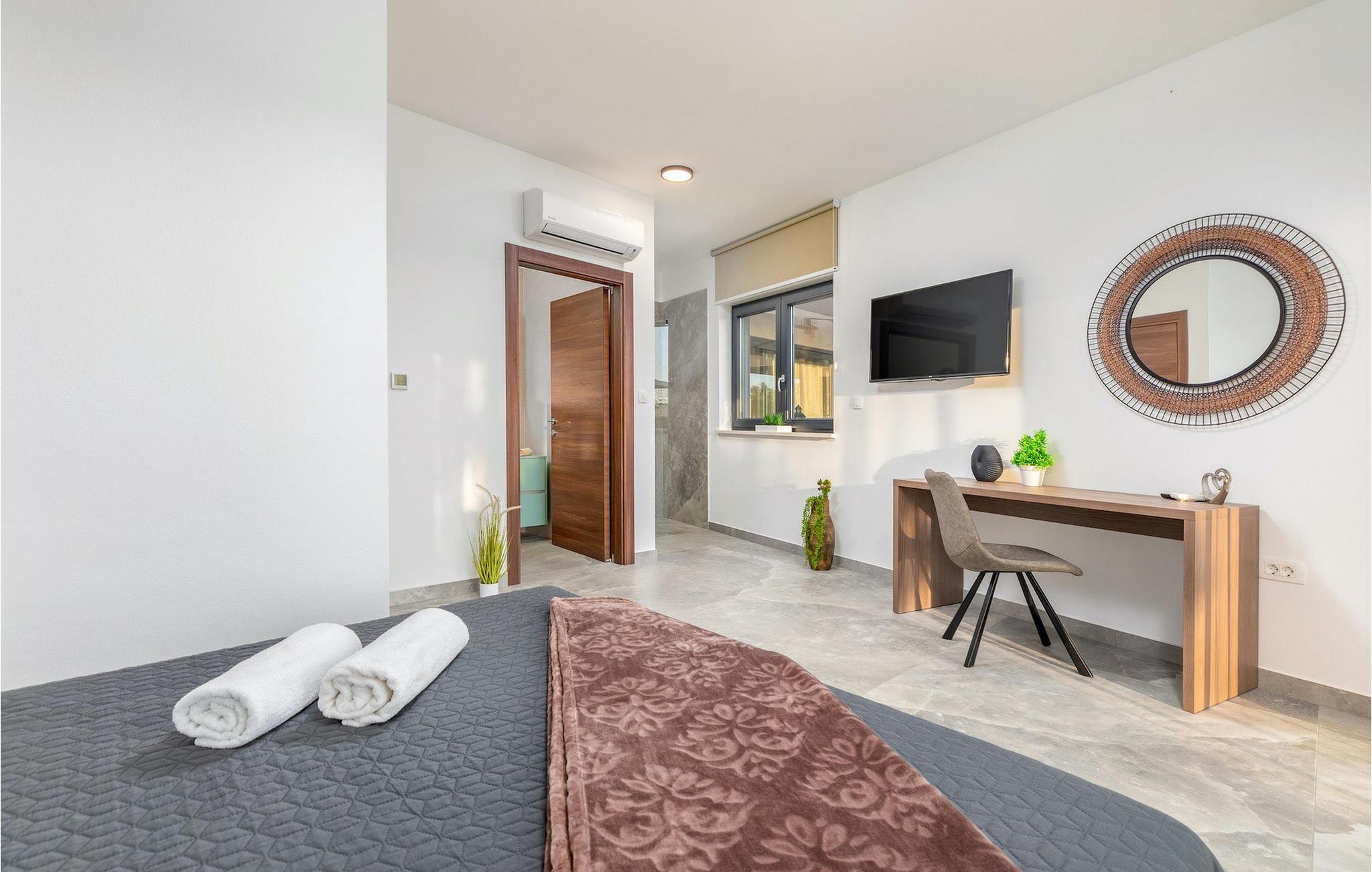 Villa Borealis ligger i en lille landsby i Istrien tæt på havet og tilbyder en afslappende ferie for hele familien. I den velholdte, helt indhegnede ejendom er der en stor privat udendørs pool. Slap af på liggestolene og nyd den vidunderlige udsigt over naturen. En volleyballbane, en legeplads, en trampolin og badminton er til rådighed. Den yderligere 35 m2 store ejendom, som også ligger på ejendommen, byder på en kulgrill og en spiseplads. Den 317 m2 store villa kan rumme op til 12 personer. Interiøret er indrettet med stil og smukke detaljer. I stueetagen er der et opholdsområde med åbent koncept med spise- og kogeplads. Fra stuen er der udgang til terrassen, som er udstyret med havemøbler. Dette er det perfekte sted at nyde din morgenkaffe. I stueetagen er der 3 komfortable soveværelser. På første sal er der yderligere 3 soveværelser og en stor terrasse. Alle værelser har aircondition og har dobbeltseng, tv og eget badeværelse. Der er heller ingen grund til at bekymre sig om yderligere indhold, for for sportsentusiaster er der to stationære cykler, samt bordtennis til gruppeaktiviteter.