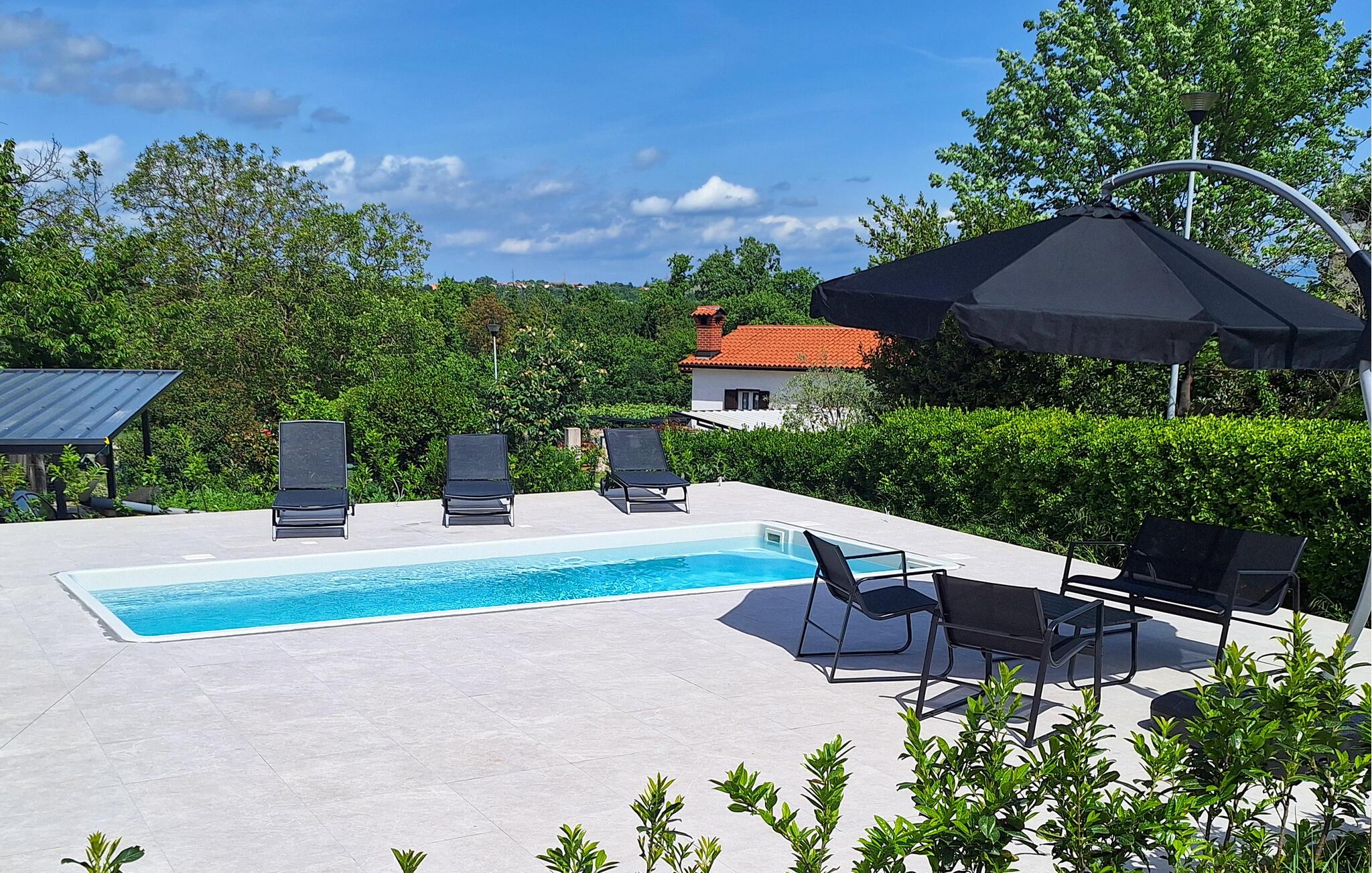 Denne skønne ferielejlighed i stueetagen i et lejlighedskompleks byder velkommen i et roligt område med private huse og feriehuse. Det er det ideelle udgangspunkt for jeres aktiviteter og udflugter på halvøen Istrien. Spis en lækker morgenmad om morgenen og styrk jer til jeres aktiviteter for den kommende dag.