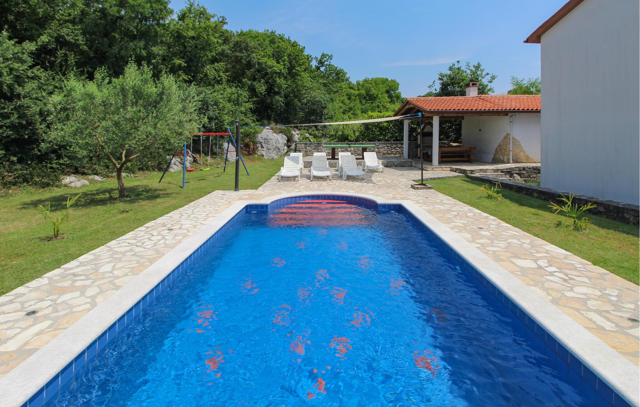 Den rummelige have med pool inviterer jer til at slappe af og nyde livet. Talrige legeudstyr gør opholdet sjovere for jeres børn, mens I slapper af på solsengene. Til hyggelige aftener kan I bruge det hyggelige tavernerum med åben pejs og afslutte dagen i en afslappet atmosfære.