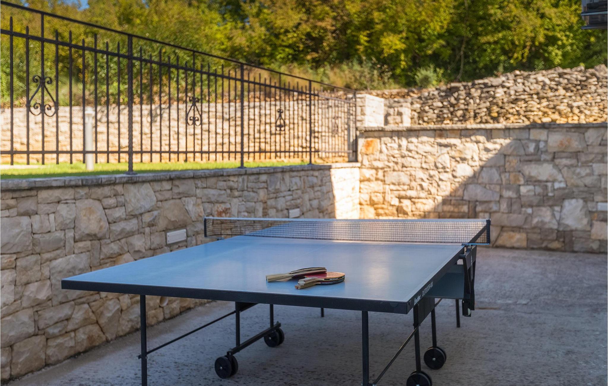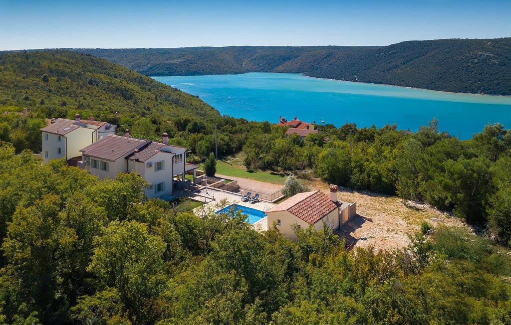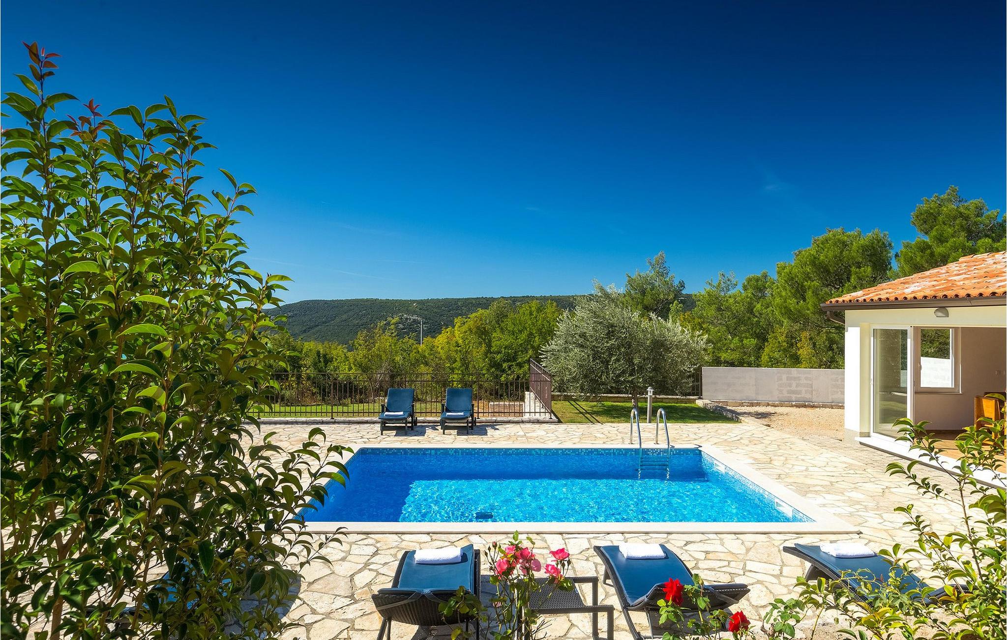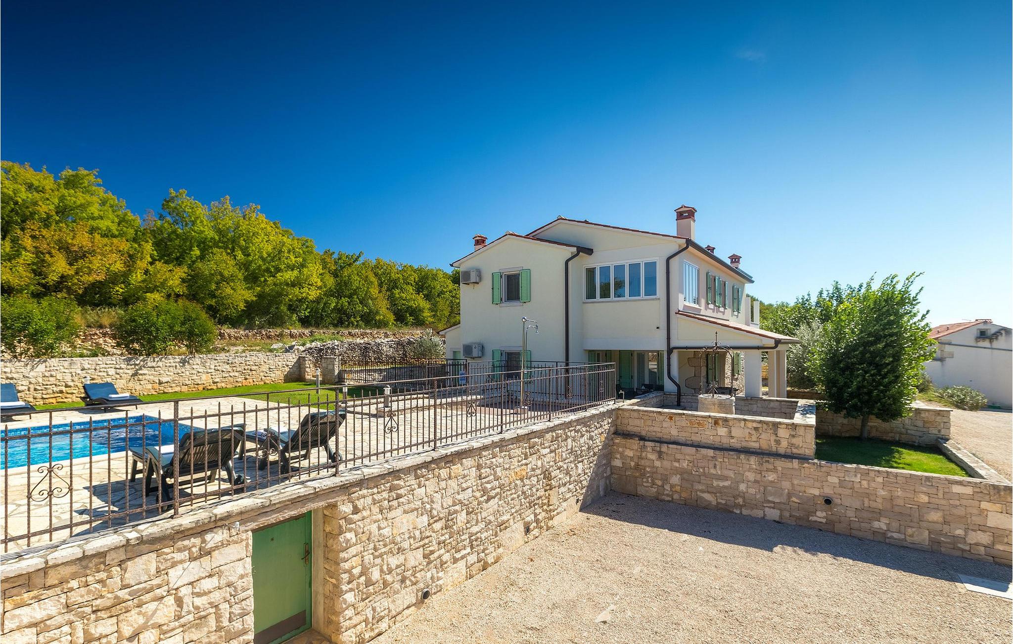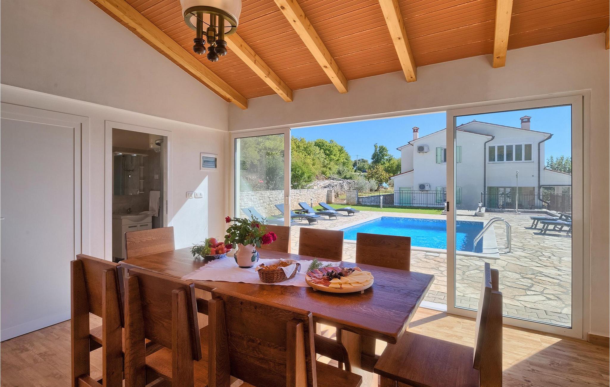 Villaen kan rumme op til 8 gæster og har to soveværelser og et badeværelse på hver etage. Der er i alt to fuldt udstyrede køkkener, hver med spiseplads til 6 og to stuer. Den øverste etage har en hyggelig lukket terrasse med en smuk se udsigt. Brug din ferie til at opdage denne del af Istrien, men også til at nyde et måltid tilberedt på grillen foran villaen, til at slappe af under parasollerne ved siden af poolen eller have det sjovt med bordtennis og bordfodbold.Trget er en lille fiskerlandsby, beliggende nær Labin og Rabac. Det er ikke overfyldt som større kystturistiske hotspots, men har stadig alt, hvad du måske har brug for - en restaurant, en bar og et supermarked er tæt nok på. Du har en række forskellige strande at vælge imellem i det omkringliggende område. De nærmeste er sten- og stenstrande, og kun en kort køretur væk ligger den berømte strand Rabac. Det fantastiske landskab giver dig mulighed for at nyde en mere aktiv form for ferie - sejlads, cykelture eller vandreture. Pula, den største by i Istrien, ligger 35 km væk og er også en fantastisk mulighed for en dagstur.