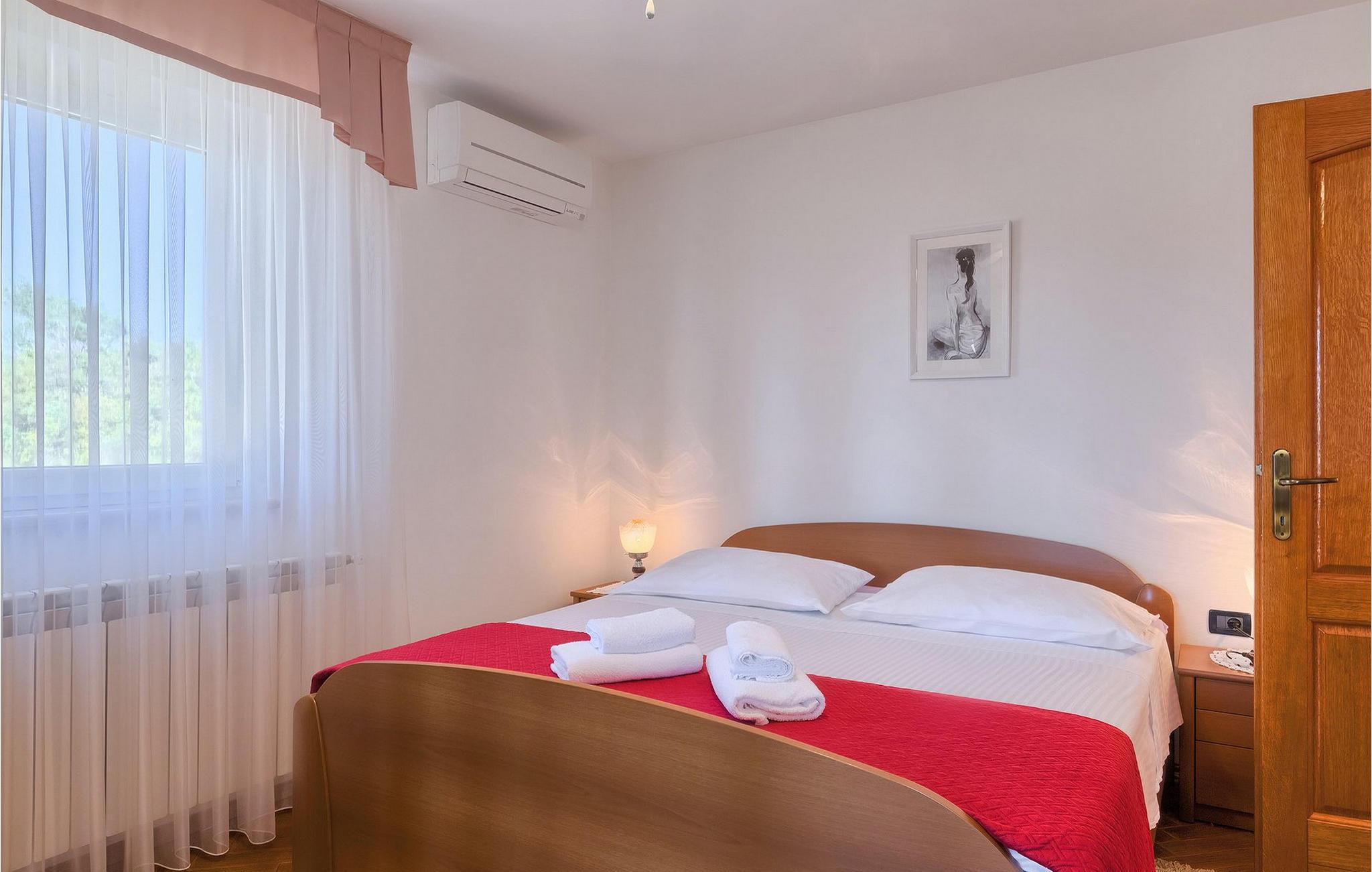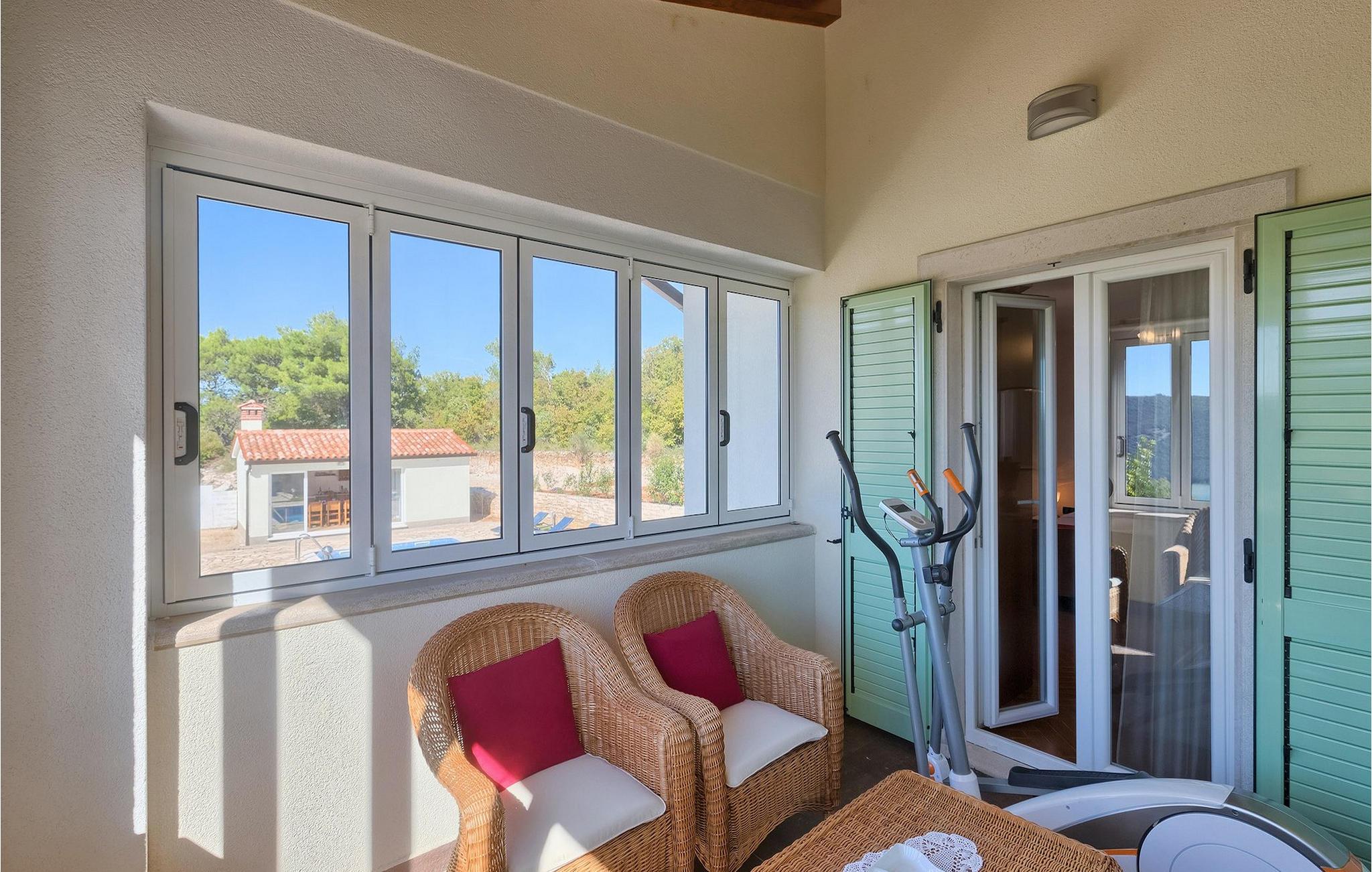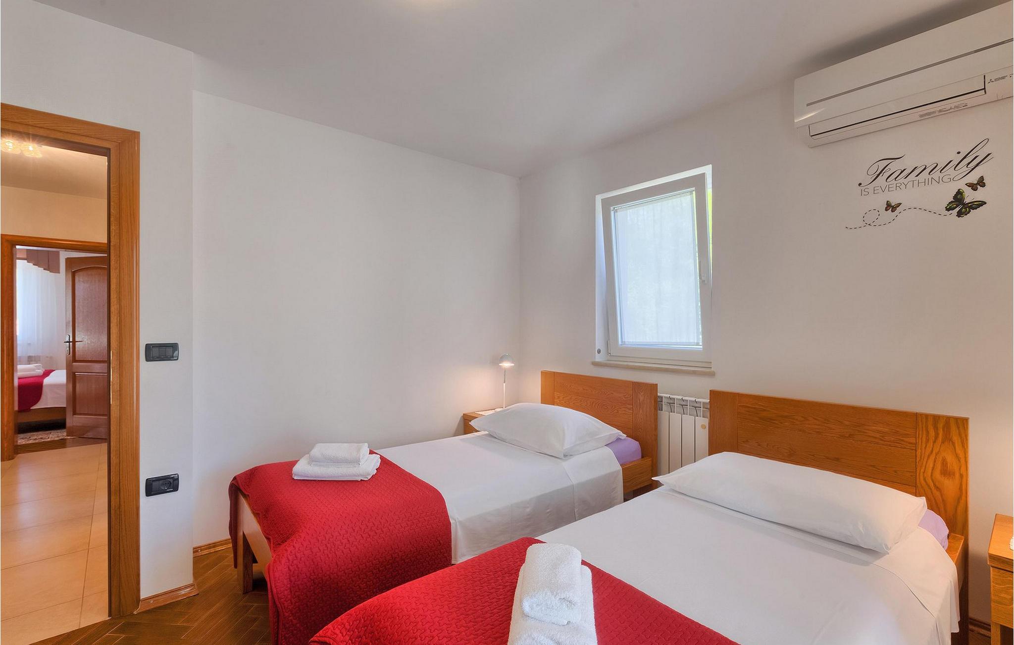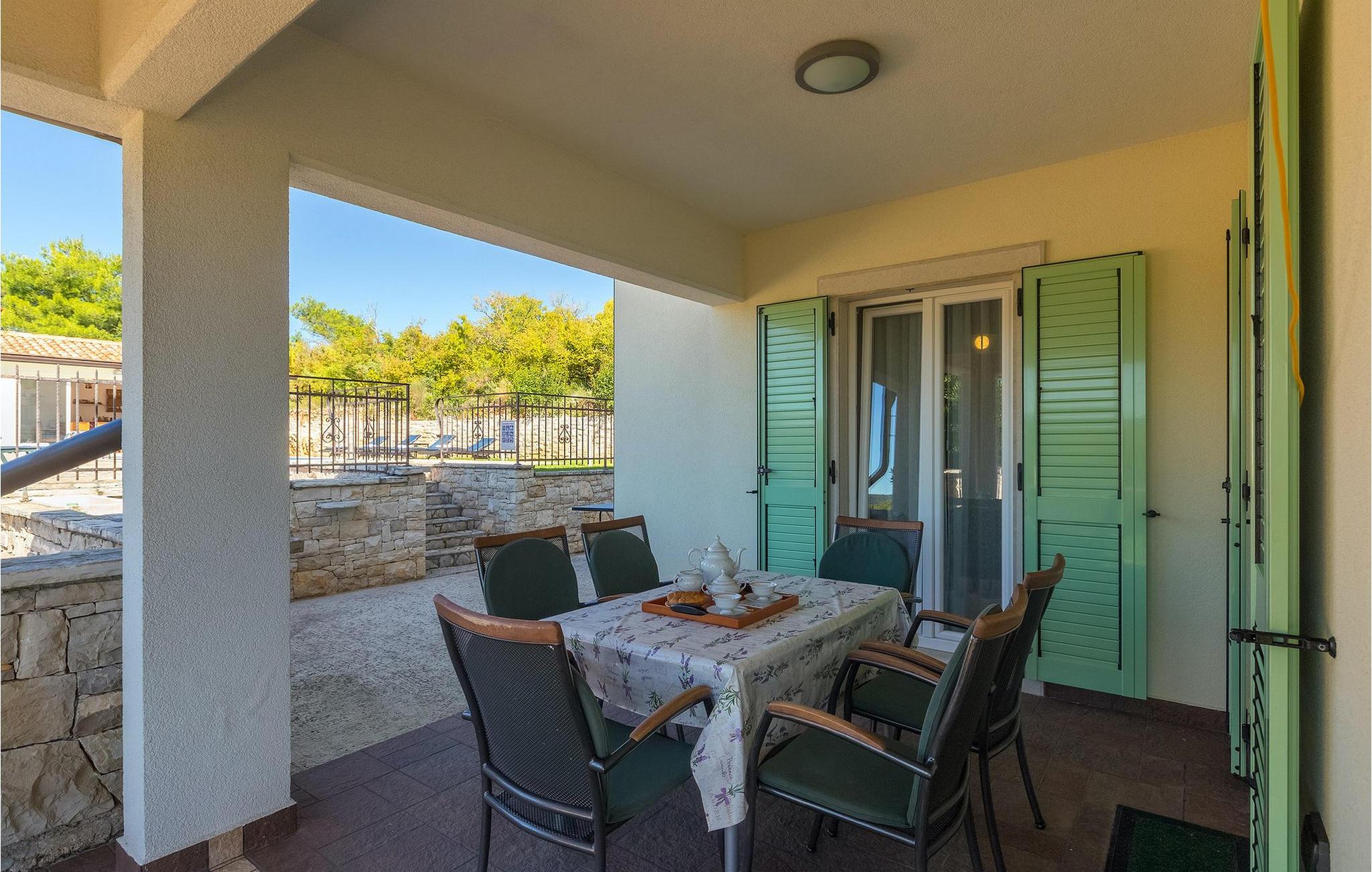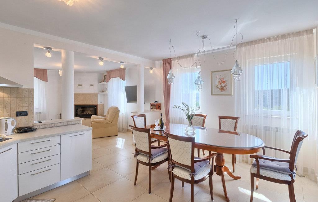 Villaen kan rumme op til 8 gæster og har to soveværelser og et badeværelse på hver etage. Der er i alt to fuldt udstyrede køkkener, hver med spiseplads til 6 og to stuer. Den øverste etage har en hyggelig lukket terrasse med en smuk se udsigt. Brug din ferie til at opdage denne del af Istrien, men også til at nyde et måltid tilberedt på grillen foran villaen, til at slappe af under parasollerne ved siden af poolen eller have det sjovt med bordtennis og bordfodbold.Trget er en lille fiskerlandsby, beliggende nær Labin og Rabac. Det er ikke overfyldt som større kystturistiske hotspots, men har stadig alt, hvad du måske har brug for - en restaurant, en bar og et supermarked er tæt nok på. Du har en række forskellige strande at vælge imellem i det omkringliggende område. De nærmeste er sten- og stenstrande, og kun en kort køretur væk ligger den berømte strand Rabac. Det fantastiske landskab giver dig mulighed for at nyde en mere aktiv form for ferie - sejlads, cykelture eller vandreture. Pula, den største by i Istrien, ligger 35 km væk og er også en fantastisk mulighed for en dagstur.
