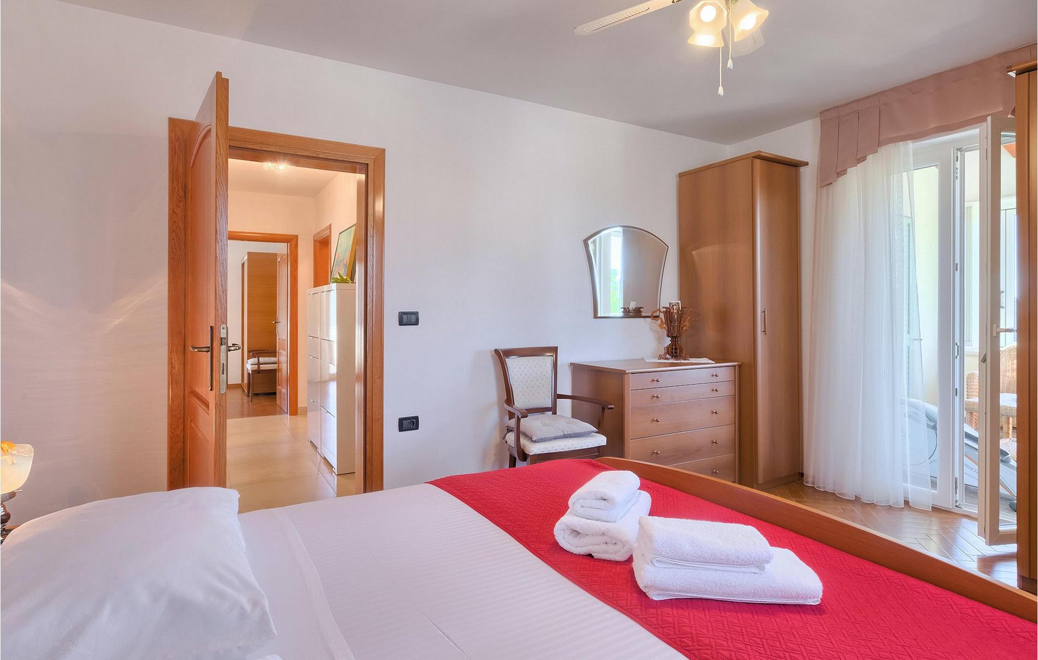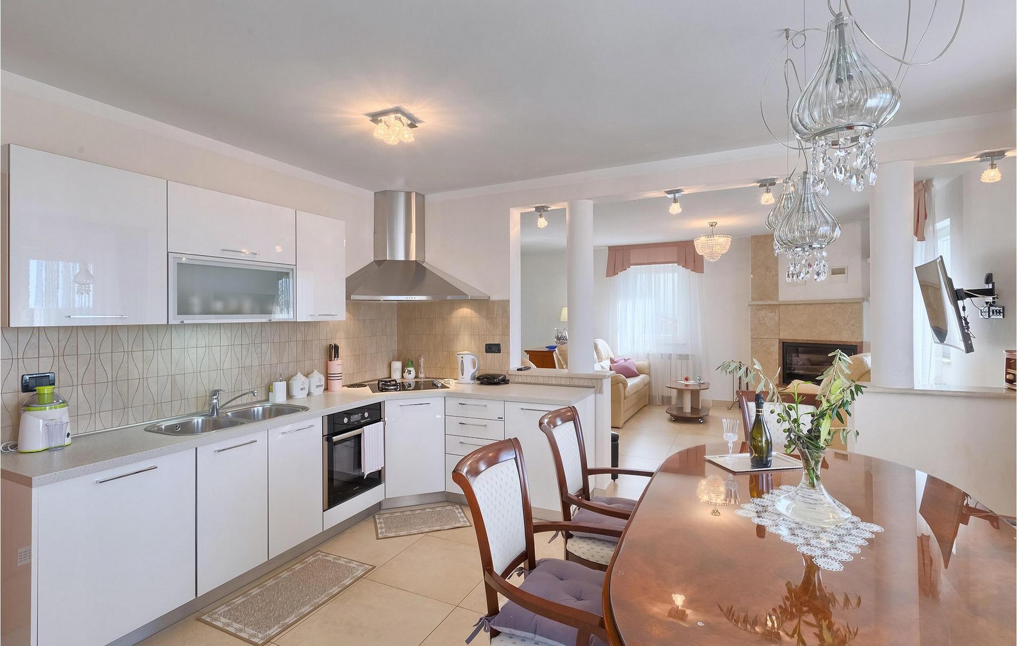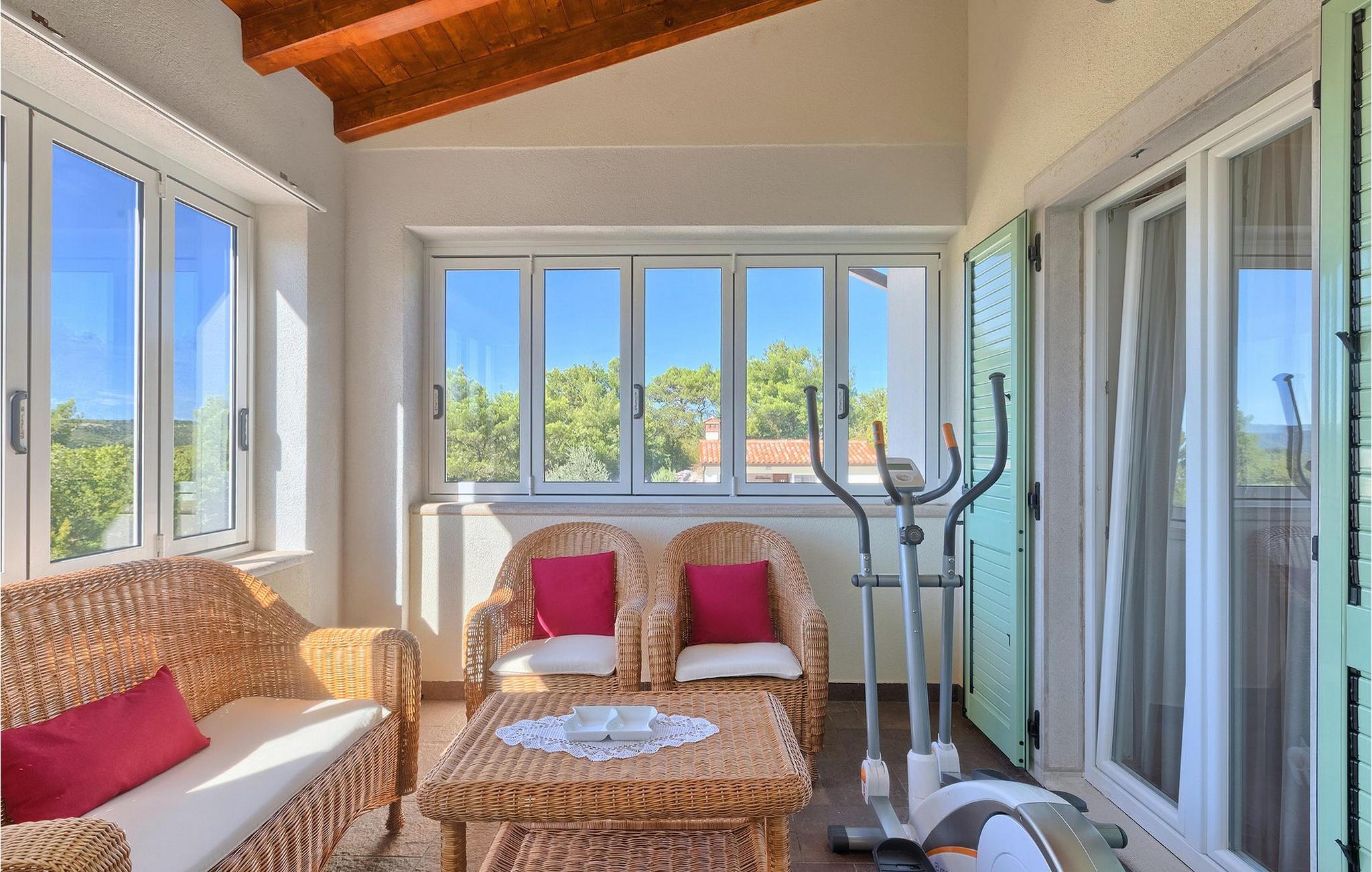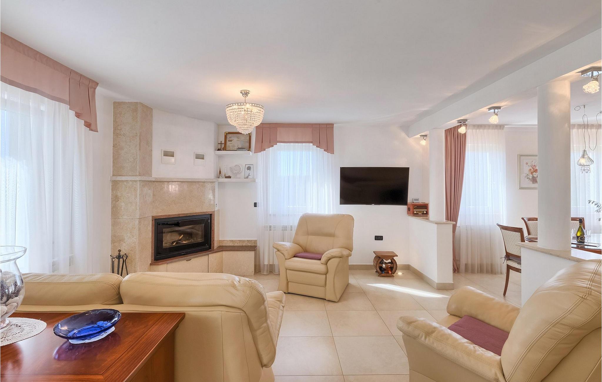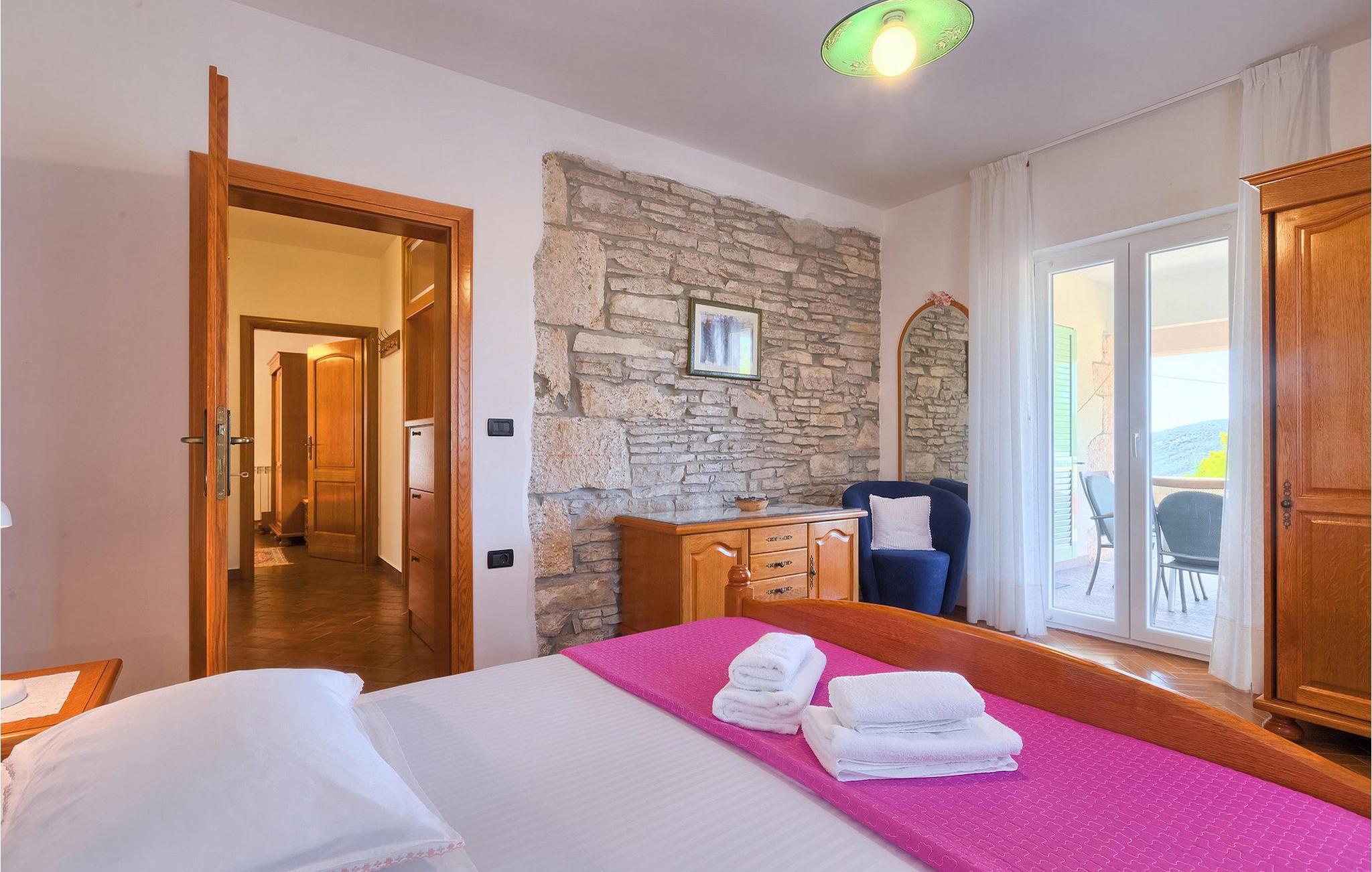 Villaen kan rumme op til 8 gæster og har to soveværelser og et badeværelse på hver etage. Der er i alt to fuldt udstyrede køkkener, hver med spiseplads til 6 og to stuer. Den øverste etage har en hyggelig lukket terrasse med en smuk se udsigt. Brug din ferie til at opdage denne del af Istrien, men også til at nyde et måltid tilberedt på grillen foran villaen, til at slappe af under parasollerne ved siden af poolen eller have det sjovt med bordtennis og bordfodbold.Trget er en lille fiskerlandsby, beliggende nær Labin og Rabac. Det er ikke overfyldt som større kystturistiske hotspots, men har stadig alt, hvad du måske har brug for - en restaurant, en bar og et supermarked er tæt nok på. Du har en række forskellige strande at vælge imellem i det omkringliggende område. De nærmeste er sten- og stenstrande, og kun en kort køretur væk ligger den berømte strand Rabac. Det fantastiske landskab giver dig mulighed for at nyde en mere aktiv form for ferie - sejlads, cykelture eller vandreture. Pula, den største by i Istrien, ligger 35 km væk og er også en fantastisk mulighed for en dagstur.