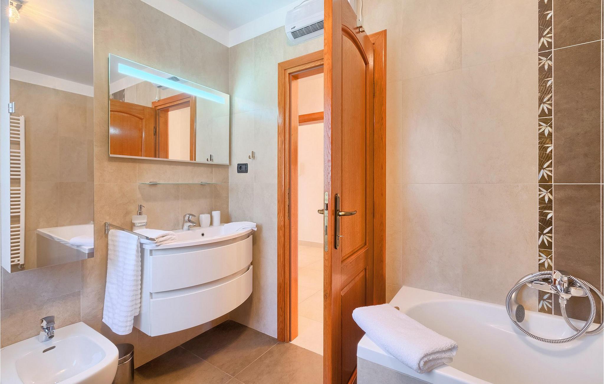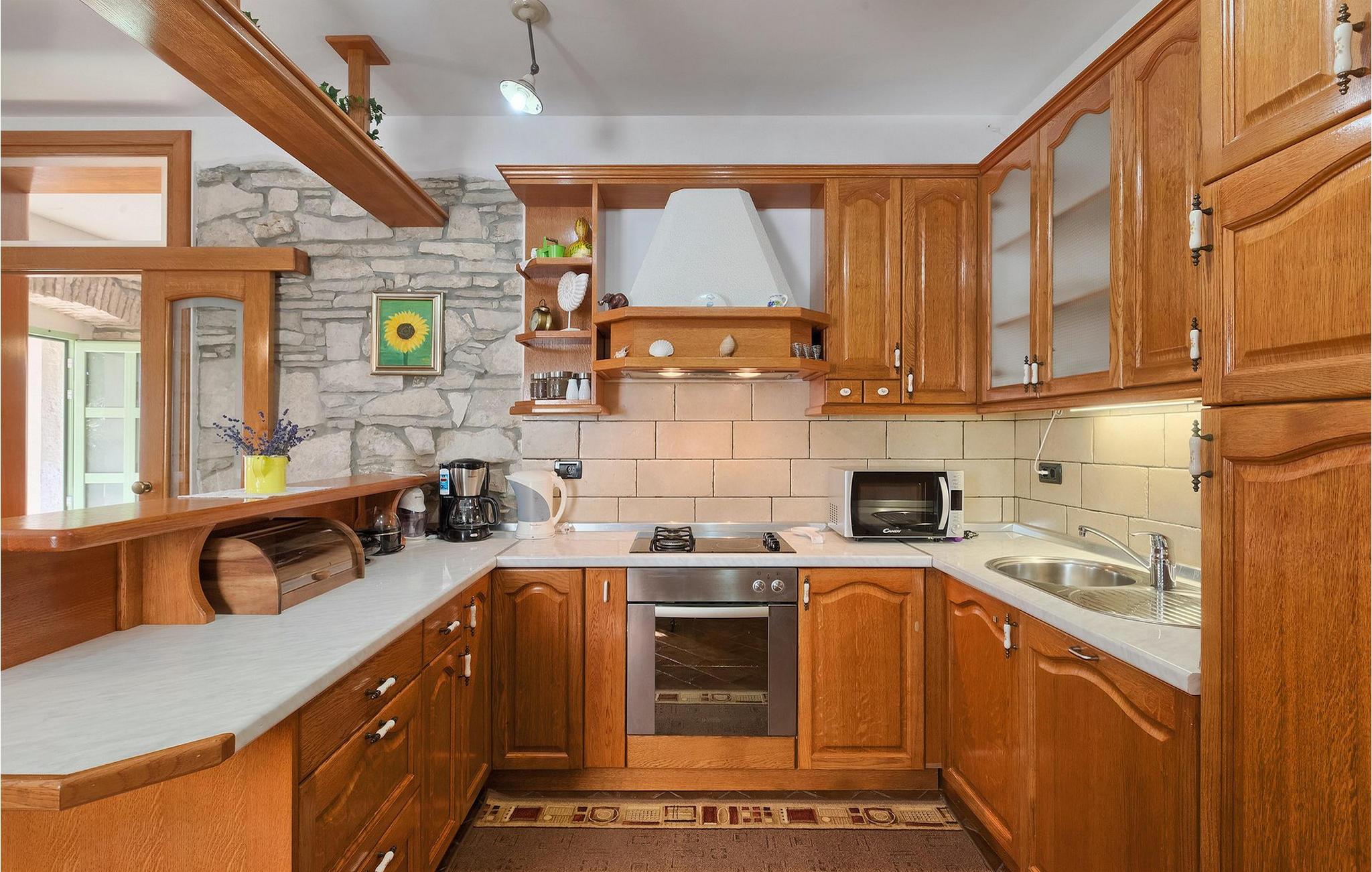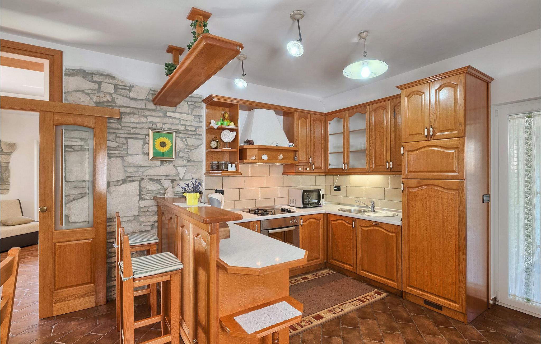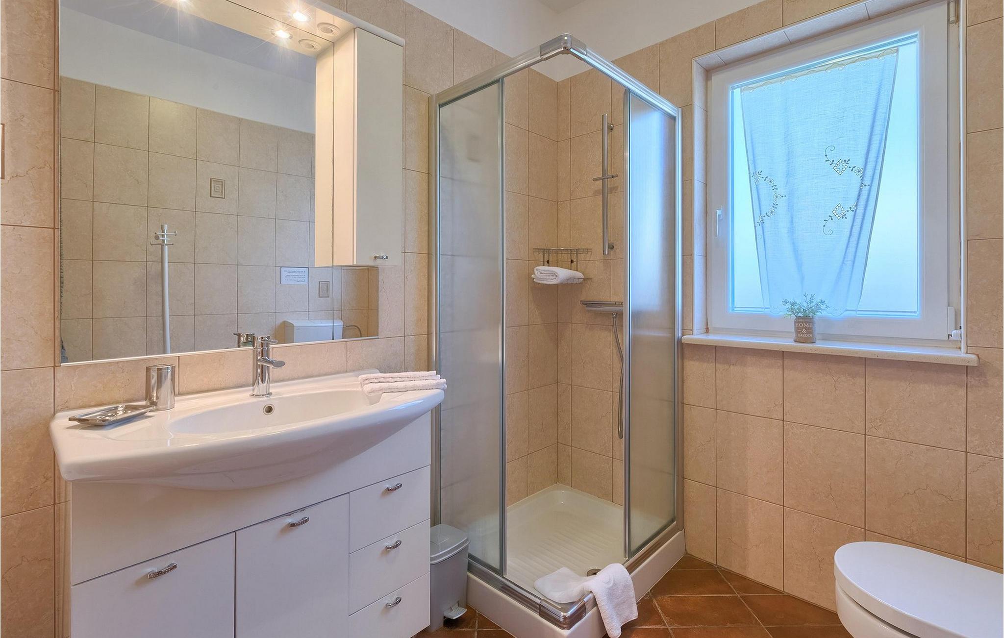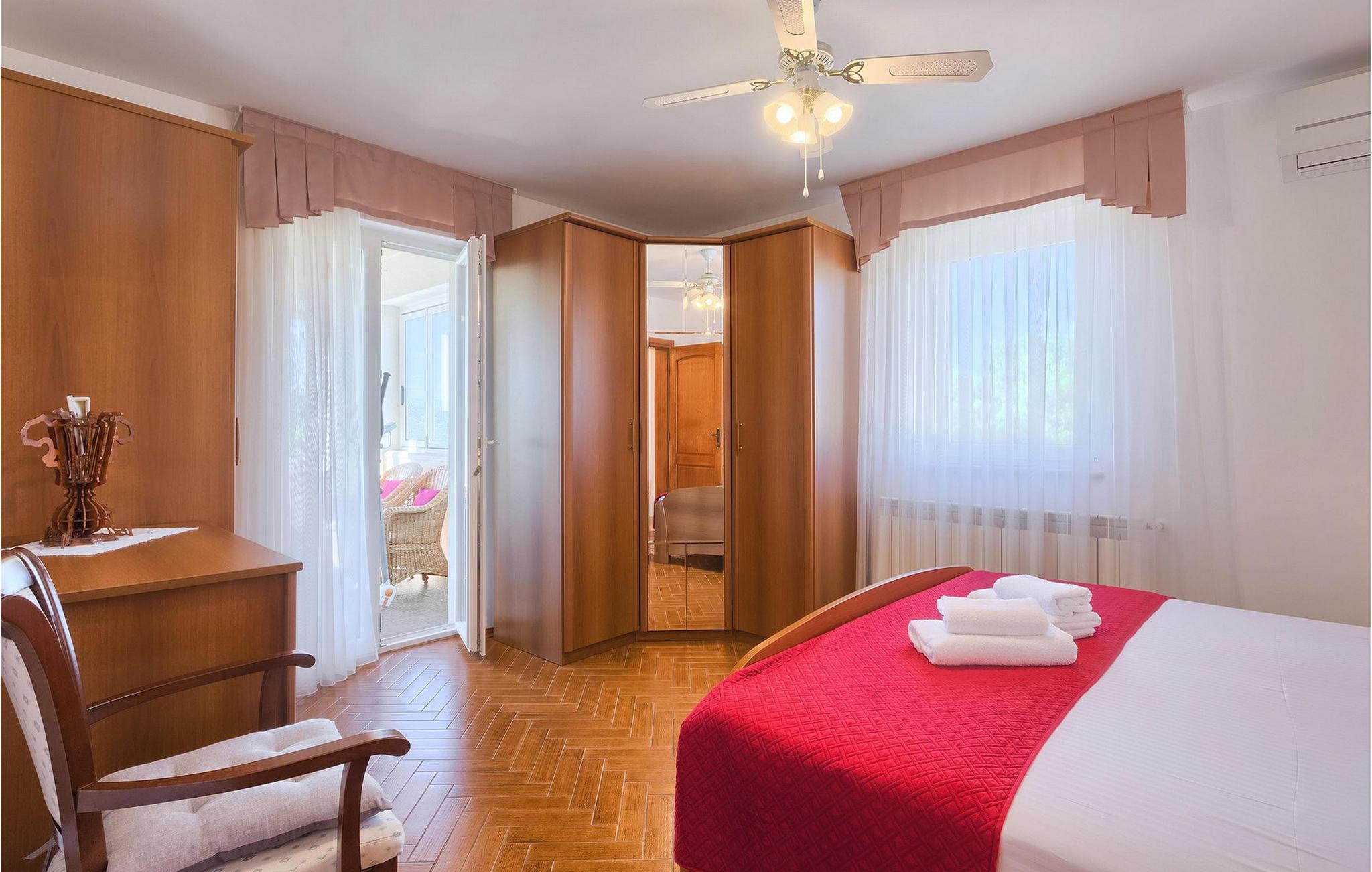 Villaen kan rumme op til 8 gæster og har to soveværelser og et badeværelse på hver etage. Der er i alt to fuldt udstyrede køkkener, hver med spiseplads til 6 og to stuer. Den øverste etage har en hyggelig lukket terrasse med en smuk se udsigt. Brug din ferie til at opdage denne del af Istrien, men også til at nyde et måltid tilberedt på grillen foran villaen, til at slappe af under parasollerne ved siden af poolen eller have det sjovt med bordtennis og bordfodbold.Trget er en lille fiskerlandsby, beliggende nær Labin og Rabac. Det er ikke overfyldt som større kystturistiske hotspots, men har stadig alt, hvad du måske har brug for - en restaurant, en bar og et supermarked er tæt nok på. Du har en række forskellige strande at vælge imellem i det omkringliggende område. De nærmeste er sten- og stenstrande, og kun en kort køretur væk ligger den berømte strand Rabac. Det fantastiske landskab giver dig mulighed for at nyde en mere aktiv form for ferie - sejlads, cykelture eller vandreture. Pula, den største by i Istrien, ligger 35 km væk og er også en fantastisk mulighed for en dagstur.