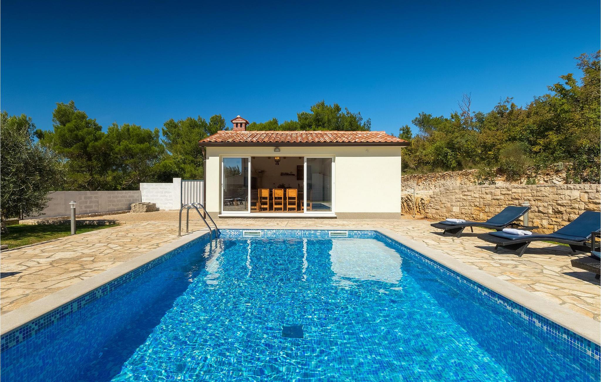 Denne smukke villa har en privat pool og en rummelig have og er beliggende i et lille istrisk sted kaldet Trget. De fredelige omgivelser og de mange nærliggende strande gør Villa Dina perfekt til en familieferie. Villaen består af to separate lejligheder, lejet sammen, hvilket gør den til en ideel villa for store familier eller en gruppe venner med varierende behov for privatliv.