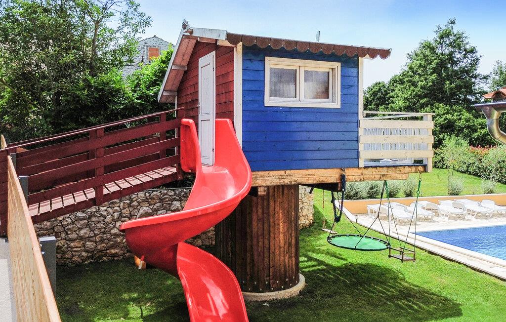 Tag familien under armen og lad turen gå til Istrien i Kroatien, hvor dette indbydende og komfortable hus bliver jeres base. Indretningen fremtræder lyst og attraktivt, og her kan I se frem til mange hyggestunder med dem, I holder af. Tag jer god tid med madlavningen det veludstyrede køkken og nyd måltiderne på den delvist overdækkede terrasse. I løbet af dagen kan I dyppe jer, lige så tit, I vil, i poolen, og børnene finder i haven et rent slaraffenland af legeredskaber. Lad dem blot boltre sig i det smukt hjemmelavede træhus, legerummet, rutsjebanerne, gyngerne og i klatrerebene, mens I slikker sol med en kølig drink i hånden i en liggestol.