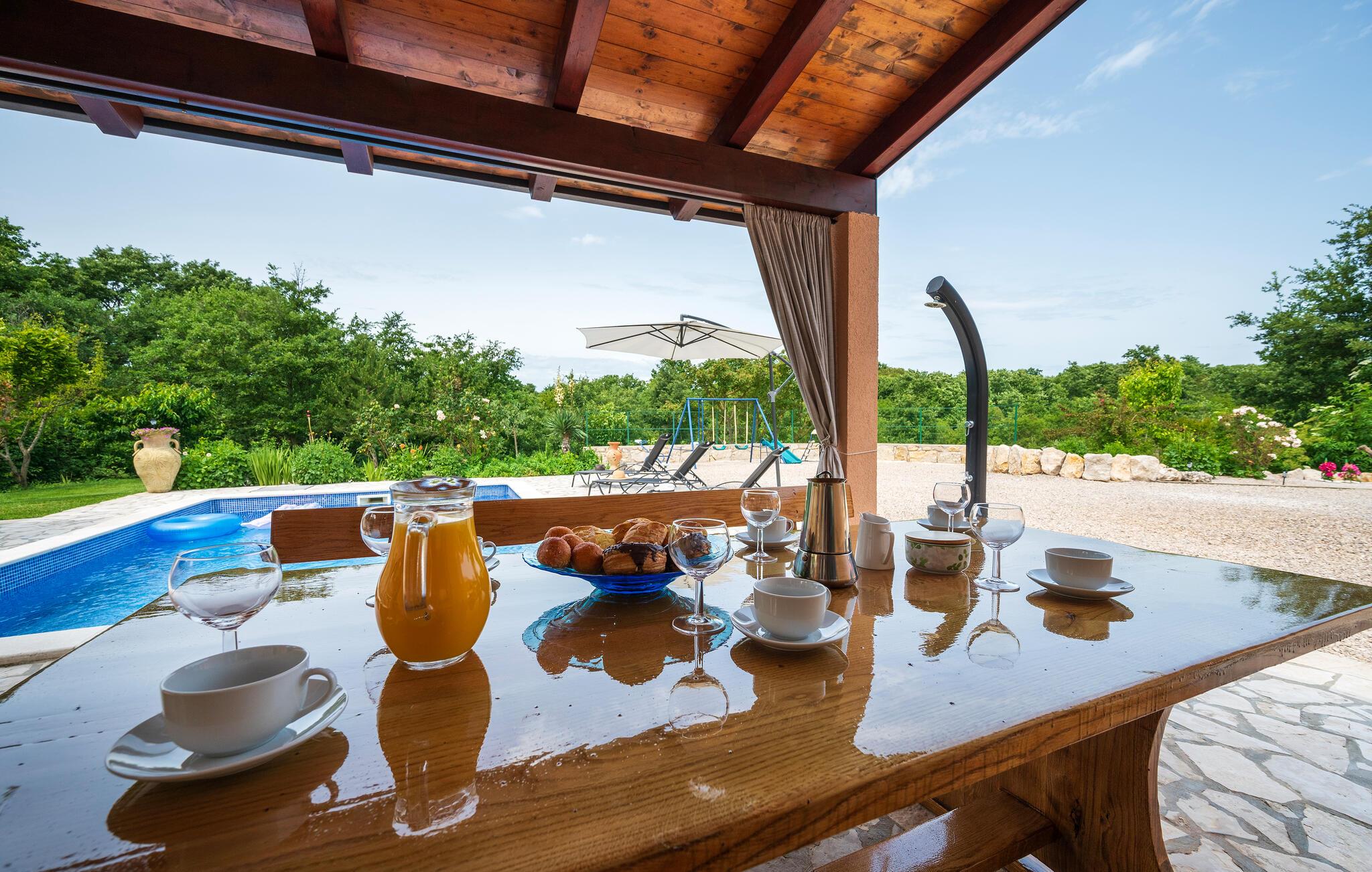 Dette dejlige feriehus med pool ligger i rolige omgivelser nær byen og de skønneste strande i Istrien. Ejendommen består af to bygninger med alt til en behagelig ferie. I sidebygningen er der et aktivitetsrum, to badeværelser og et køkken. I poolen kan I svømme et par runder, eller bare plaske og lege med børnene. Det tager tyve minutter at spadsere til Labins gamle bydel, en historisk by der ligger på en bakke, med mange historiske seværdigheder, en venetiansk kirke og et bjergværksmuseum. Desuden er byen rig på gallerier, her bor og arbejder mange kunstnere.