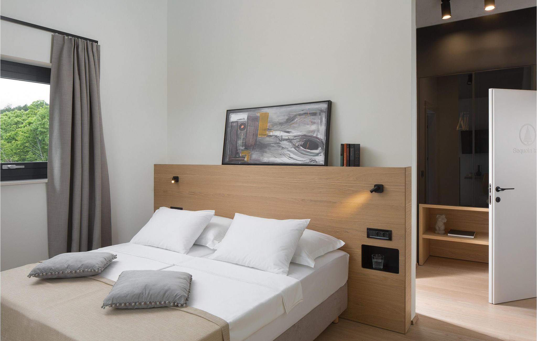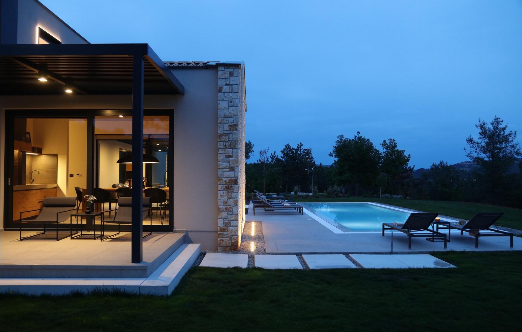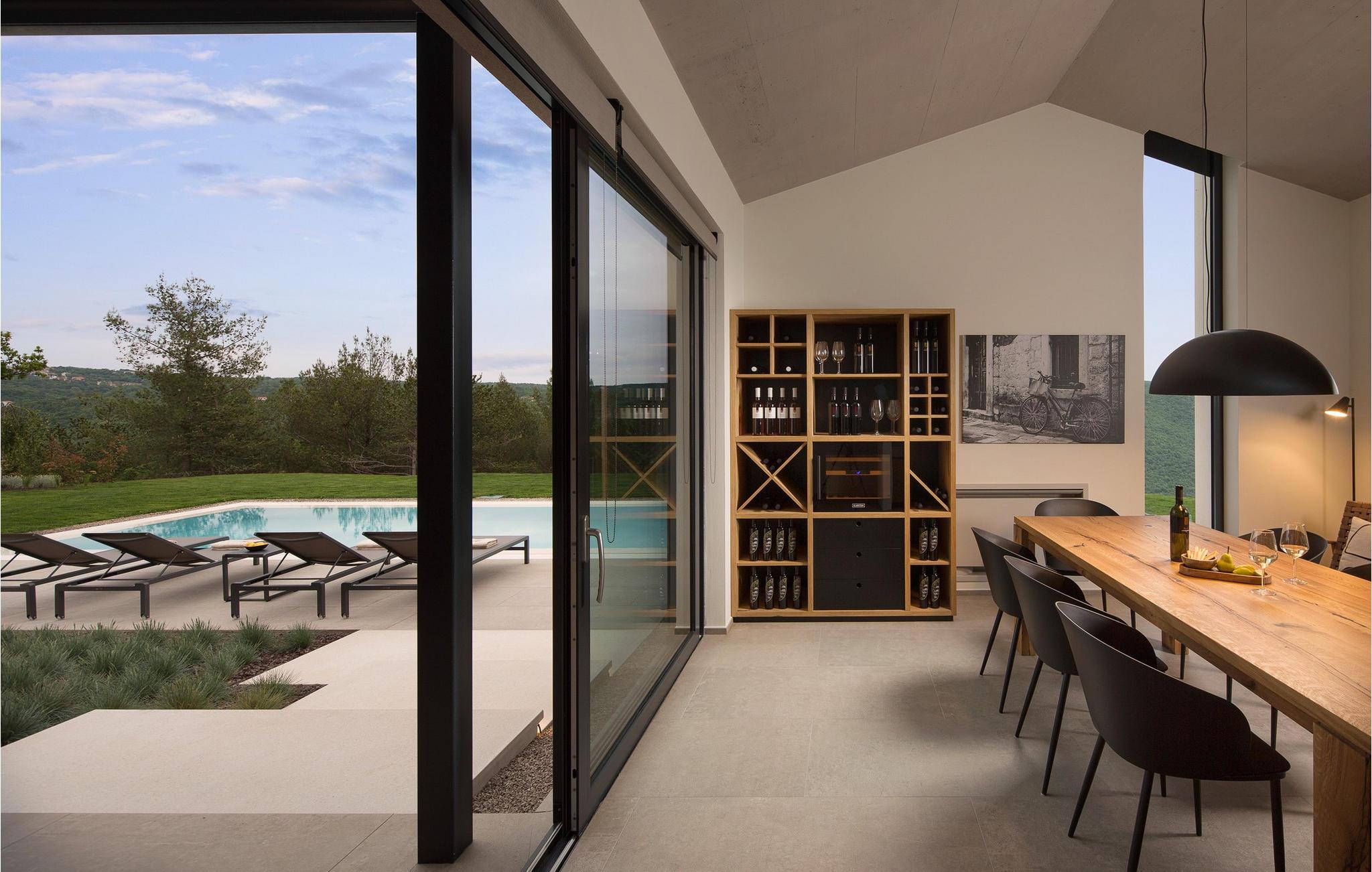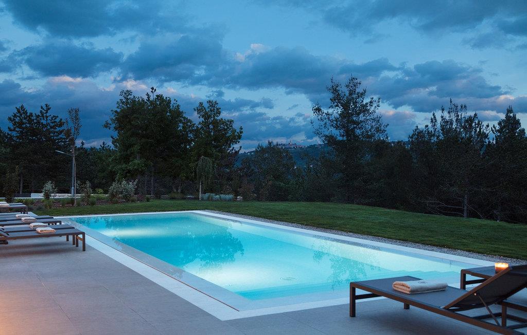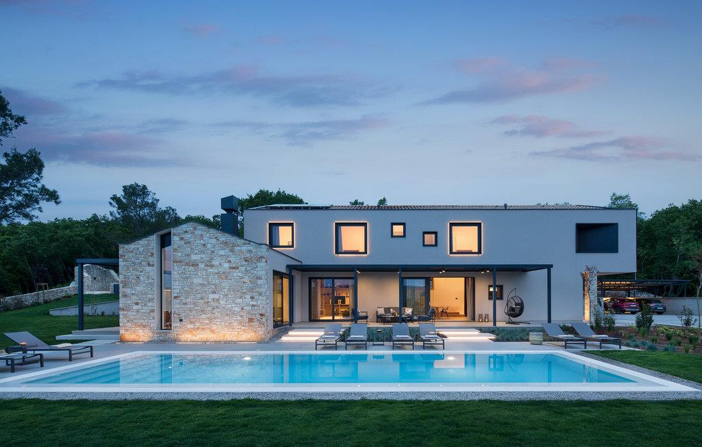 Villa Pine Tree ligger i middelalderbyen Labin i Istrien, på en bakke over Rabac. Den rige kulturelle og arkitektoniske arv i byen Labin genoplives gennem forskellige kunststudier og unges møde på caféer rundt om i byen. Denne maleriske by ligger på en 320 m høj bakke og kun 3 km fra havet. Villa Pine Tree er et sandt paradis på jorden, beliggende på en bakke omgivet af uberørt natur og grønne områder, og vil helt sikkert bringe dig en fredelig ferie i fuldstændig privatliv, som du har drømt om længe! Villa Pine Tree blev bygget i 2022 i en moderne og nutidig arkitektonisk stil. Du vil blive overrasket over den luksuriøse indretning og det smukt dekorerede interiør. Gæsterne råder over 320 m2 boligareal, mens ejendommens samlede areal er på perfekte 2000 m2. Villaen ligger kun 7 km væk fra havet, så du er samtidig tæt på det rene og klare Adriaterhav og til gengæld langt væk fra byens stress og jag. Det er fuldt airconditioneret, kan rumme maksimalt 8 personer og består af stueetagen og første sal. I stueetagen er der et moderne køkken, ideelt til at tilberede lækre måltider for hele familien eller en gruppe af bedste venner. Der er også en spisestue med et spisebord med plads til 8 og en stue med en komfortabel hjørnesofa, sofabord og TV. I stueetagen er der et skønt wellness-rum med sauna og tyrkisk bad, hvor du kan slappe af på krop og sjæl, samt en romantisk jacuzzi med udsigt. Der er også en taverna med en vinkælder, hvor elskere af lækre vine kan smage topkvalitetsvine. Ovenpå er 4 soveværelser med dobbeltsenge og ensuite badeværelser med bruser. På den udendørs terrasse kan du forfriske dig i den 42 m² og 1,5 m dybe pool, mens du solbader på 8 liggestole og nyder den vidunderlige udsigt over den uberørte natur. På terrassen er der et udendørs opholdsområde til at drikke morgenkaffe, et udendørs spisebord og en udendørs grill på kul eller træ. Andre faciliteter på Pine Tree Villa omfatter vaskemaskine, tørretumbler og strygejern. Villaen har også et separat toilet. Villaens gård er fuldstændig indhegnet, der er 4 private parkeringspladser. Villaen har en smukt anlagt have og en have, hvor børn kan lege frit. Attraktioner og lokale aktiviteter til rådighed for dig er vinture eller olivenolieture, vandsport, cykling, dykning, golf eller besøg af byer og historiske monumenter. Istrien er fuld af skjulte skatte, og Labin er bestemt en af dem. Du får mulighed for at smage det gastronomiske tilbud, der vil blæse dit sind med god prosciutto, ost og trøfler. Sørg også for at prøve en dråbe olivenolie og istriske prisvindende vine såsom Teran eller Merlot. Labin har en charmerende bymidte omgivet af befæstninger med mange bevarede paladser og kulturelle seværdigheder og kombinerer fortid og nutid på en usædvanlig måde. Du kan spise frokost eller middag på restauranter eller pizzeriaer, hvor du kan spise gode kager og drikke kaffe i skyggen af den smukke terrasse på den centrale plads i den gamle bydel i Labin. Du vil ikke gå glip af sjov og ferie, så tag til Istrien og tag mindet om den smukkeste ferie i dine drømme! Velkommen til Pine Tree Villa!