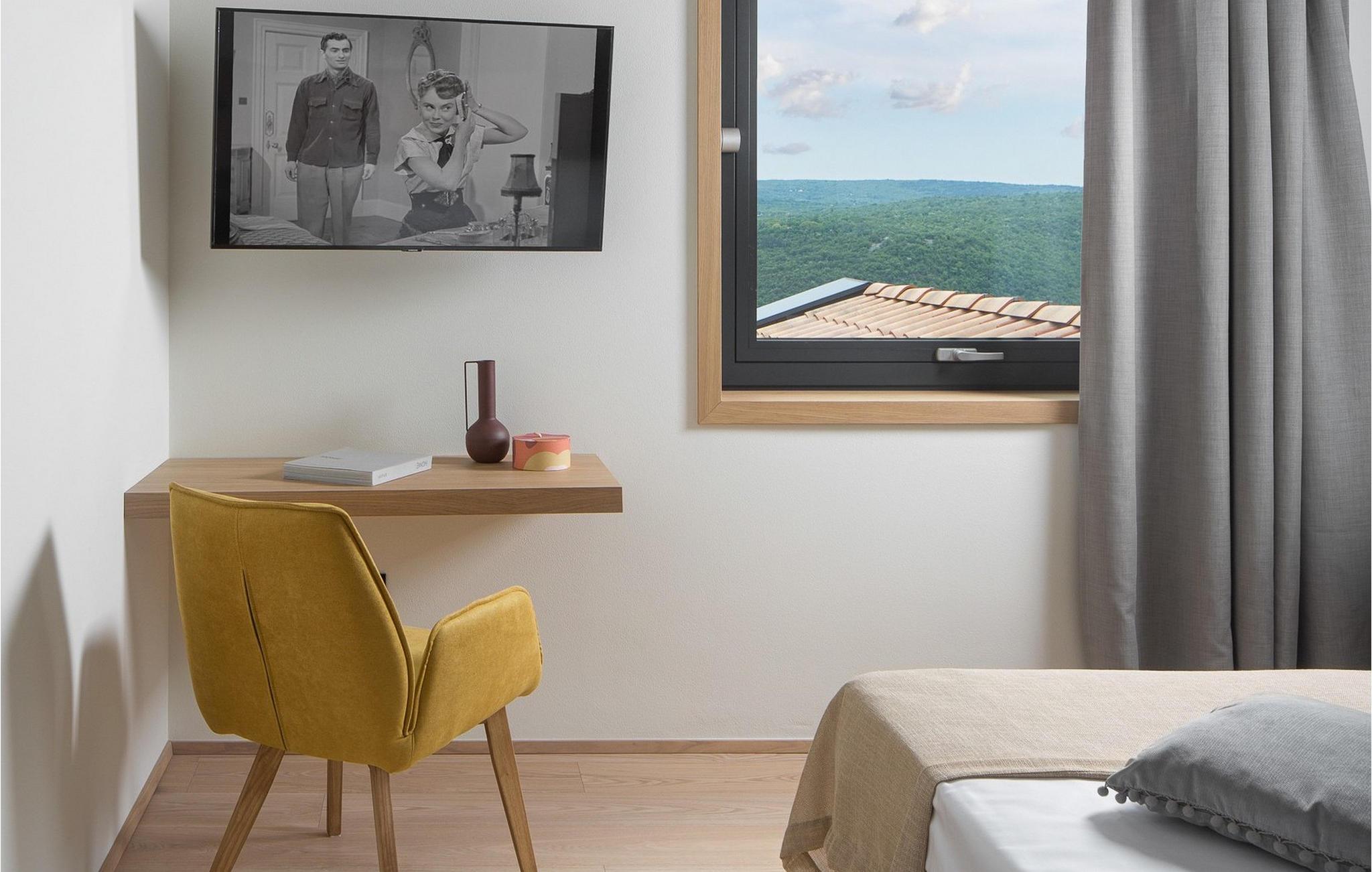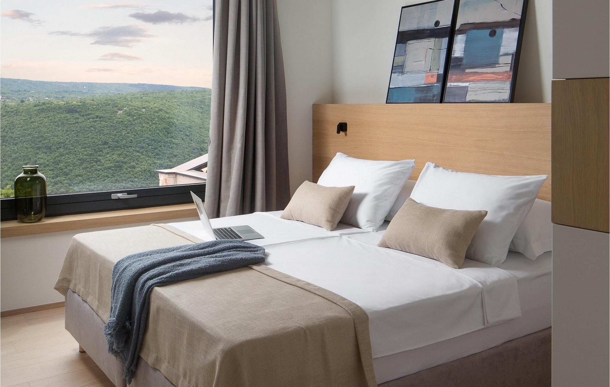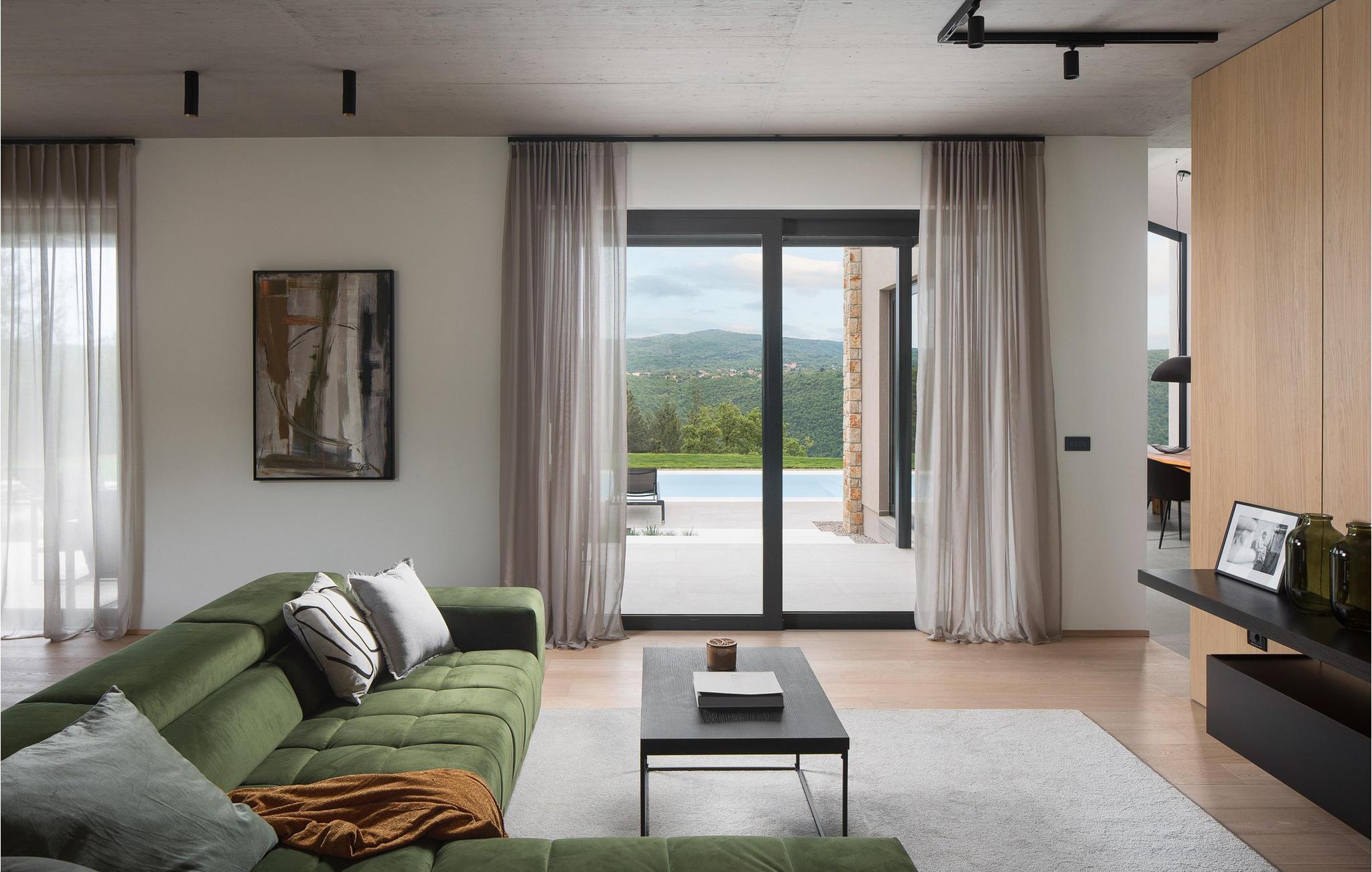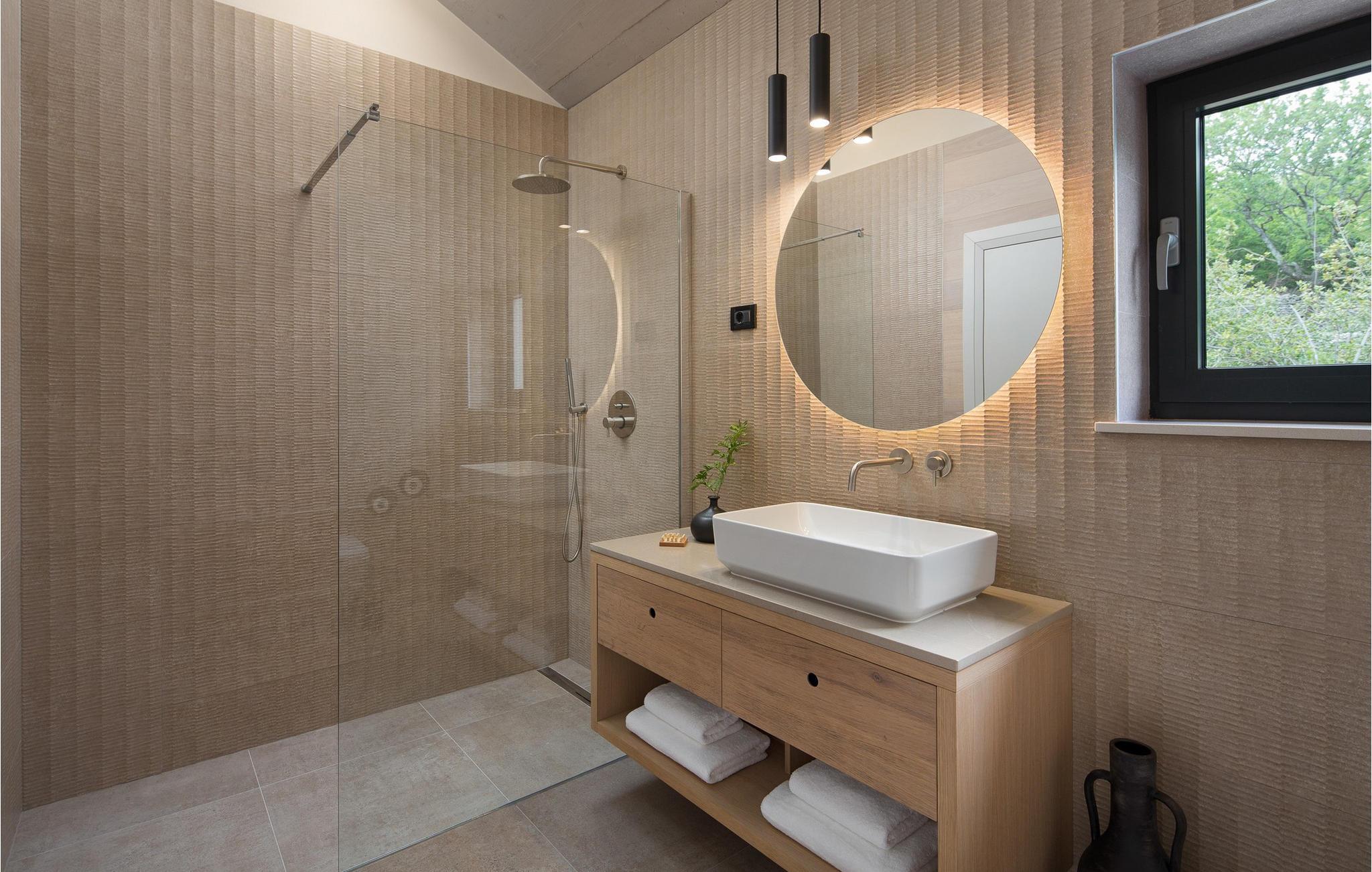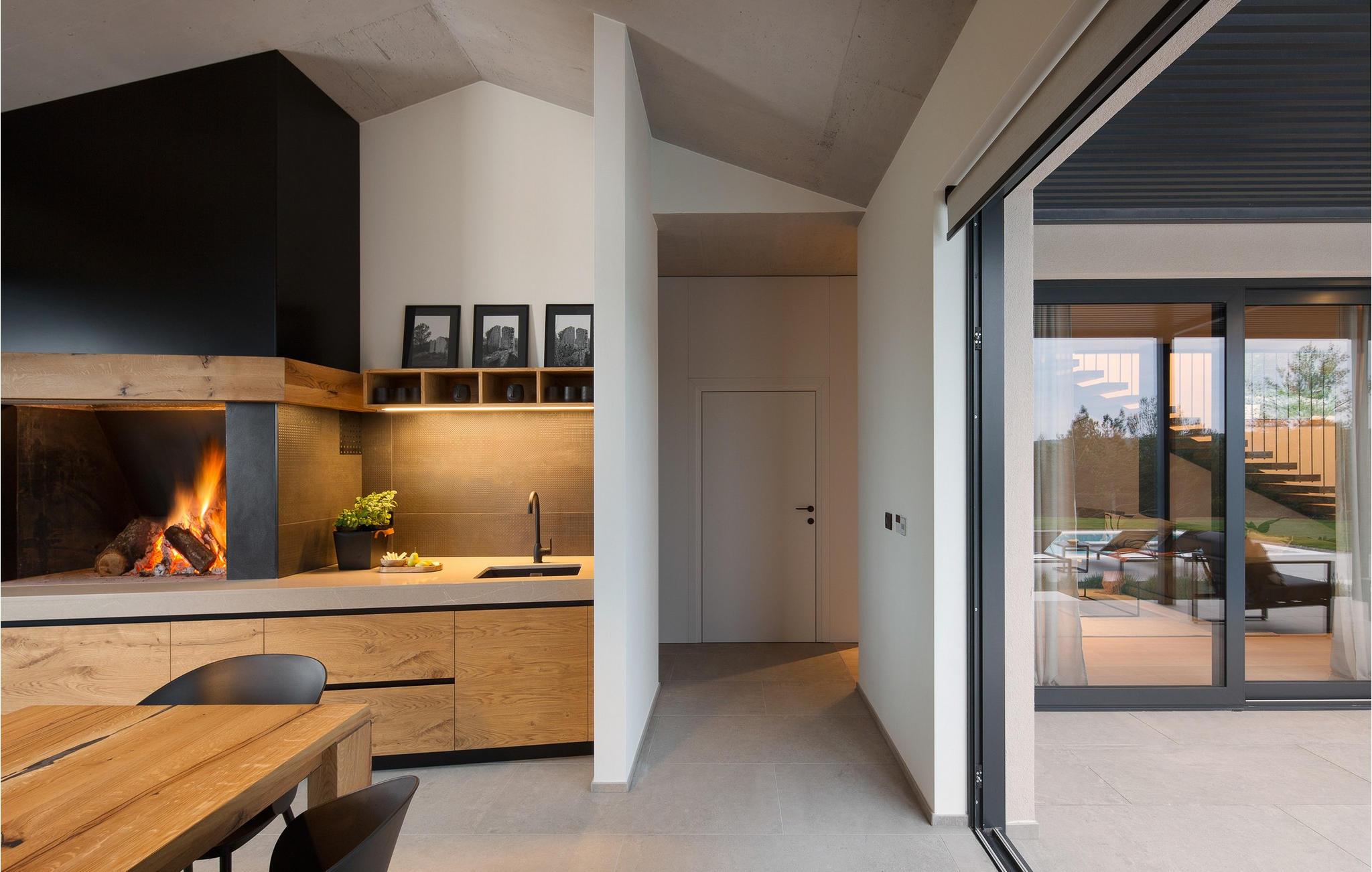 Villa Pine Tree ligger i middelalderbyen Labin i Istrien, på en bakke over Rabac. Den rige kulturelle og arkitektoniske arv i byen Labin genoplives gennem forskellige kunststudier og unges møde på caféer rundt om i byen. Denne maleriske by ligger på en 320 m høj bakke og kun 3 km fra havet. Villa Pine Tree er et sandt paradis på jorden, beliggende på en bakke omgivet af uberørt natur og grønne områder, og vil helt sikkert bringe dig en fredelig ferie i fuldstændig privatliv, som du har drømt om længe! Villa Pine Tree blev bygget i 2022 i en moderne og nutidig arkitektonisk stil. Du vil blive overrasket over den luksuriøse indretning og det smukt dekorerede interiør. Gæsterne råder over 320 m2 boligareal, mens ejendommens samlede areal er på perfekte 2000 m2. Villaen ligger kun 7 km væk fra havet, så du er samtidig tæt på det rene og klare Adriaterhav og til gengæld langt væk fra byens stress og jag. Det er fuldt airconditioneret, kan rumme maksimalt 8 personer og består af stueetagen og første sal. I stueetagen er der et moderne køkken, ideelt til at tilberede lækre måltider for hele familien eller en gruppe af bedste venner. Der er også en spisestue med et spisebord med plads til 8 og en stue med en komfortabel hjørnesofa, sofabord og TV. I stueetagen er der et skønt wellness-rum med sauna og tyrkisk bad, hvor du kan slappe af på krop og sjæl, samt en romantisk jacuzzi med udsigt. Der er også en taverna med en vinkælder, hvor elskere af lækre vine kan smage topkvalitetsvine. Ovenpå er 4 soveværelser med dobbeltsenge og ensuite badeværelser med bruser. På den udendørs terrasse kan du forfriske dig i den 42 m² og 1,5 m dybe pool, mens du solbader på 8 liggestole og nyder den vidunderlige udsigt over den uberørte natur. På terrassen er der et udendørs opholdsområde til at drikke morgenkaffe, et udendørs spisebord og en udendørs grill på kul eller træ. Andre faciliteter på Pine Tree Villa omfatter vaskemaskine, tørretumbler og strygejern. Villaen har også et separat toilet. Villaens gård er fuldstændig indhegnet, der er 4 private parkeringspladser. Villaen har en smukt anlagt have og en have, hvor børn kan lege frit. Attraktioner og lokale aktiviteter til rådighed for dig er vinture eller olivenolieture, vandsport, cykling, dykning, golf eller besøg af byer og historiske monumenter. Istrien er fuld af skjulte skatte, og Labin er bestemt en af dem. Du får mulighed for at smage det gastronomiske tilbud, der vil blæse dit sind med god prosciutto, ost og trøfler. Sørg også for at prøve en dråbe olivenolie og istriske prisvindende vine såsom Teran eller Merlot. Labin har en charmerende bymidte omgivet af befæstninger med mange bevarede paladser og kulturelle seværdigheder og kombinerer fortid og nutid på en usædvanlig måde. Du kan spise frokost eller middag på restauranter eller pizzeriaer, hvor du kan spise gode kager og drikke kaffe i skyggen af den smukke terrasse på den centrale plads i den gamle bydel i Labin. Du vil ikke gå glip af sjov og ferie, så tag til Istrien og tag mindet om den smukkeste ferie i dine drømme! Velkommen til Pine Tree Villa!
