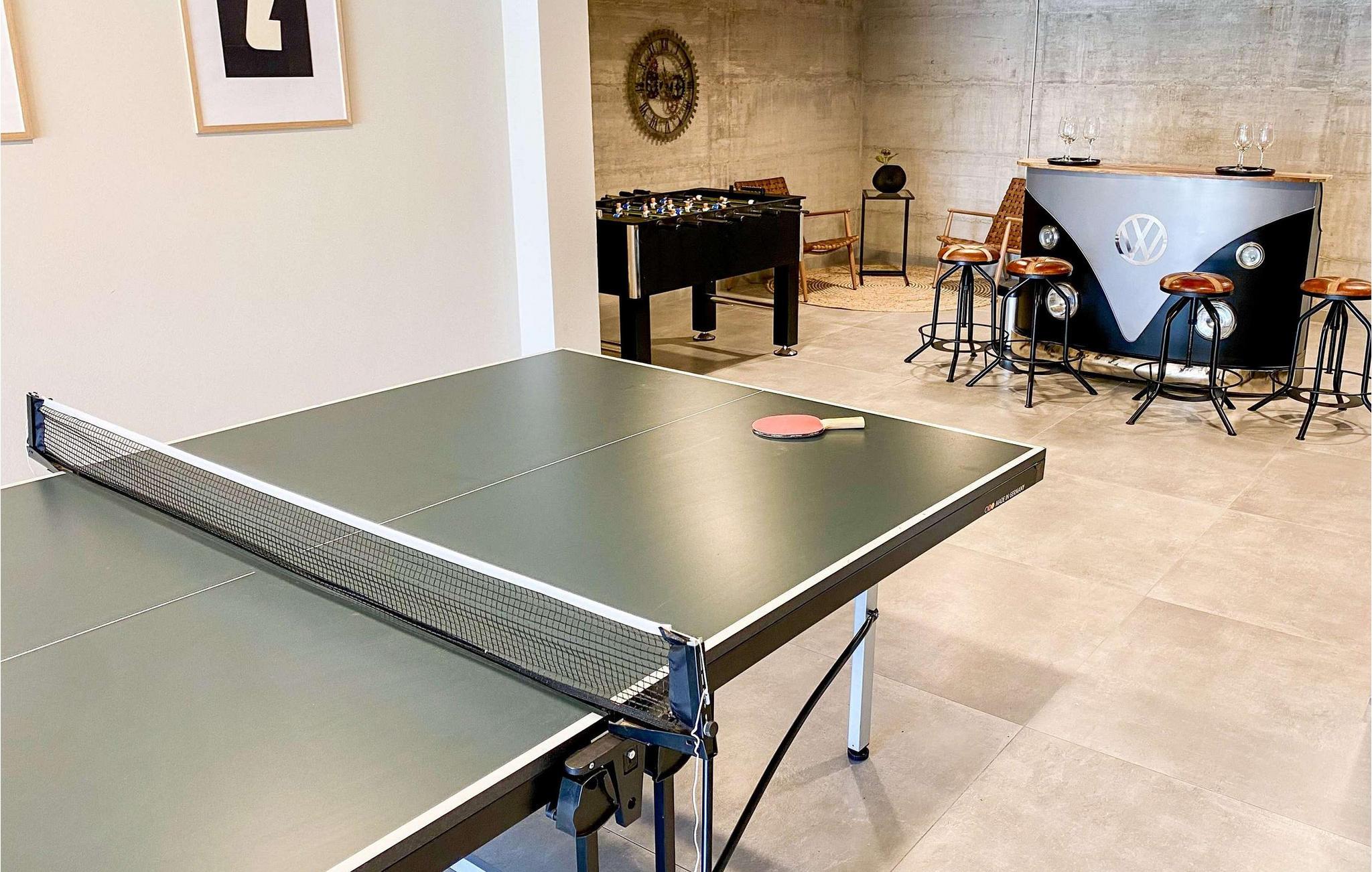 Villaen blev bygget i 2022 i en moderne stil, der vil glæde enhver gæst. I har 375 m2 plads til jeres rådighed, mens ejendommens samlede areal er 2000 m2. Villaen har plads til maksimalt 10 personer. Villaen består af en stueetage, første sal og kælder. Kælderen har en man cave-garage med vinkælder, et spillerum (PlayStation, bordfodbold, bordtennis, dart), et fitnessrum, en garage til én bil, et badeværelse med bruser og et soveværelse. Stueetagen har en stue med hjørnesofa, sofabord, klaver og tv. Der er også et moderne køkken og en spisestue med spisebord til 10 personer. I bor komfortabelt i fem soveværelser, hvoraf to har dobbeltsenge og eget badeværelse med badekar, og tre værelser med seks enkeltsenge og eget badeværelse med bruser.