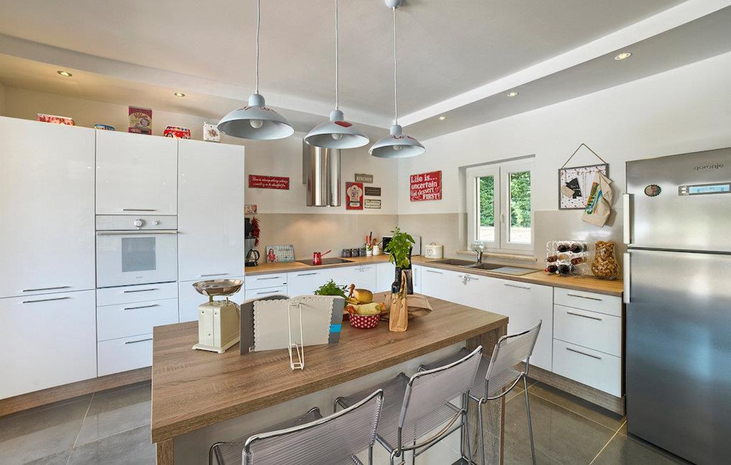 En smukt vedligeholdt have med store græsplæner og skyggefulde træer omslutter huset, fyldt med en række dufte fra middelhavsurter og blomsterbede lige så elegant som villaen. Idylliske omgivelser, hvor den uforstyrrede natur ses på sit bedste, tilbyder ægte ro med alle moderne bekvemmeligheder inde som ude og alt kun en kort køretur fra Adriaterhavets blændende blå vand. Denne smukke villa er beliggende i den lille landsby Snasici, lige ved siden af 5 km fra byen Labin. Labin ligger på en bakketop lige over den magiske kystlinje og er det historiske og administrative centrum i det østlige Istrien. Området er et paradis for historie- og kunstentusiaster med sin rige kulturelle og arkitektoniske arv. De stejle snoede gader i den gamle bydel kan prale af velbevarede historiske paladser, talrige kunstgallerier og atelierer og vært for forskellige jazz- og klassisk musikfestivaler i sommermånederne. Byen byder på adskillige fremragende fiskerestauranter, med mange lokale råvarer på tilbud, samt mange hyggelige kaffebarer, ideelle til at nyde den afslappede atmosfære. Labins badeby er Rabac, engang en fiskerby og i dag et populært turistmål omgivet af himmelske stenstrande.