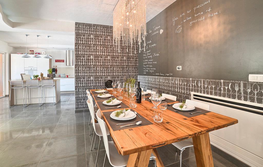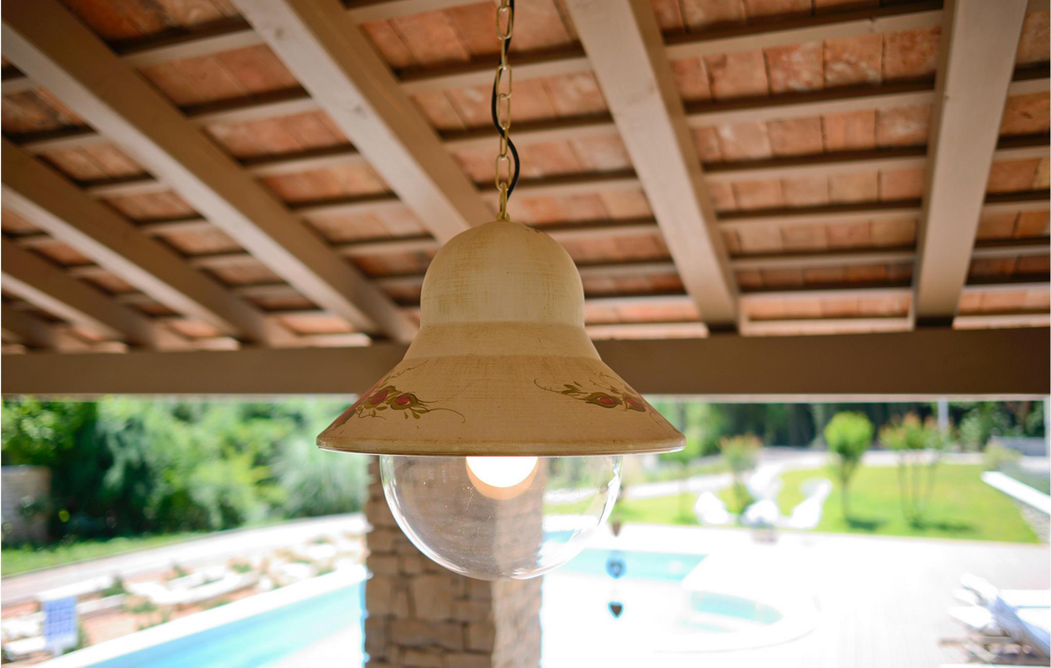 Villaen består af to separate huse. De fire rummelige, elegant indrettede soveværelser er beliggende i hovedhuset - et i stueetagen og de tre andre på øverste etage, hver med fordelen af et fladskærms-tv og smukt indrettet ensuite badeværelse. Dominerende i stueetagen af hovedhuset er et stilfuldt lyst og luftigt værelse opdelt i afslappende lounge, spisestue og madlavningsområder. De naturlige, bløde farver og teksturer i møbler af høj standard og en hyggelig pejs skaber en varm og behagelig atmosfære, mens det store fladskærms-tv og Playstation tilbyder ekstra underholdning. Store glasskydedøre åbner ud til den udendørs terrasse, hvor en lokkende solopvarmet pool og elegant solterrasse med afslappende liggestole venter. Der er også en skyggefuld loggia med en udendørs spiseplads og murstensgrill til de dejlige, lange frokoster eller romantiske middage under stjernerne.