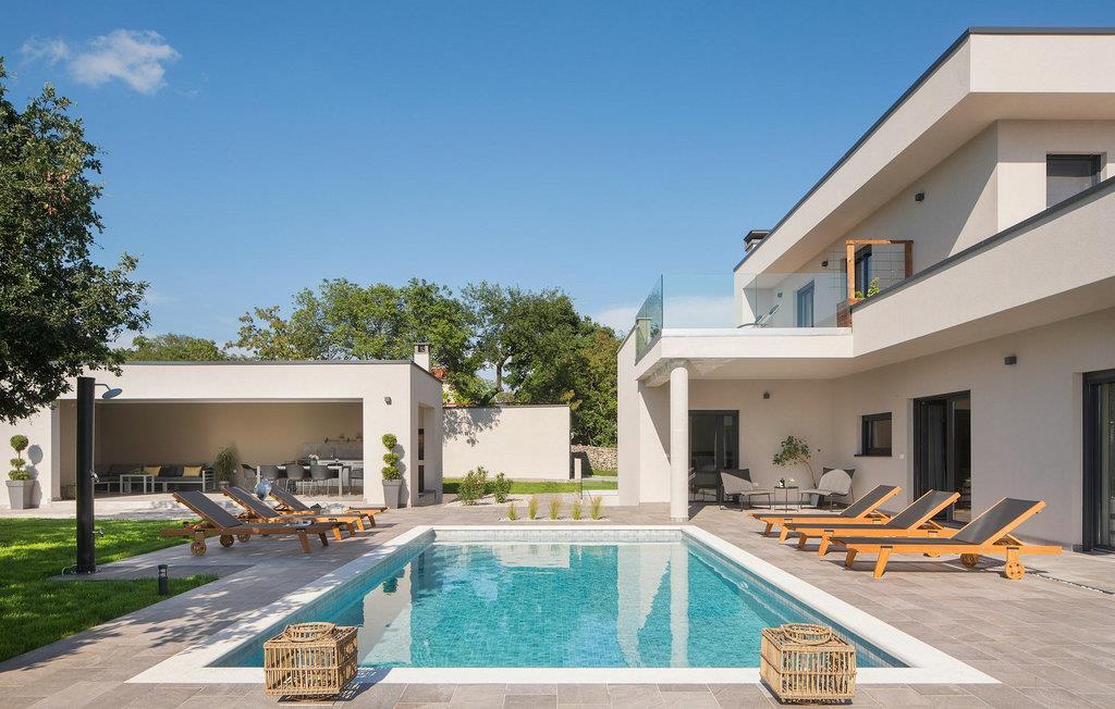 Villa Sent er en moderne villa med privat pool og en fantastisk panoramaudsigt over det idylliske Istriske landskab. Hvis du drømmer om en perfekt ferie, er dette et sted at bo. I stueetagen af villaen finder du en åben stue, spisestue og et køkken. Stueetagen indeholder også et soveværelse med eget badeværelse, begge velegnet til at rumme gæster med nedsat mobilitet. På første sal i villaen finder du yderligere to soveværelser med eget badeværelse. Du kan også nyde dine solnedgange på balkonen på første sal med udsigt over det omkringliggende område. I kælderen er der et legerum for børn med dart, bordfodbold, bordtennis og et poolbord. Hvis du kan lide at dyrke yoga eller kan lide at dyrke motion, er dette rum også perfekt til det, og her er en Orbitrek fitnessmaskine til din rådighed, som holder dig i perfekt form under ferien. I det udvendige område af villaen er der en overdækket udendørs spisestue med køkken, hvor du kan tilberede og nyde et tilfredsstillende sommermåltid. Rundt om poolen er der liggestole, hvor du kan slappe af, og en stor swimmingpool vil give din krop velfortjent afslapning på varme sommerdage. Solbad, nyd en kold drink, eller gå en tur gennem det rummelige land, som strækker sig over 4900 m2, inklusive en smuk olivenlund. Book Villa Sendt nu, og gør disse drømme til virkelighed. VIGTIGT: Yngre grupper er ikke tilladt. Middelalderbyen Labin ligger på en bakke med udsigt over kystbyen Rabac, og det er det historiske og administrative centrum i det østlige Istrien. Der blev fundet tidlige bosættelser i området langt tilbage til bronzealderen, hvilket gør hele det omkringliggende område til et paradis for historie- og kunstinteresserede med sin rige kulturelle og arkitektoniske arv. Kun tre kilometer væk ligger Rabac, en malerisk kystfiskerby, også kendt som Kvarnerbugtens perle. På grund af den smukke bugt og pragtfulde, tamme omgivelser er det et paradis for turister. Fra Labin kan du planlægge mange dagsture rundt omkring i Istrien, da området er godt forbundet med større veje. Hvis du ønsker at besøge større kystbyer, er Pula, Rovinj og Porec hver cirka en time væk i bil. Der er mange cykelveje og vandrestier i det omkringliggende område, så hvis du vil nyde den smukke natur, så husk at tjekke dem ud.