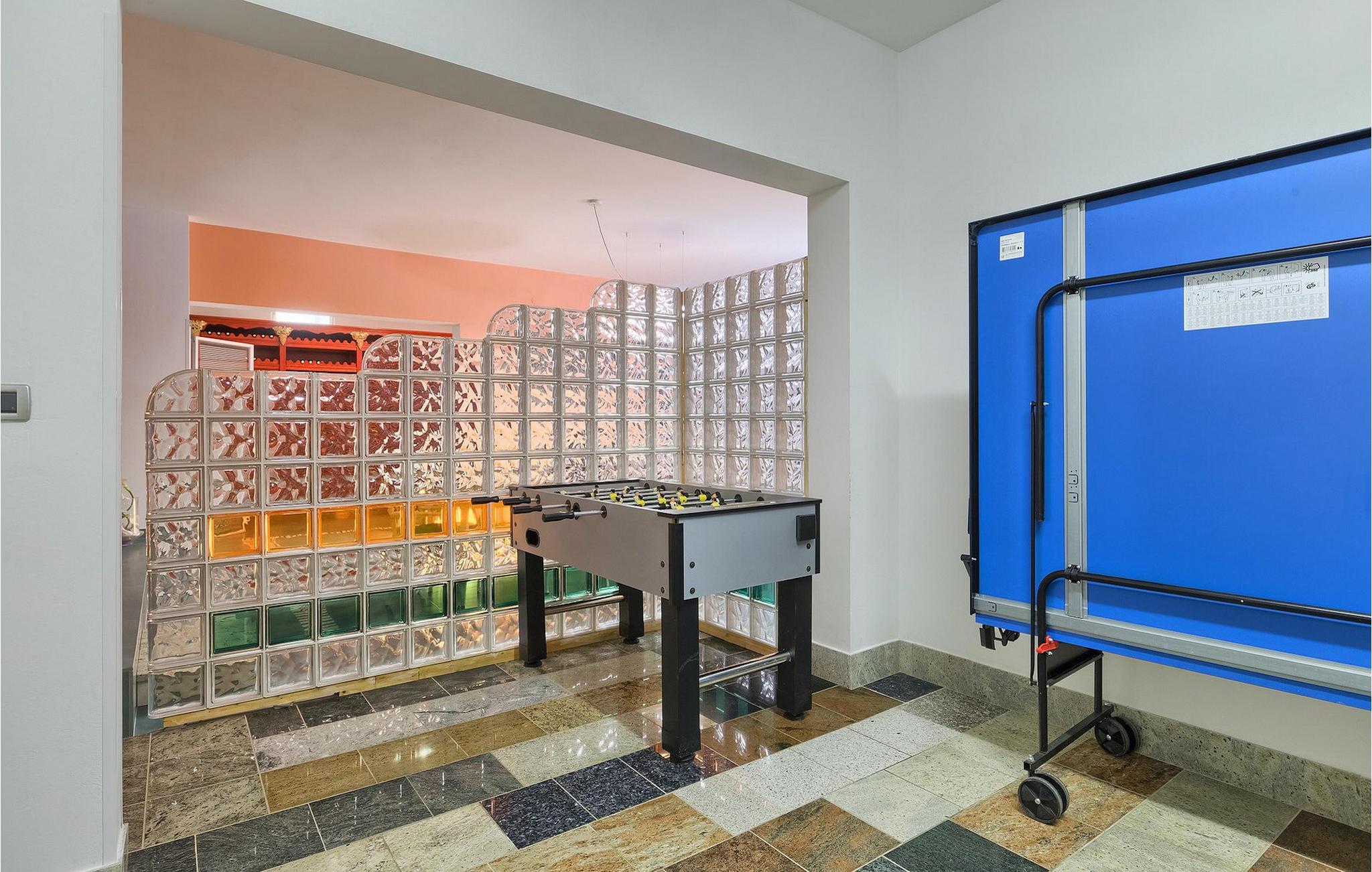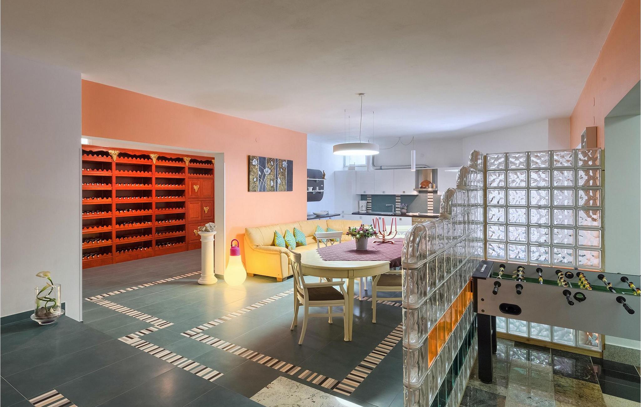 Im Untergeschoss befinden sich 1 Doppelzimmer, eine voll ausgestattete Küche, ein Wohn- / Essbereich, ein Badezimmer, ein Weinkeller und ein Freizeitbereich, in dem Sie sich beim Tischtennis oder Tischfußball entspannen können.