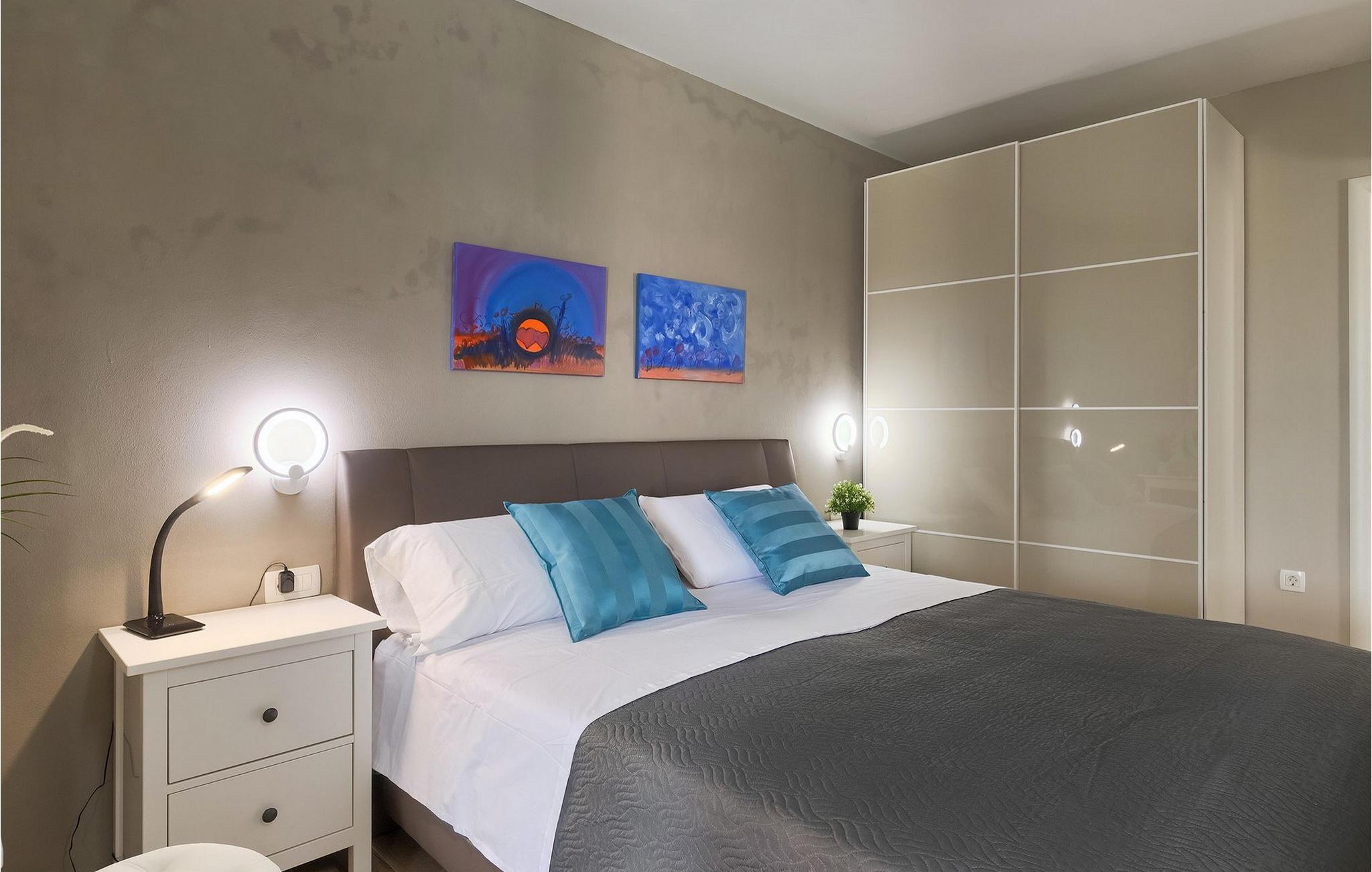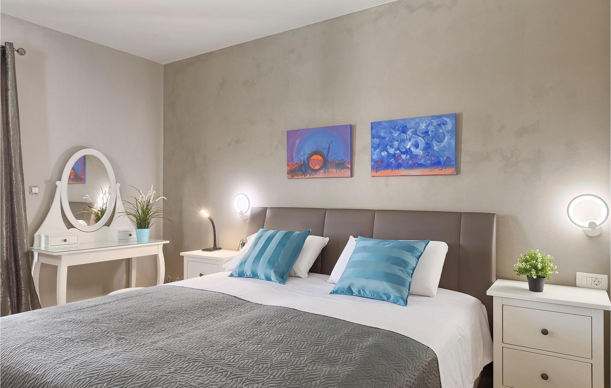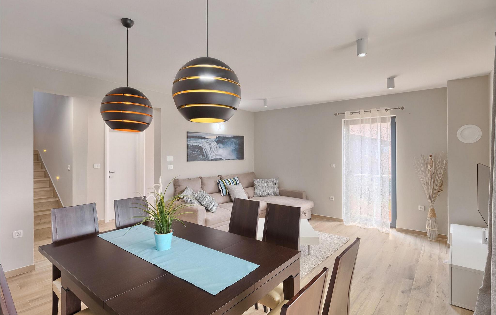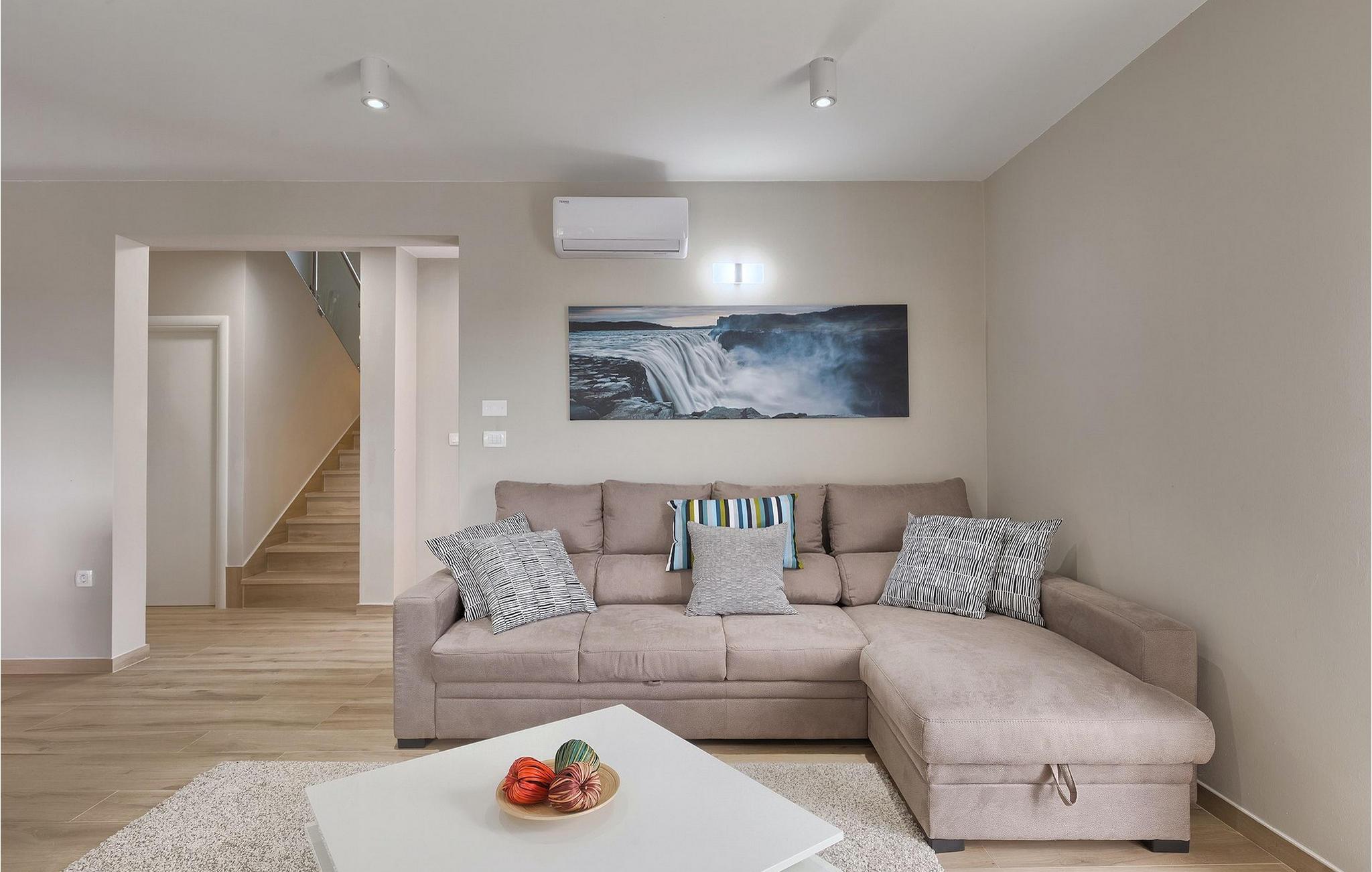 Den moderne villa Fiolla med privat pool ligger i den lille istriske by Labin og er et ideelt valg til en ferie væk fra byens stress og jag. Villaen ligger på en grund på 600 kvadratmeter og har i alt plads til 8 gæster. Når du træder ind i villaen, vil du straks føle dig godt tilpas takket være de lyse toner, som villaen er indrettet i. Stueetagen af villaen består af et åbent rum med stue, spisestue og fuldt udstyret køkken, toilet, soveværelse og et badeværelse. Fra spisestuen kan I gå gennem skydedøren ud på terrassen og nyde udsigten over villaens omgivelser. På første sal er de resterende 3 soveværelser og to badeværelser. Alle soveværelser er dobbeltværelser, har tv og aircondition, og det ene har en sovesofa.