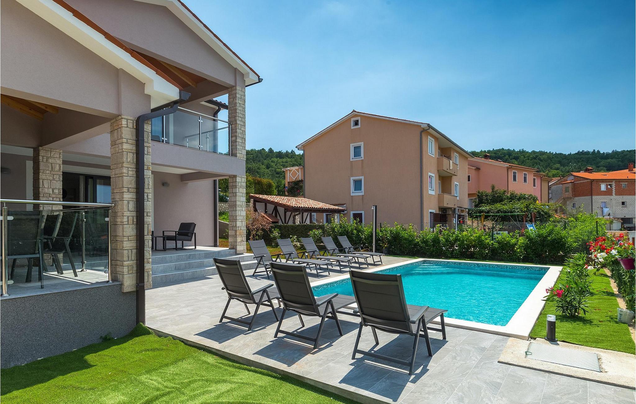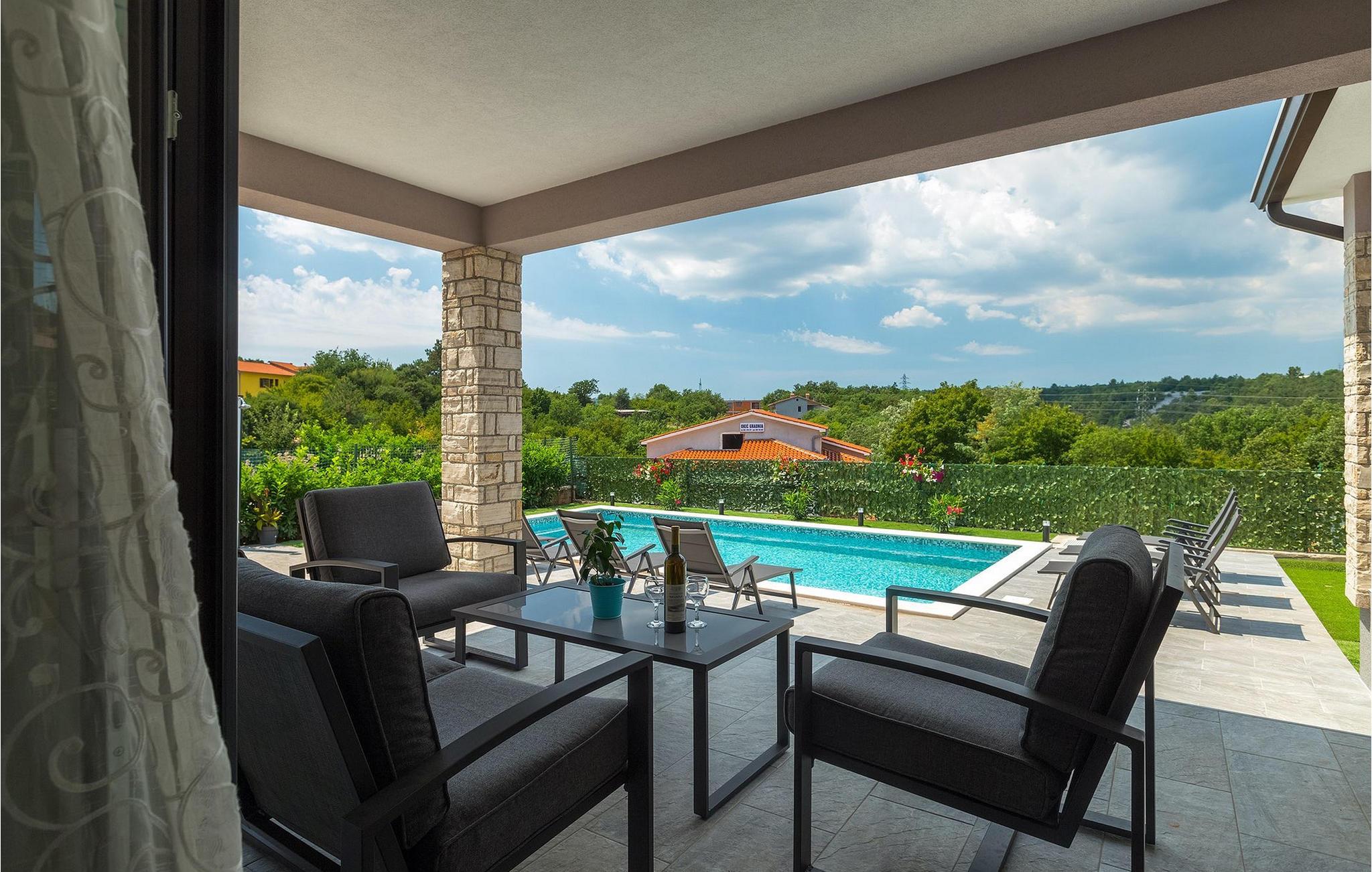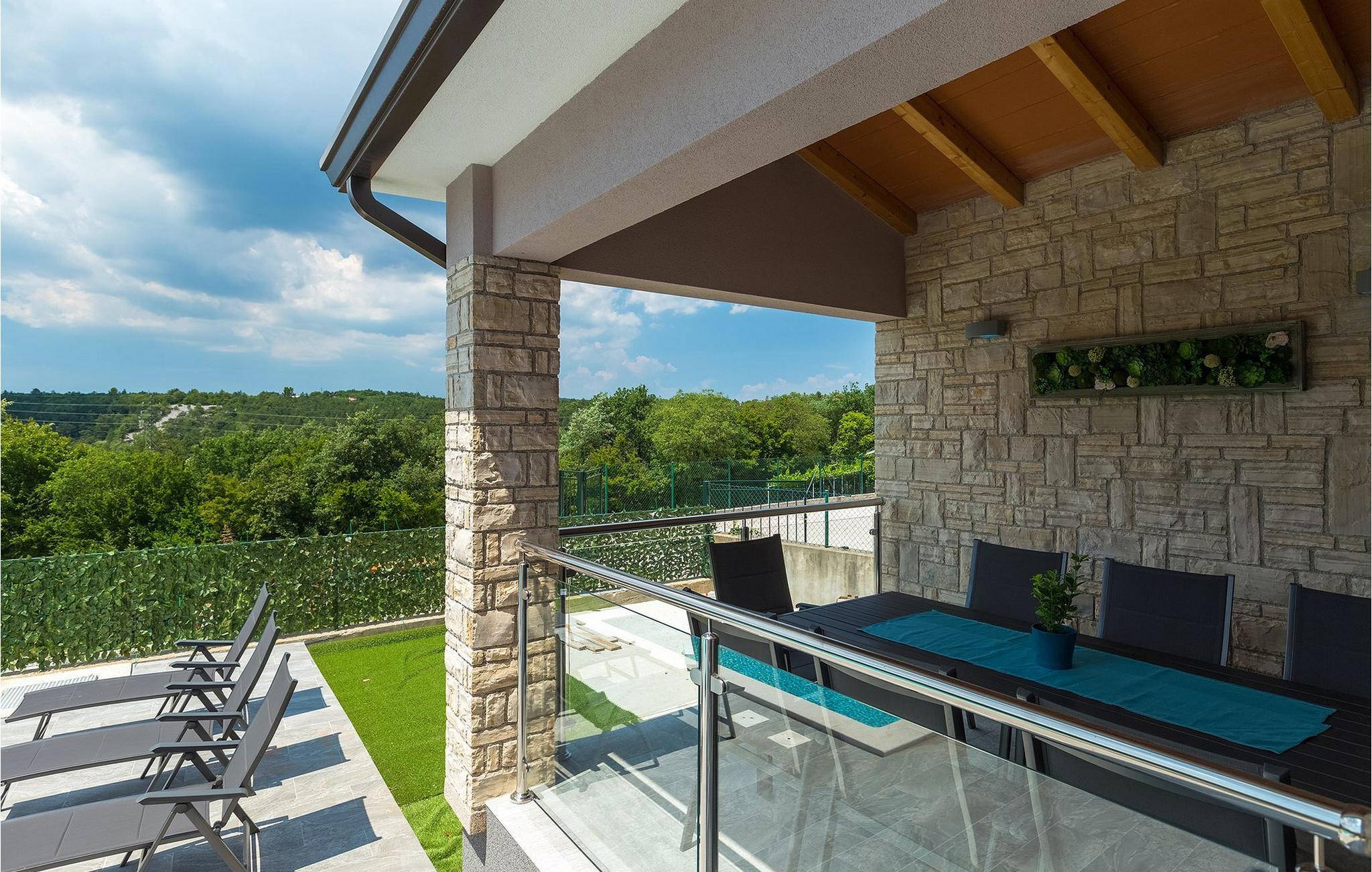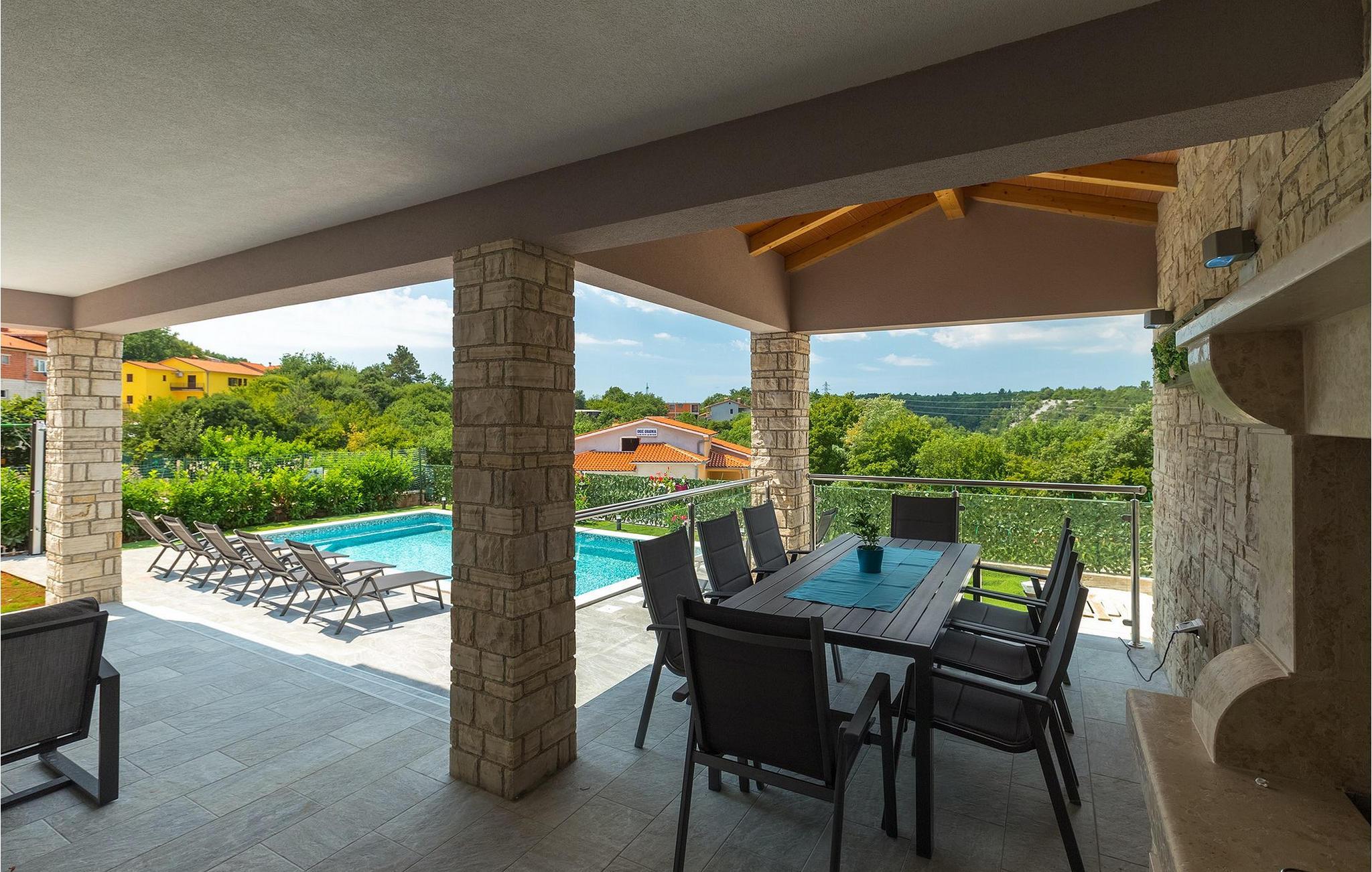 Den overdækkede terrasse med spisebord er ideel til udendørs spisning, hvilket er særligt rart i sommermånederne. Herfra har du udsigt til poolen, hvorom der er liggestole. Vi er sikre på, at du vil nyde at tilbringe tid her, nyde solen og svømme. Der er også en grill til rådighed for villaens gæster, hvor du hurtigt kan tilberede et lækkert måltid :) Denne smukke villa tilbyder en god base, hvorfra du kan udforske denne uspolerede region, og er nedsænket i det herlige, bølgende istriske landskab, men kun en stenkast fra Adriaterhavets smaragdblå vand og afsondrede naturlige strande. Den gamle bydel Labin ligger på den østlige side af halvøen Istrien, omkring 40 km fra Pula og 60 km fra Rijeka. Det er et sted rigt på atelier og det ideelle sted at nyde kunst på hvert trin gennem byen. Rabac, en tidligere fiskerby, er stedet, hvor du kan finde gode strande og restauranter.