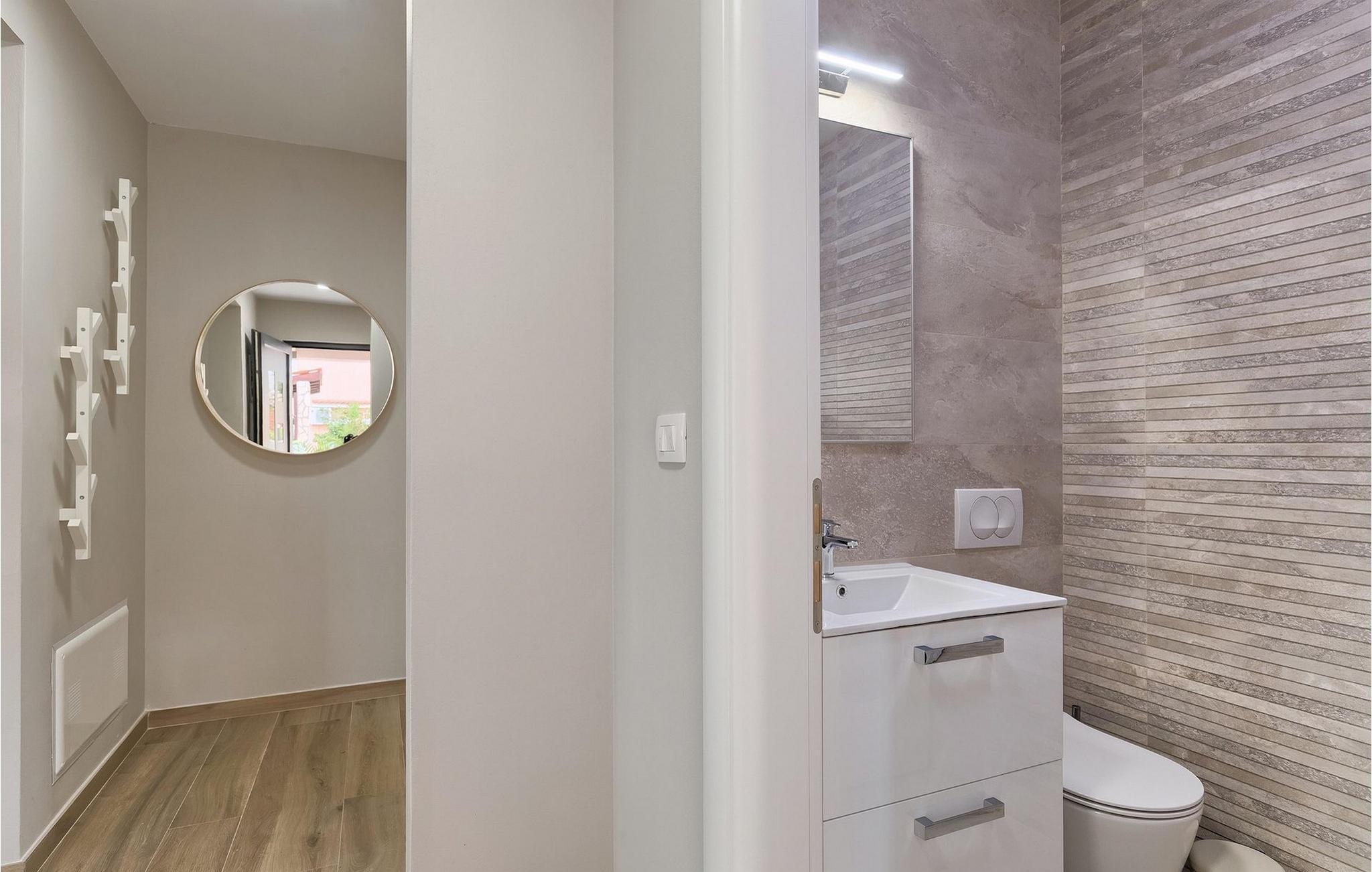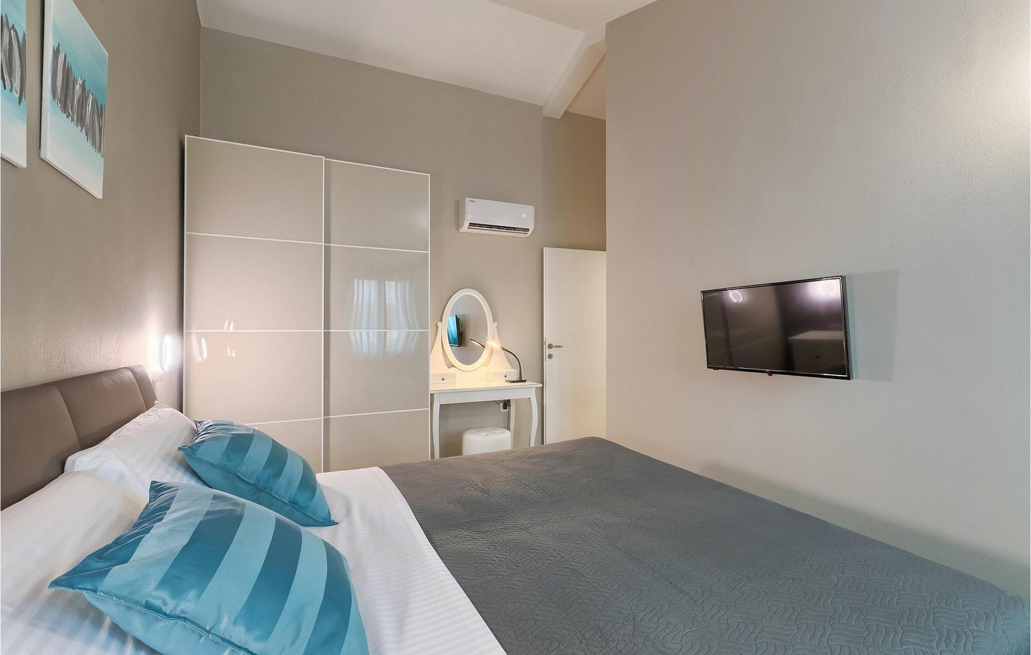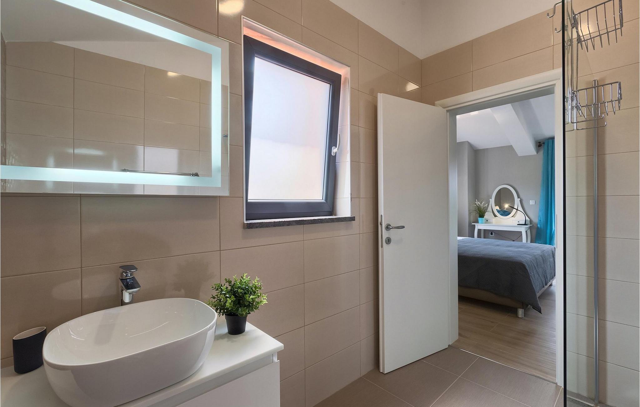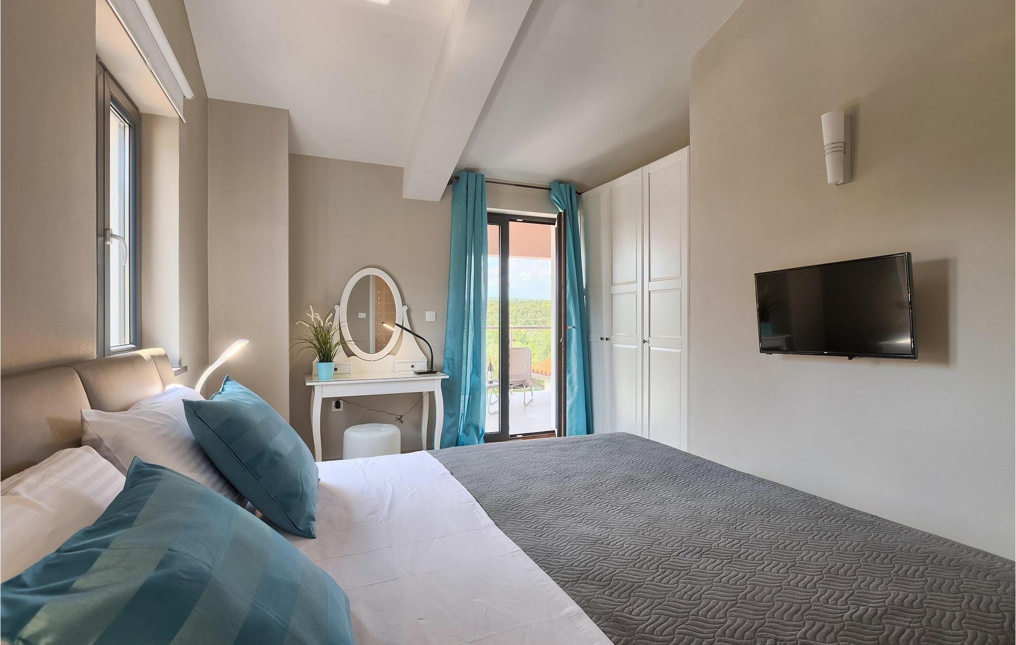 Den overdækkede terrasse med spisebord er ideel til udendørs spisning, hvilket er særligt rart i sommermånederne. Herfra har du udsigt til poolen, hvorom der er liggestole. Vi er sikre på, at du vil nyde at tilbringe tid her, nyde solen og svømme. Der er også en grill til rådighed for villaens gæster, hvor du hurtigt kan tilberede et lækkert måltid :) Denne smukke villa tilbyder en god base, hvorfra du kan udforske denne uspolerede region, og er nedsænket i det herlige, bølgende istriske landskab, men kun en stenkast fra Adriaterhavets smaragdblå vand og afsondrede naturlige strande. Den gamle bydel Labin ligger på den østlige side af halvøen Istrien, omkring 40 km fra Pula og 60 km fra Rijeka. Det er et sted rigt på atelier og det ideelle sted at nyde kunst på hvert trin gennem byen. Rabac, en tidligere fiskerby, er stedet, hvor du kan finde gode strande og restauranter.
