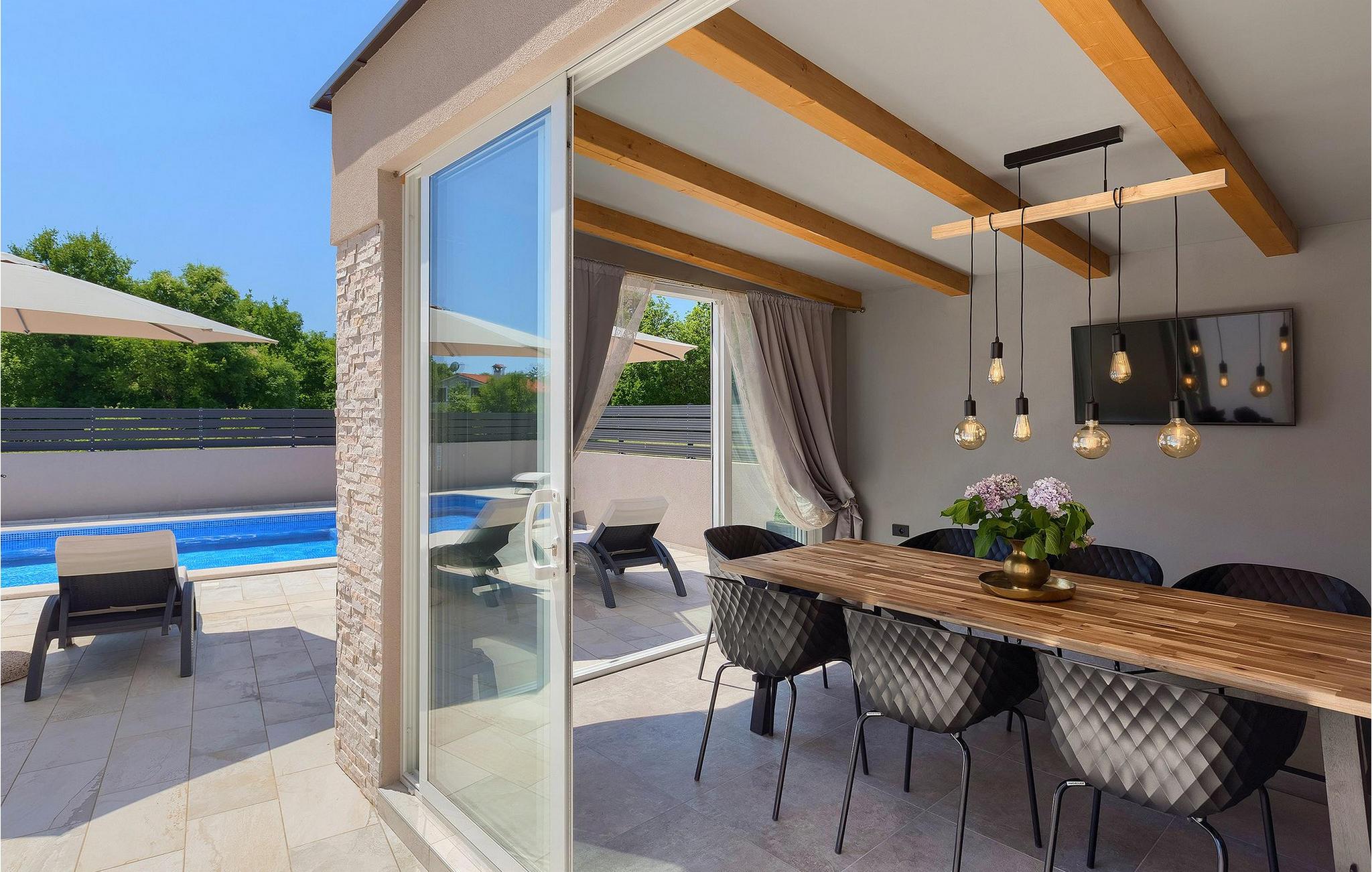 Villa Emilia er det perfekte valg til en familie eller ferie med venner, og vil helt sikkert glæde dig.Villa Emilia ligger i Vinez, en lille landsby nær Labin. Placeringen af Vinez er ideel for gæster, der ønsker at tilbringe deres ferie væk fra byens folkemængder, men også for at lære Istriens turiststeder at kende. På bakken nær Vinez ligger middelalderbyen Labin. En gåtur gennem byens smalle gader er den bedste måde at lære Labin at kende, hvorefter du bestemt bør besøge Bymuseet, hvor der er en model af minen, som er unik i denne del af Europa. I centrum af Labin er der mange restauranter, der tilbyder istriske specialiteter, herunder hjemmelavet olivenolie, trøfler og asparges. En gåtur til udsigtspunktet Fortica og nyd udsigten over Rabac og øen Cres, hvorefter du kan nyde et glas Malvasia-vin på en af de charmerende caféer i Labin, er den ideelle afslutning på en rundtur i byen.