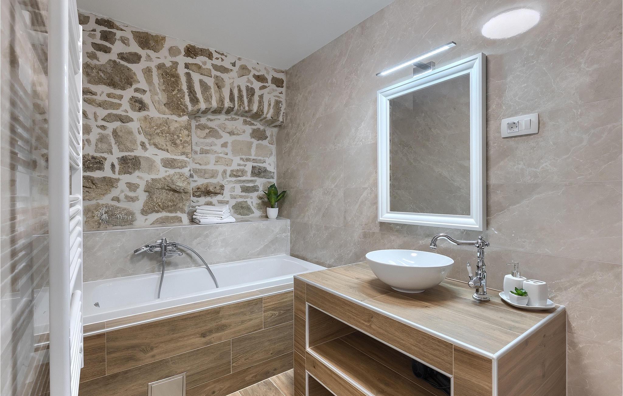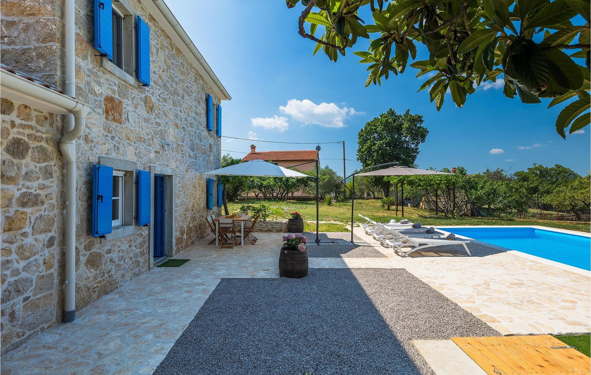 Drømmer du om en afslappende ferie midt i smukke naturomgivelser, kan Villa Laura Ripenda være lige hvad du har brug for. Villaen ligger i en lille landsby i Istrien, mens de første strande ved det smukke Adriaterhav kun ligger 3 km fra villaen. Villa Laura Ripenda er moderne indrettet indvendigt, mens dens traditionelle charme på den anden side er blevet bevaret. Denne dejlige villa har 2 soveværelser med dobbeltsenge, hver med eget badeværelse, beliggende på 1. sal. I stueetagen er der en stue, der er luftig, med masser af lys centreret på en stor glassten med udsigt over haven og poolen. Nyd at spise din aftensmad på den overdækkede terrasse og tilbered lækre grillmåltider. Der er en stor privat pool, hvor du kan bruge tid på at slikke det varme solskin. Lavet kun til en ferie, vil denne smukke villa Laura Ripenda sætte dig i en afslappet istrisk stemning! Book din villa til tiden. Den smukke villa Laura Ripenda ligger i den lille istriske by Ripenda Kras, ikke langt fra byerne Labin og Rabac. Kun 3 km fra villaen ligger den første strand, men Istrien byder på en håndfuld andre smukke strande langs kysten. Rabac byder på en række smukke stenstrande, der er blandt de bedste strande i Istrien. En bred vifte af vandsport tilbydes her. Vi anbefaler en romantisk gåtur langs promenaden langs kysten. Hvis du vil til større byer, foreslår vi et besøg i den historiske by Pula og en rundvisning i Pula Arena samt andre værdifulde seværdigheder. Vi anbefaler klart, at du tager på en heldagstur til Ucka Nature Park eller Brijuni National Park.