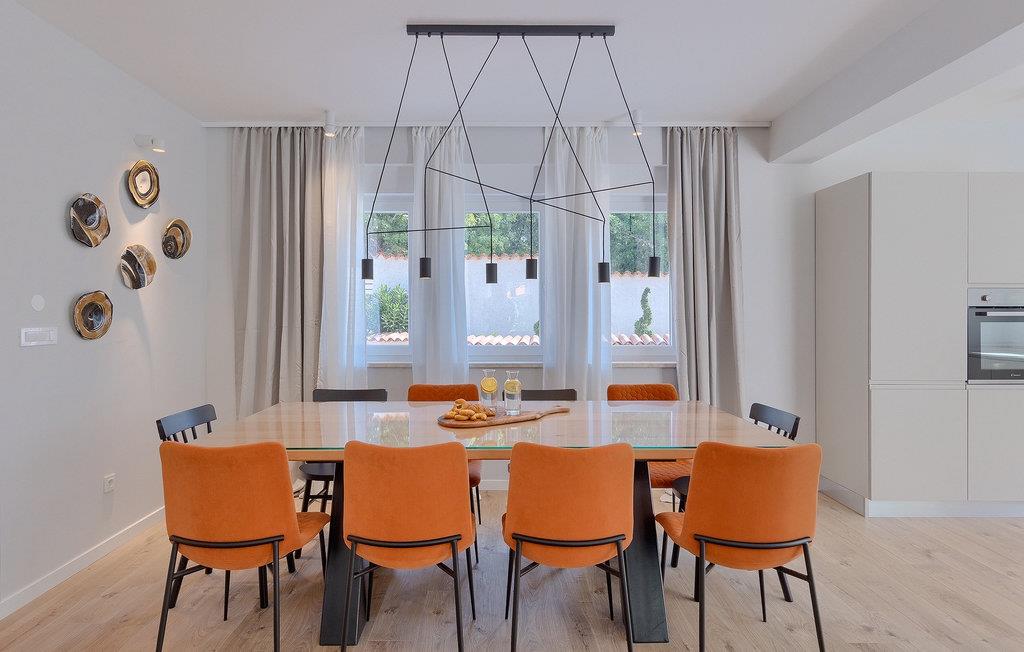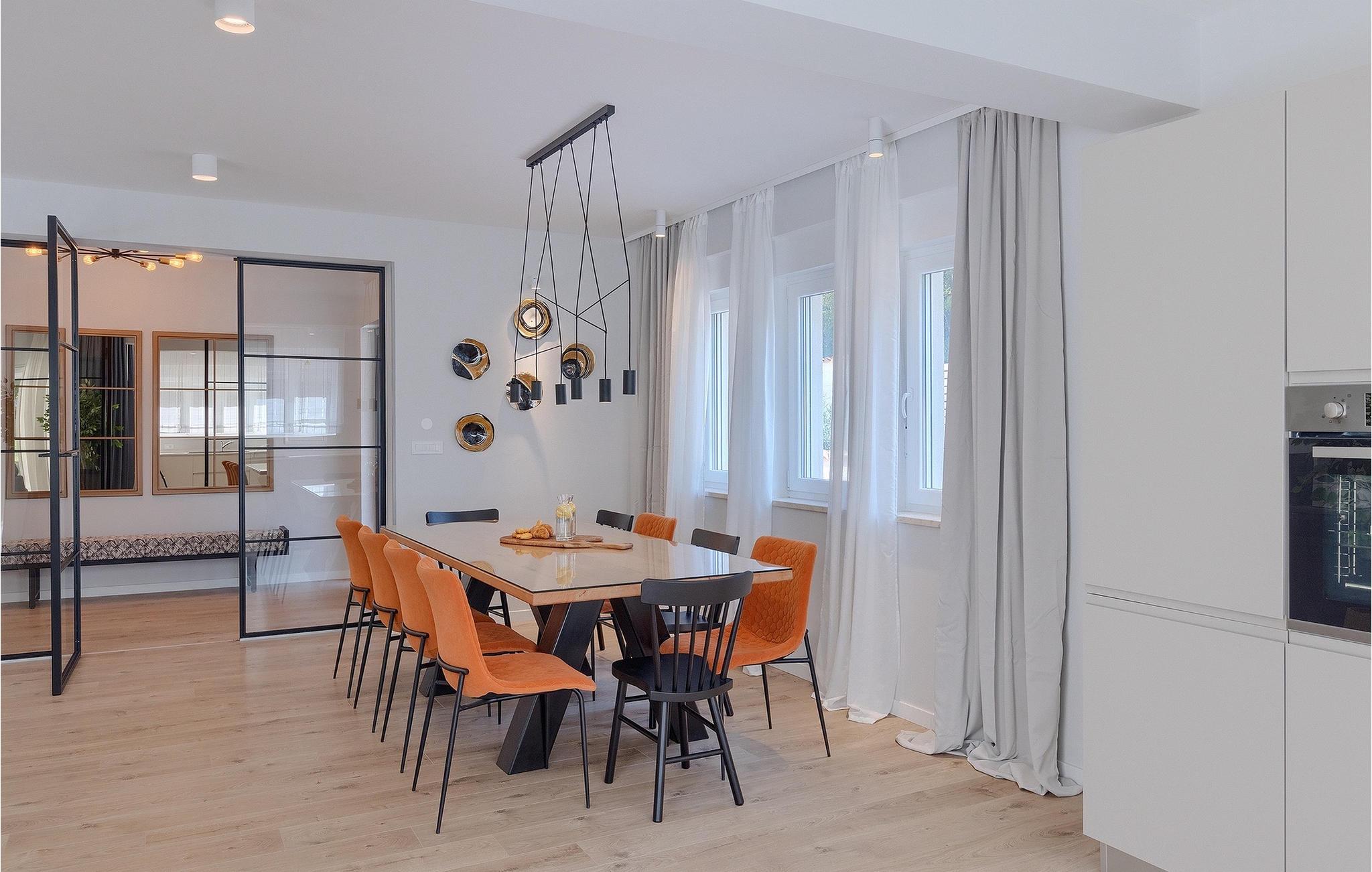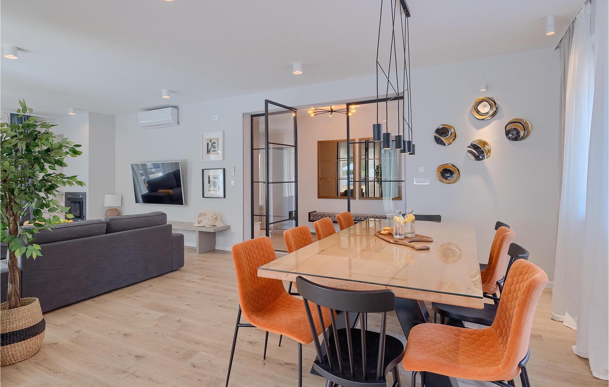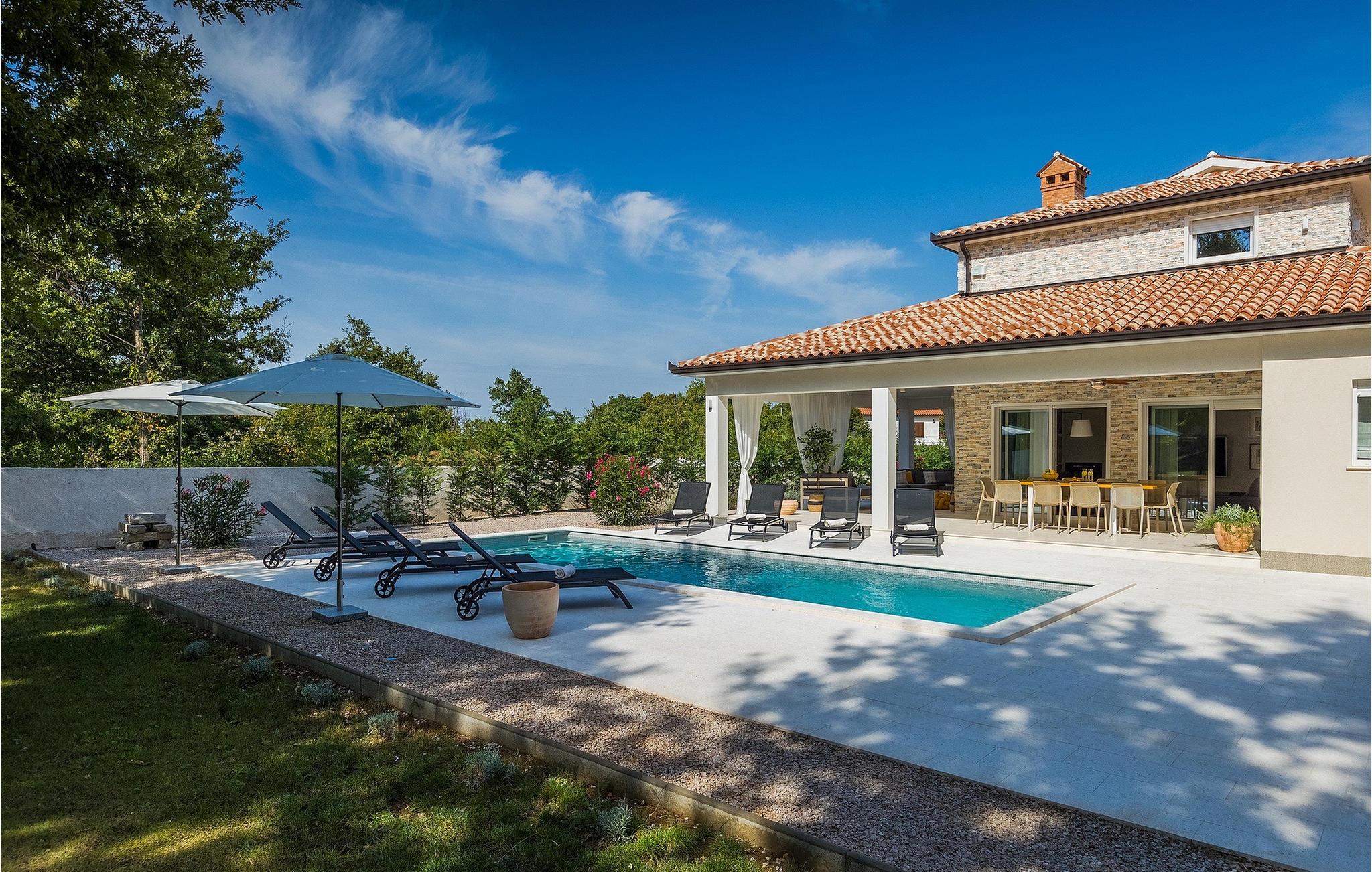 Denne pragtfulde ejendom ligger på en 2400 m2 stor grund, omgivet af frodige grønne områder og kun få kilometer væk fra smukke stenstrande. Villa Magdalena tilbyder stilfuld og komfortabel indkvartering for op til 10 gæster. Det består af 5 soveværelser, der hver har en dobbeltseng, aircondition, tv og eget badeværelse med brusekabine. To soveværelser er placeret i stueetagen, mens tre soveværelser er fordelt på øverste etage. Dette charmerende feriehus har en smuk privat pool, der sikrer forfriskende og glædelige stunder. Der er en dejlig overdækket terrasse med et stort spisebord til al fresco spisning. I haven i en separat overdækket terrasse er der et udendørs køkken udstyret med en gasgrill, flere gaskomfurer, en vask, køleskab og en mikroovn. Det perfekte sted til madlavning på varme og solrige dage! Selvfølgelig er der i villaen et fuldt udstyret køkken til din rådighed. Køkkenet ligger i stueetagen med åbent koncept, sammen med den farverige spiseplads og hyggelige stue.