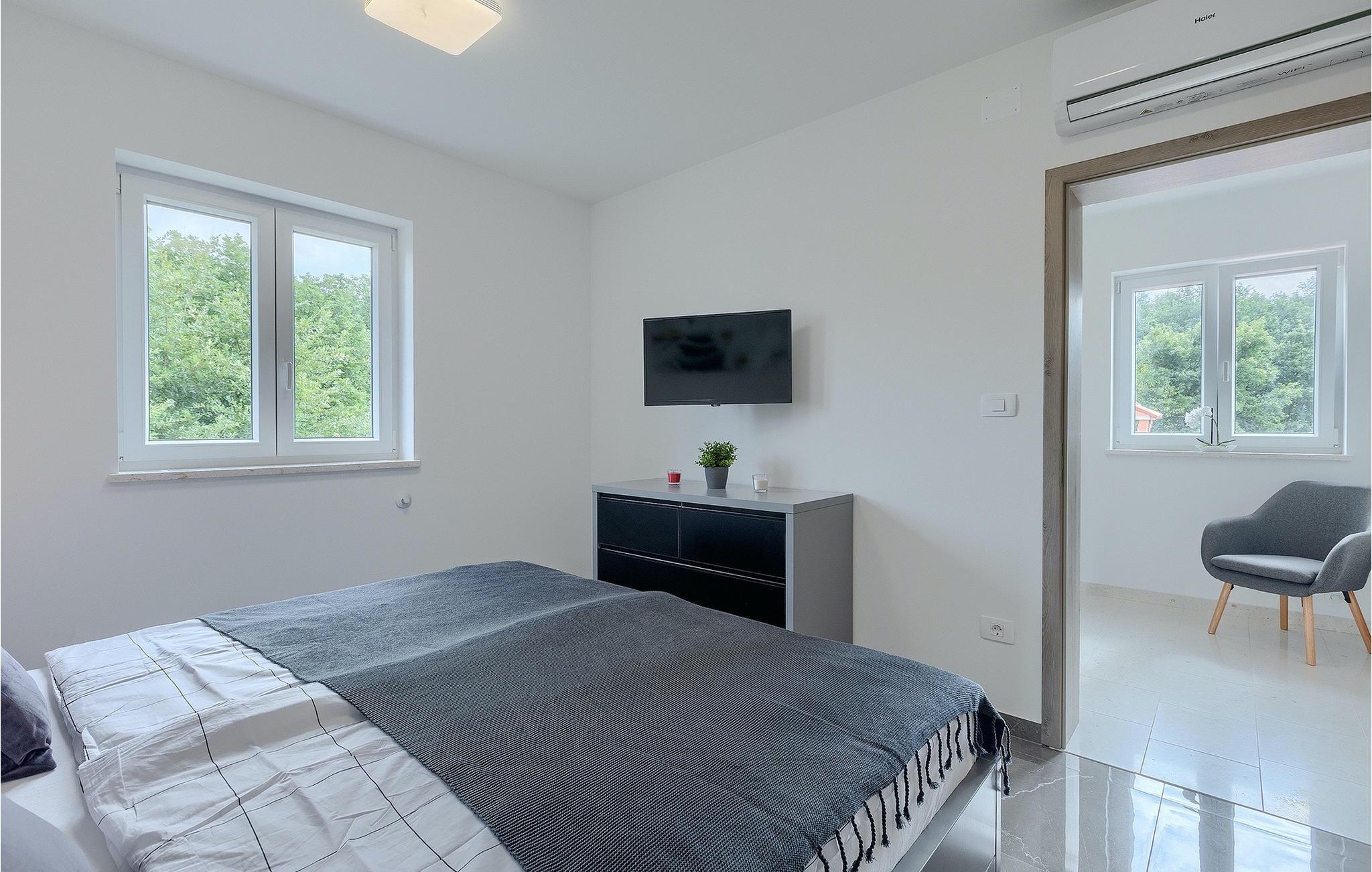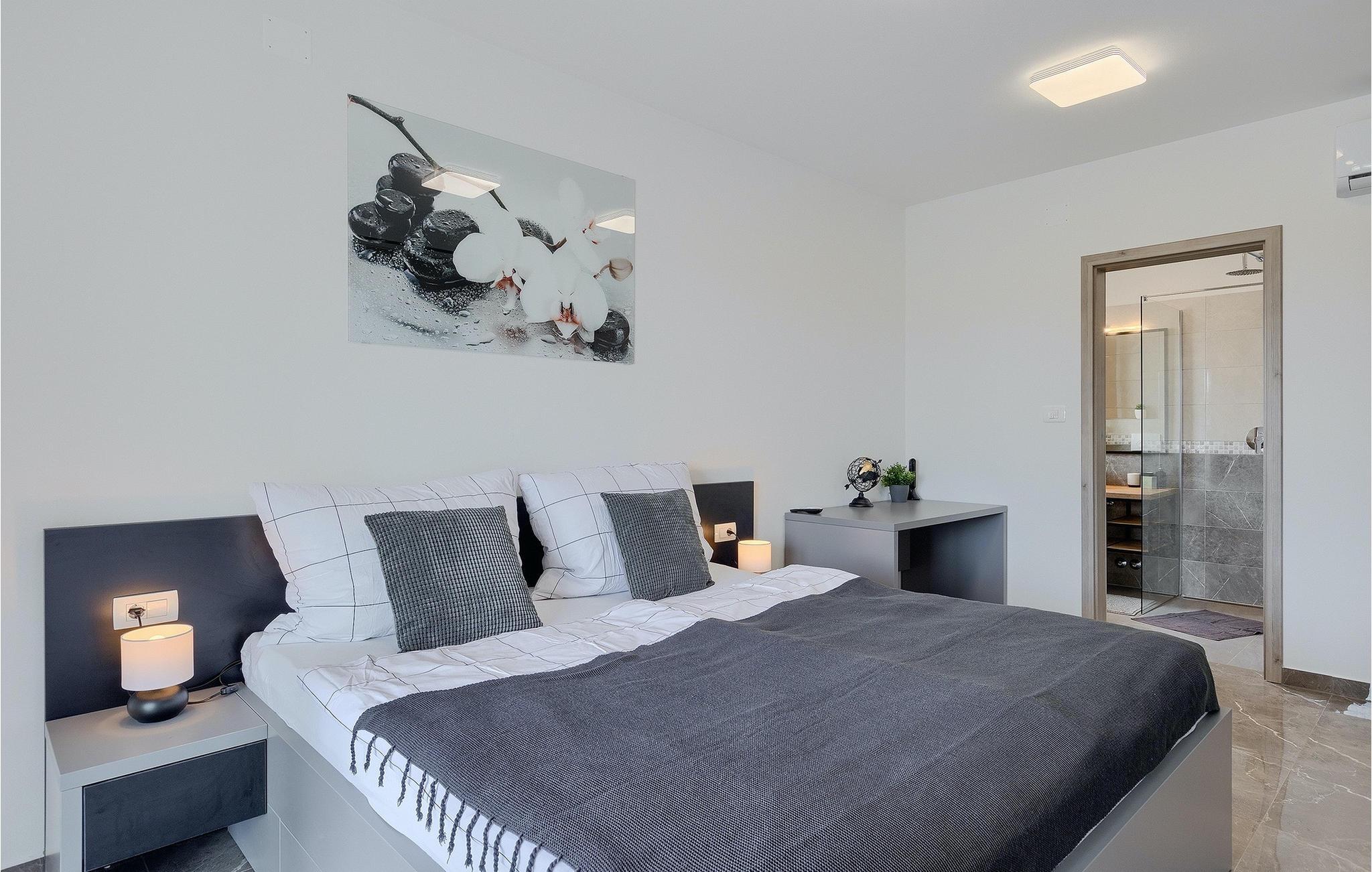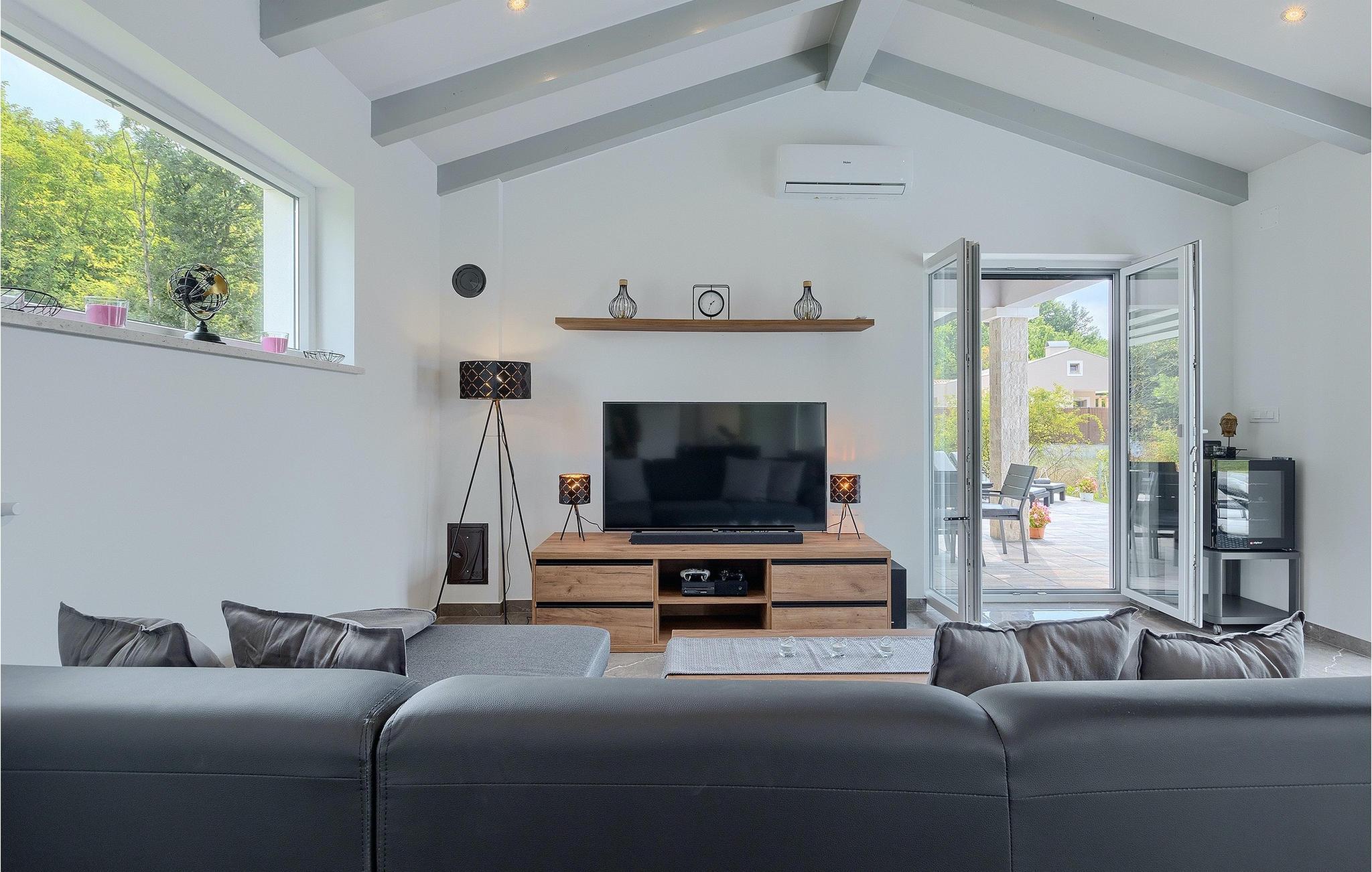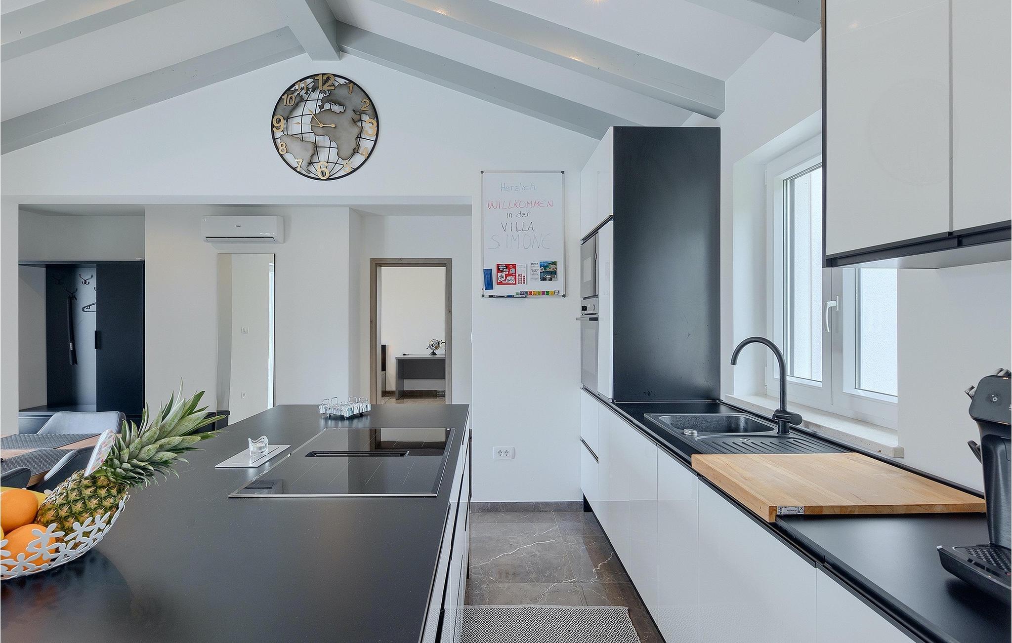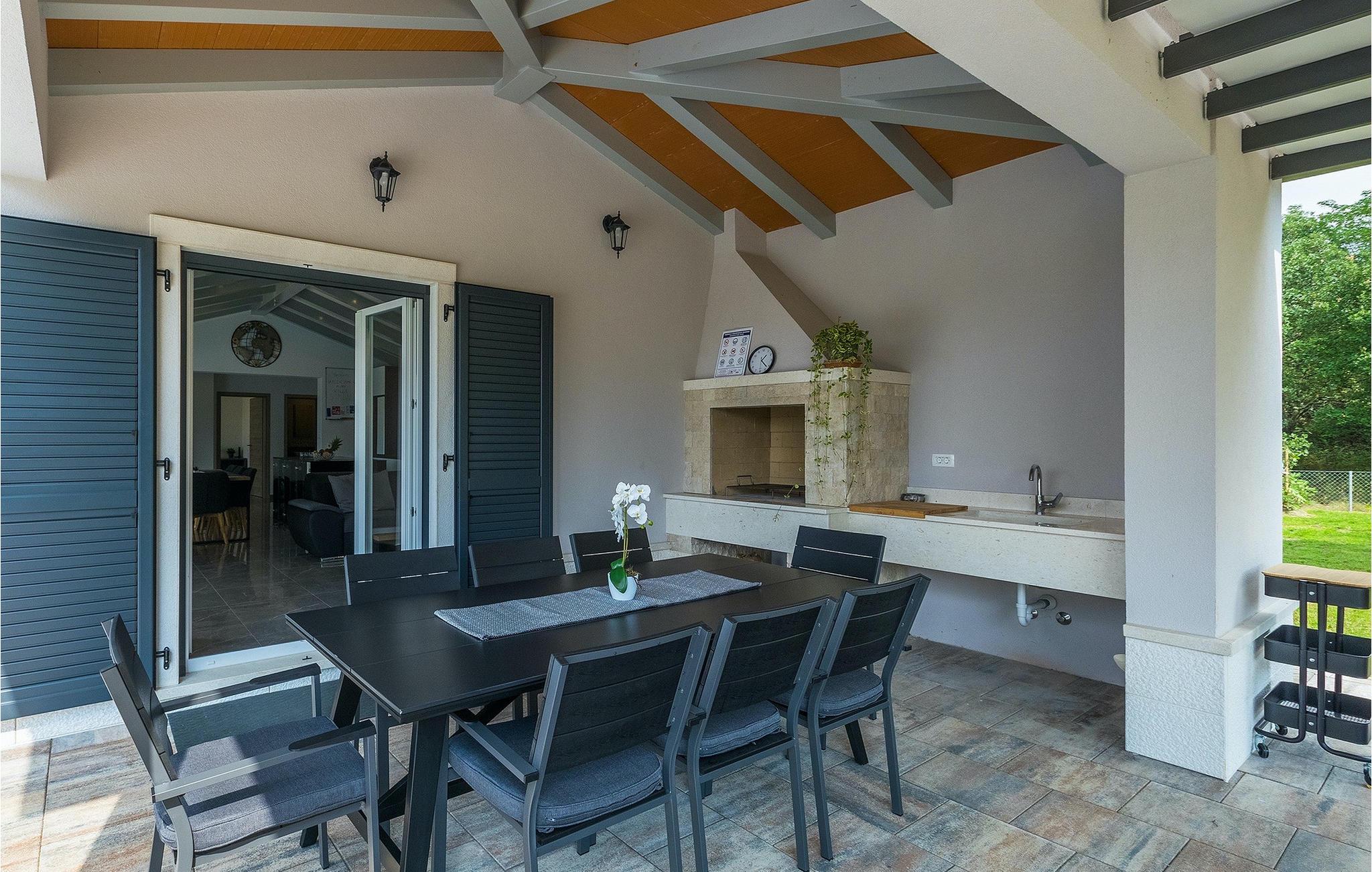 Villa Simone Paradiso har en fremragende beliggenhed nær kystbyen Rabac. Villaens udendørsområde har en privat nulkantspool og en udendørs bruser. Udnyt liggestolene placeret rundt om poolen til at slappe af En overdækket grill område er til rådighed til at tilberede lækre måltider. Der er også en udendørs spiseplads på ejendommen. Villaen har plads til i alt 8 personer. som er forbundet med stuen Dette er det perfekte sted at nyde din morgenkaffe endnu et soveværelse med eget badeværelse og et gæstetoilet. På første sal er der to mere komfortable soveværelser, hver med deres eget badeværelse. Det ene soveværelse giver udgang til altan. Villaen har aircondition, tilbyder internetadgang og privat parkering for op til 6 biler. Villa Simone Paradiso tilbyder alt, hvad du kan ønske dig til en afslappende og afslappende ferie. Villa Simone Paradiso ligger kun 9 km fra stranden i Rabac. Området byder på en række smukke stenstrande og skjulte bugter med krystalklart vand. En kort køretur væk ligger kystbyen Rabac. Der tilbydes en bred vifte af vandsportsaktiviteter her. Vi anbefaler at tage en romantisk gåtur langs promenaden. Beliggenhedsmæssigt er Villa Simone Paradiso et glimrende udgangspunkt for udflugter. Besøg den historiske by Pula, hvor det fortryllende romerske amfiteater ligger. Her arrangeres mange filmbegivenheder samt kulturelle begivenheder og koncerter. Vi anbefaler også, at du besøger den maleriske by Rovinj. Det særlige ved byen er, at den gamle bydel ligger på en lille halvø. Udforsk de smalle gader i byen og nyd din første kop kaffe i en af ??de mange caféer. Restauranterne tilbyder et fremragende udvalg af lokale specialiteter, som du bestemt bør prøve. Tag til Istrien og udforsk skønheden i denne region.