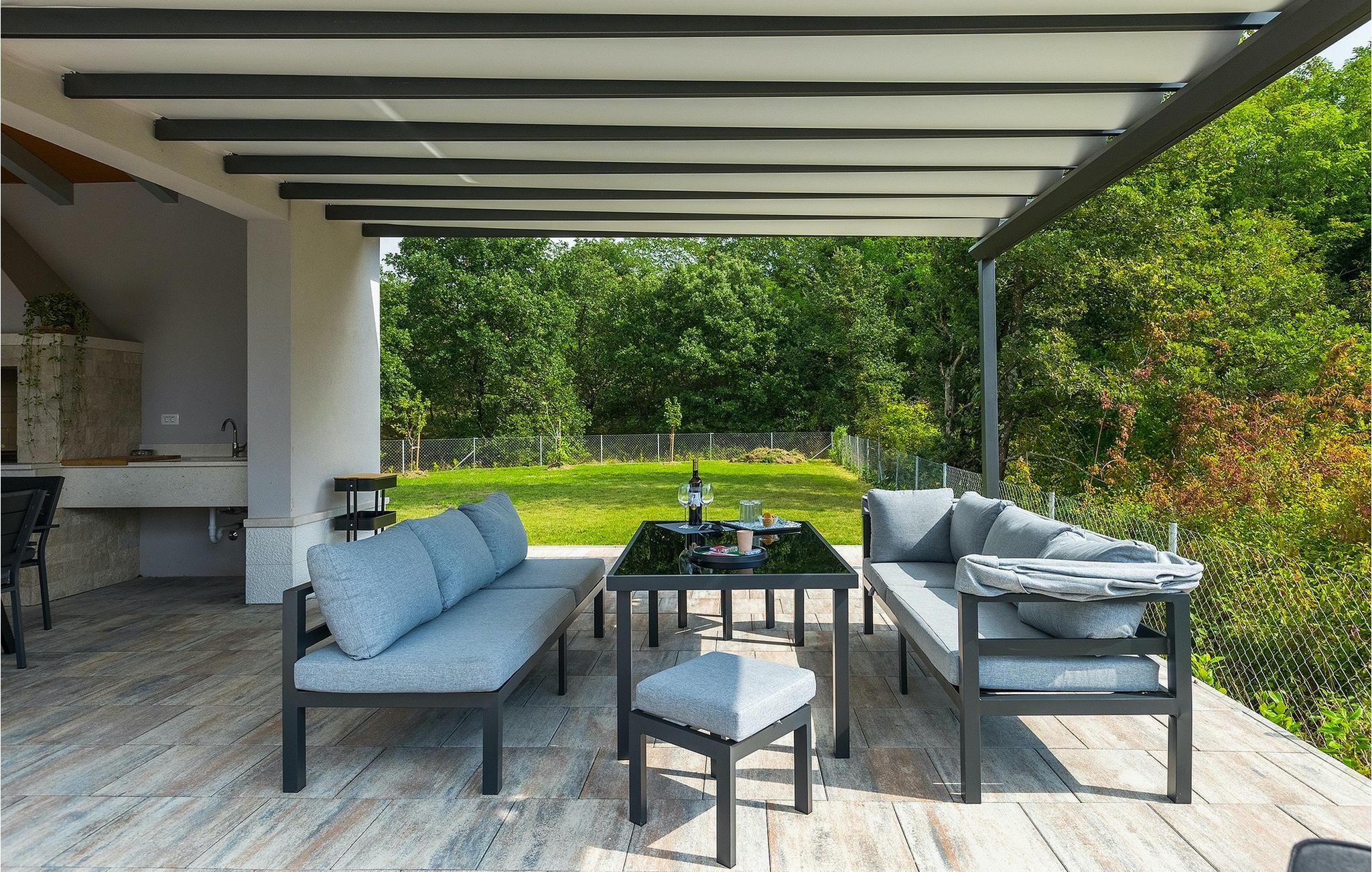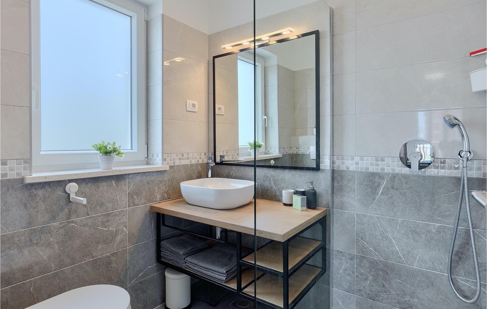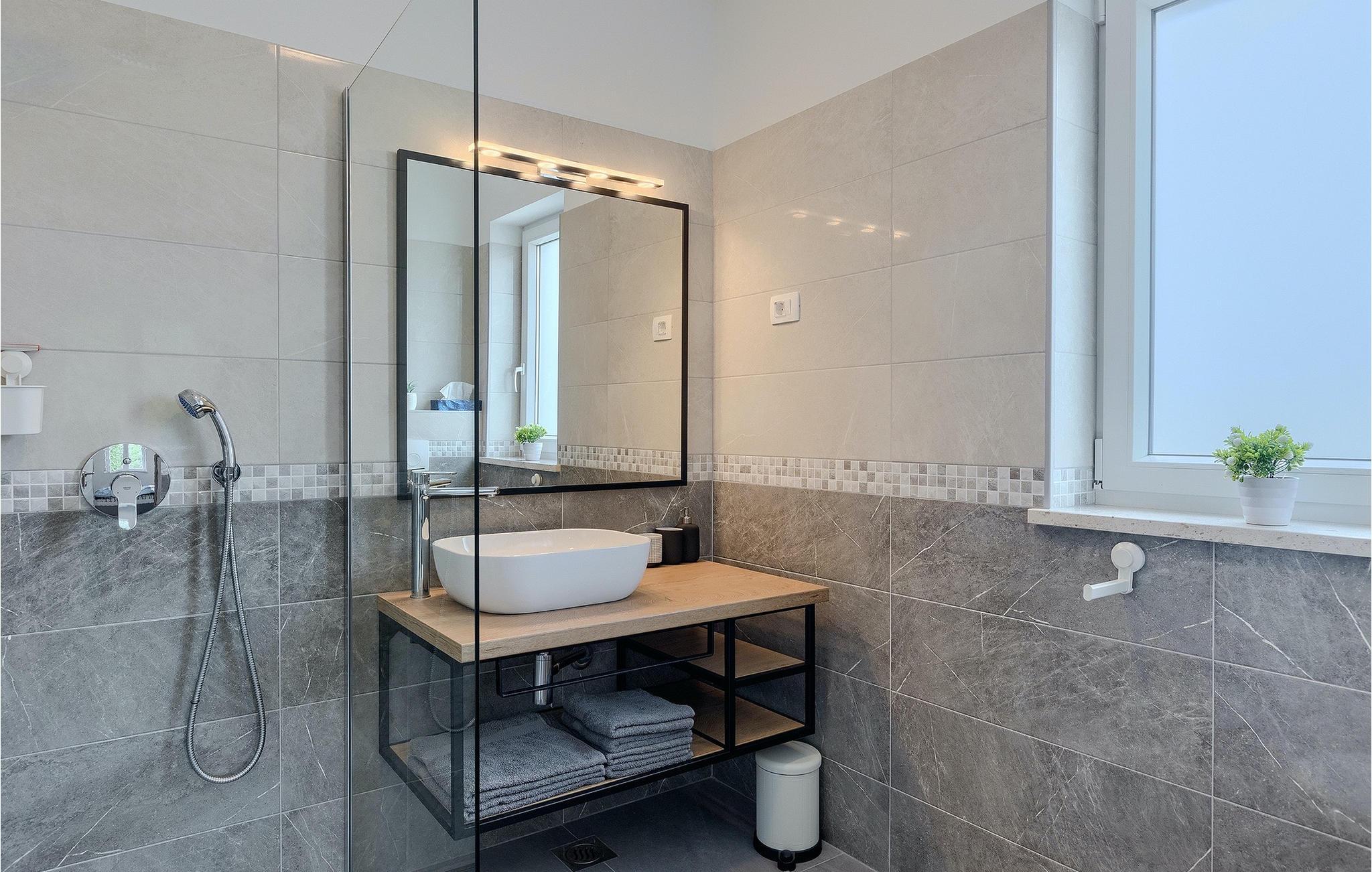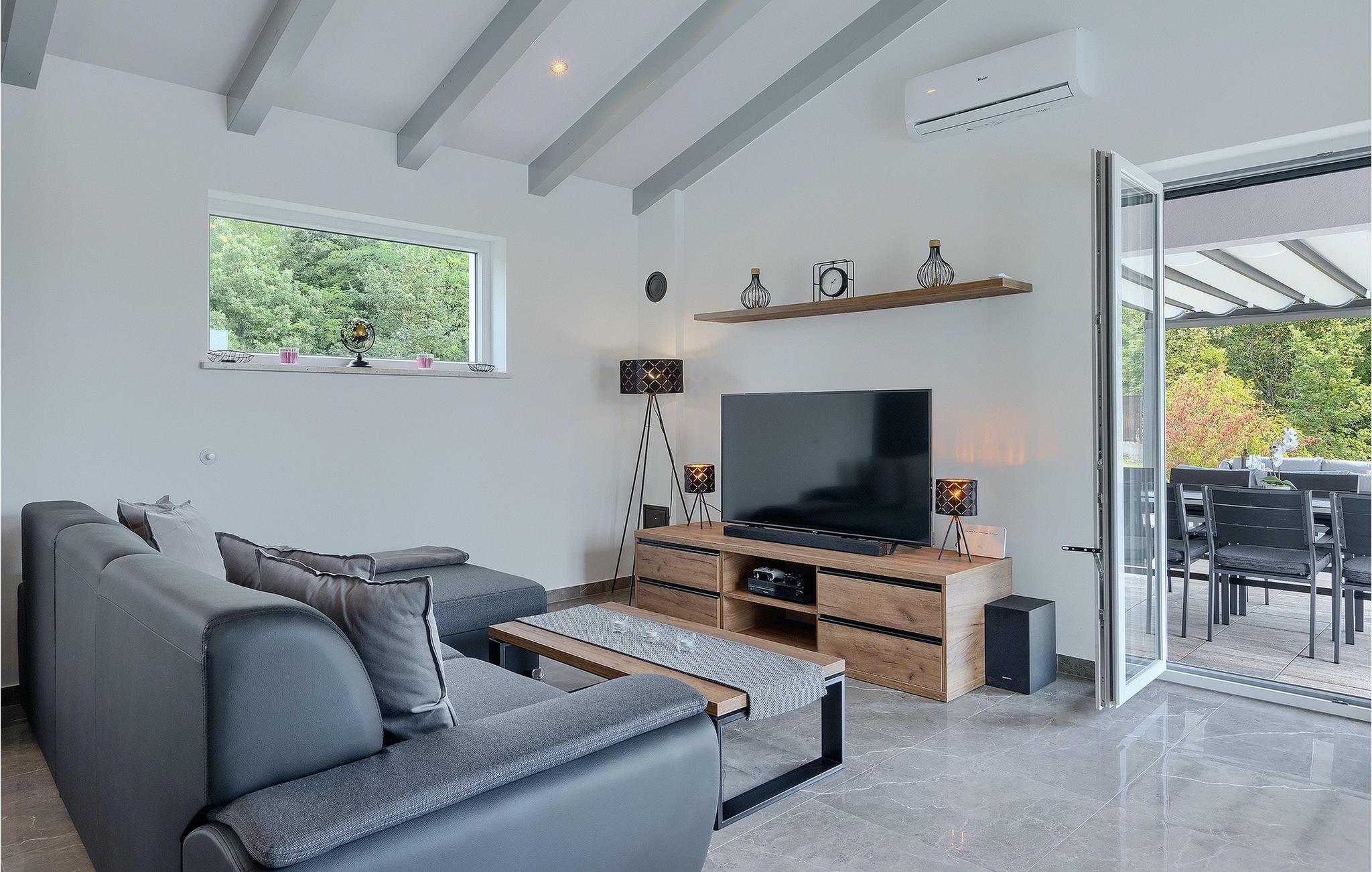 Villa Simone Paradiso har en fremragende beliggenhed nær kystbyen Rabac. Villaens udendørsområde har en privat nulkantspool og en udendørs bruser. Udnyt liggestolene placeret rundt om poolen til at slappe af En overdækket grill område er til rådighed til at tilberede lækre måltider. Der er også en udendørs spiseplads på ejendommen. Villaen har plads til i alt 8 personer. som er forbundet med stuen Dette er det perfekte sted at nyde din morgenkaffe endnu et soveværelse med eget badeværelse og et gæstetoilet. På første sal er der to mere komfortable soveværelser, hver med deres eget badeværelse. Det ene soveværelse giver udgang til altan. Villaen har aircondition, tilbyder internetadgang og privat parkering for op til 6 biler. Villa Simone Paradiso tilbyder alt, hvad du kan ønske dig til en afslappende og afslappende ferie. Villa Simone Paradiso ligger kun 9 km fra stranden i Rabac. Området byder på en række smukke stenstrande og skjulte bugter med krystalklart vand. En kort køretur væk ligger kystbyen Rabac. Der tilbydes en bred vifte af vandsportsaktiviteter her. Vi anbefaler at tage en romantisk gåtur langs promenaden. Beliggenhedsmæssigt er Villa Simone Paradiso et glimrende udgangspunkt for udflugter. Besøg den historiske by Pula, hvor det fortryllende romerske amfiteater ligger. Her arrangeres mange filmbegivenheder samt kulturelle begivenheder og koncerter. Vi anbefaler også, at du besøger den maleriske by Rovinj. Det særlige ved byen er, at den gamle bydel ligger på en lille halvø. Udforsk de smalle gader i byen og nyd din første kop kaffe i en af ??de mange caféer. Restauranterne tilbyder et fremragende udvalg af lokale specialiteter, som du bestemt bør prøve. Tag til Istrien og udforsk skønheden i denne region.