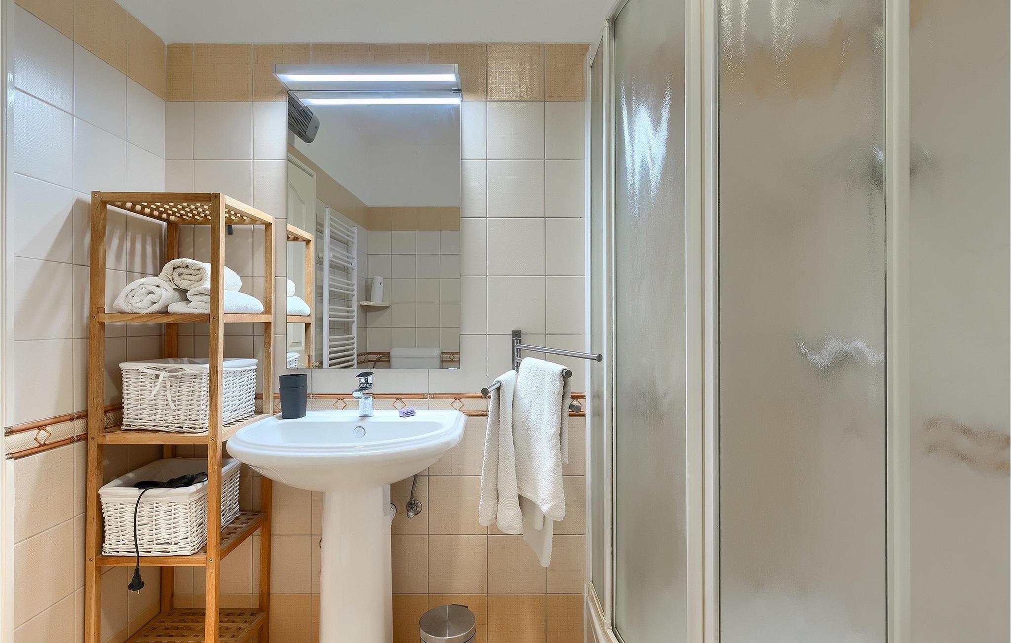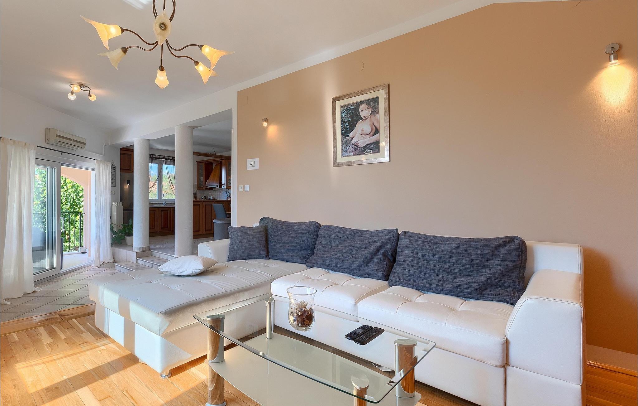 En traditionel taverna med pejs og badeværelse er tilgængelig i villaens stueetage. Værtshuset inviterer dig til at nyde mad og drikkevarer, så munter dine kære op med retter tilberedt under ovnen ("ispod peke"). Ovenpå er der 3 soveværelser, et badeværelse, køkken og spisestue samt en overdækket terrasse, hvor du kan slappe af og finde lidt skygge, mens du ser på den smukke natur. Køkkenet er fuldt udstyret, så du kan tilberede dine yndlingsretter eller lokale specialiteter.